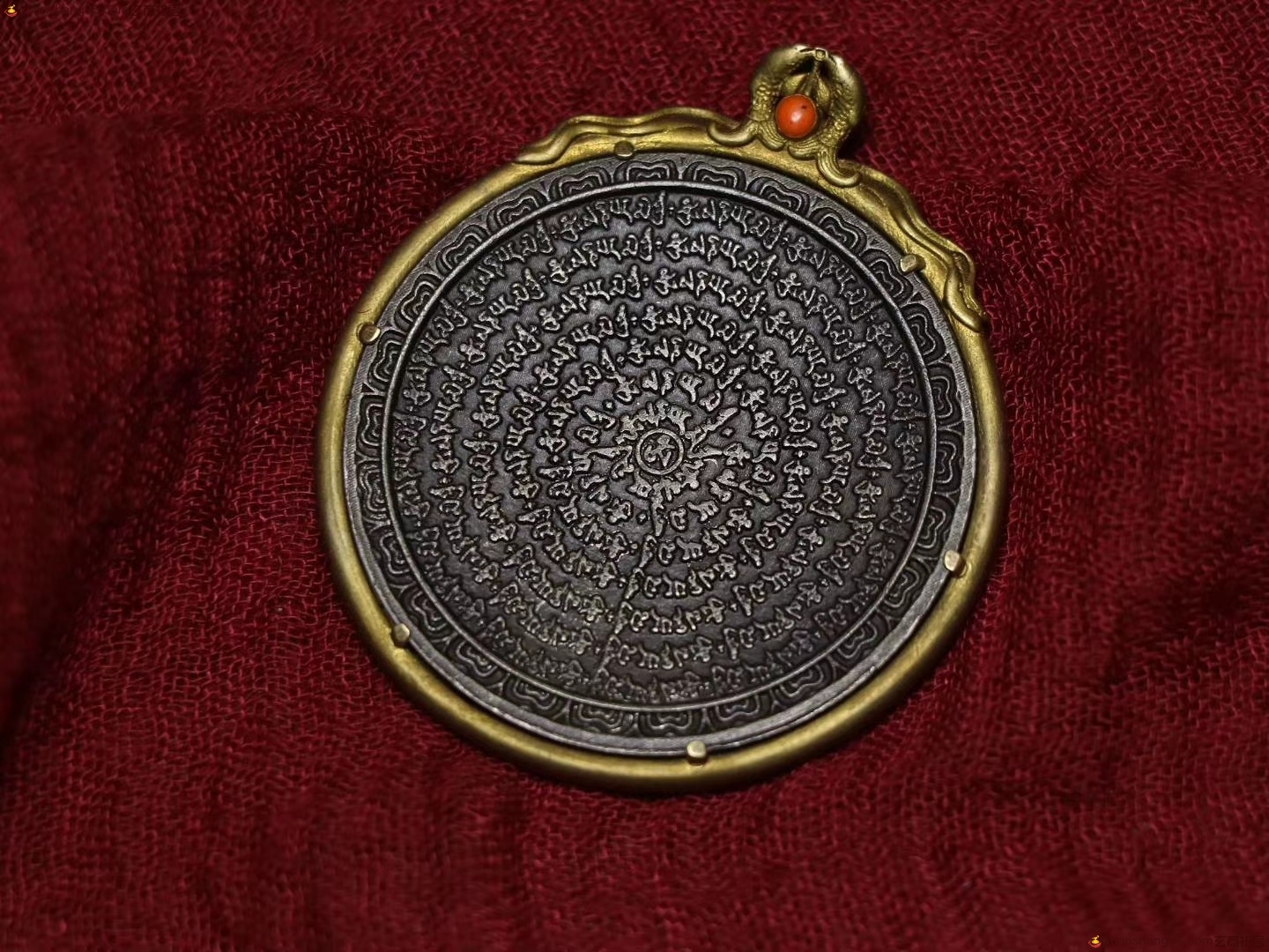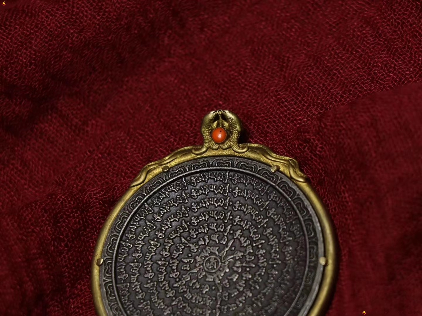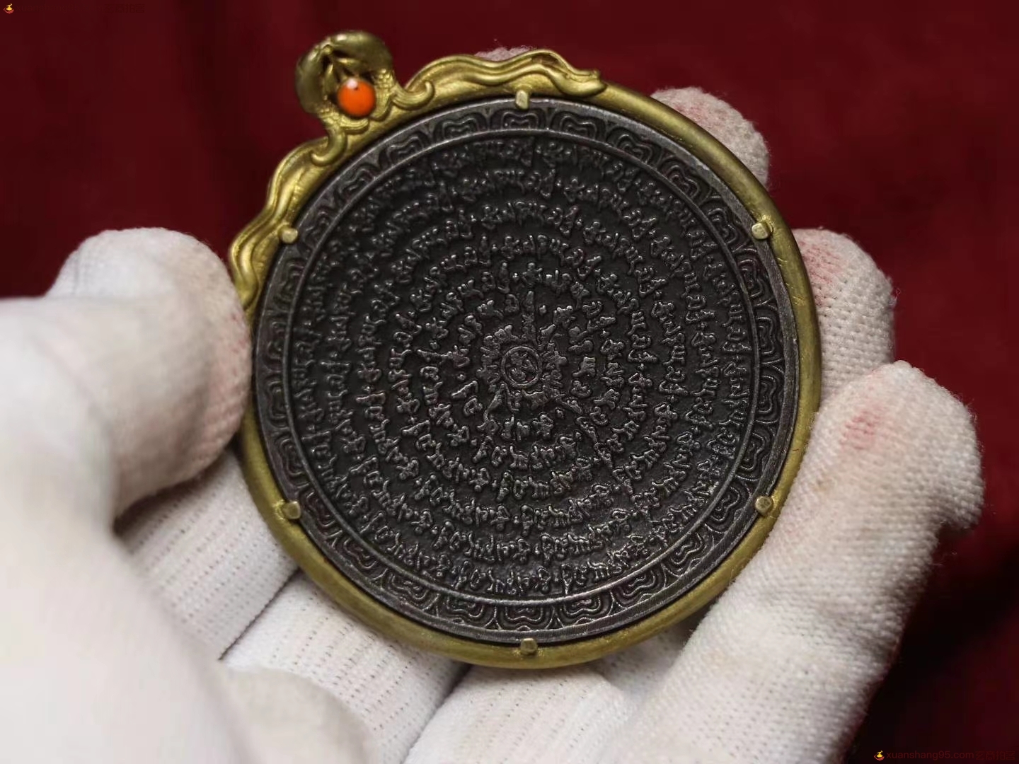 精选 六字箴言 九宫牌,模板清晰,孔道磨损明显,镶嵌老珊瑚,品相自观真实美观,尺寸:53毫米