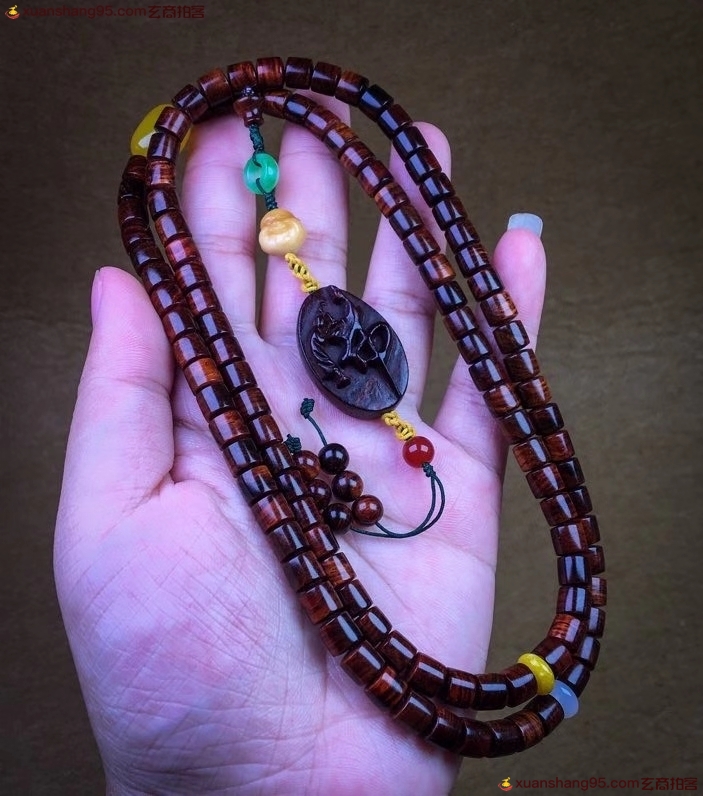 精选 海南黄花梨 108颗 桶珠,颗颗精选紫油梨,高油密,虎皮纹,手感舒适,搭配心中有佛吊坠,搭配精美,完美无瑕,*值性价比,静待有缘人,规格:6*6毫米