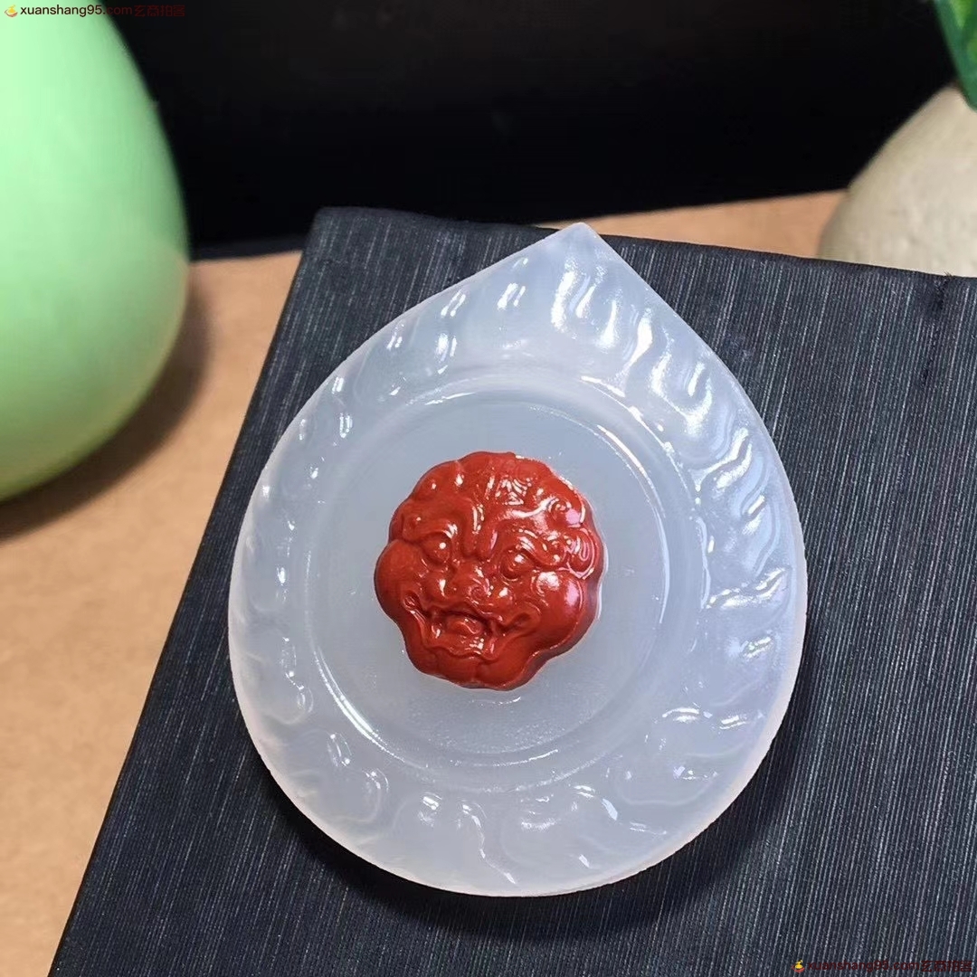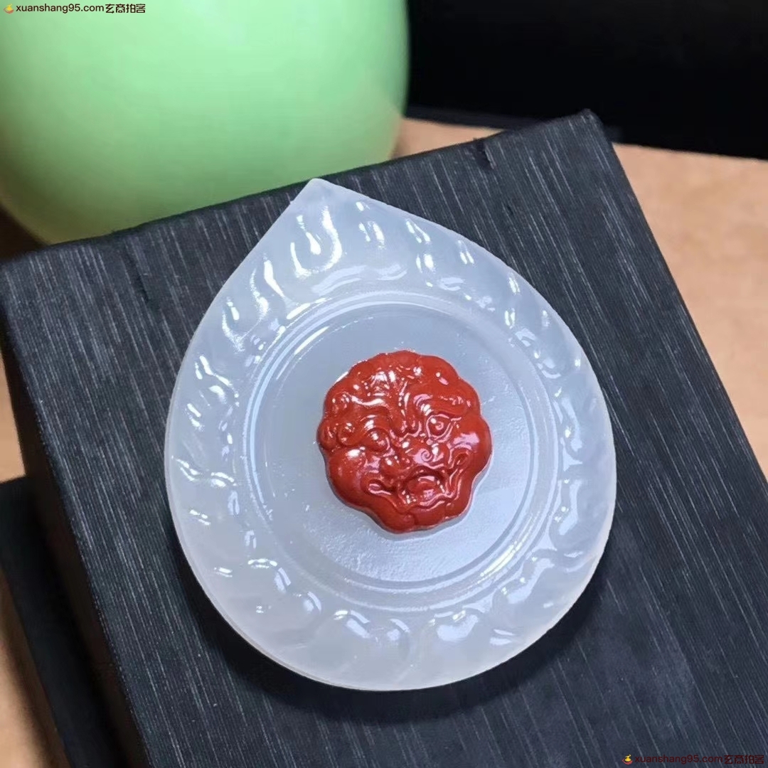 3. 竞拍详细 - 精选 *品荔枝冻镶南红 兽面雕件