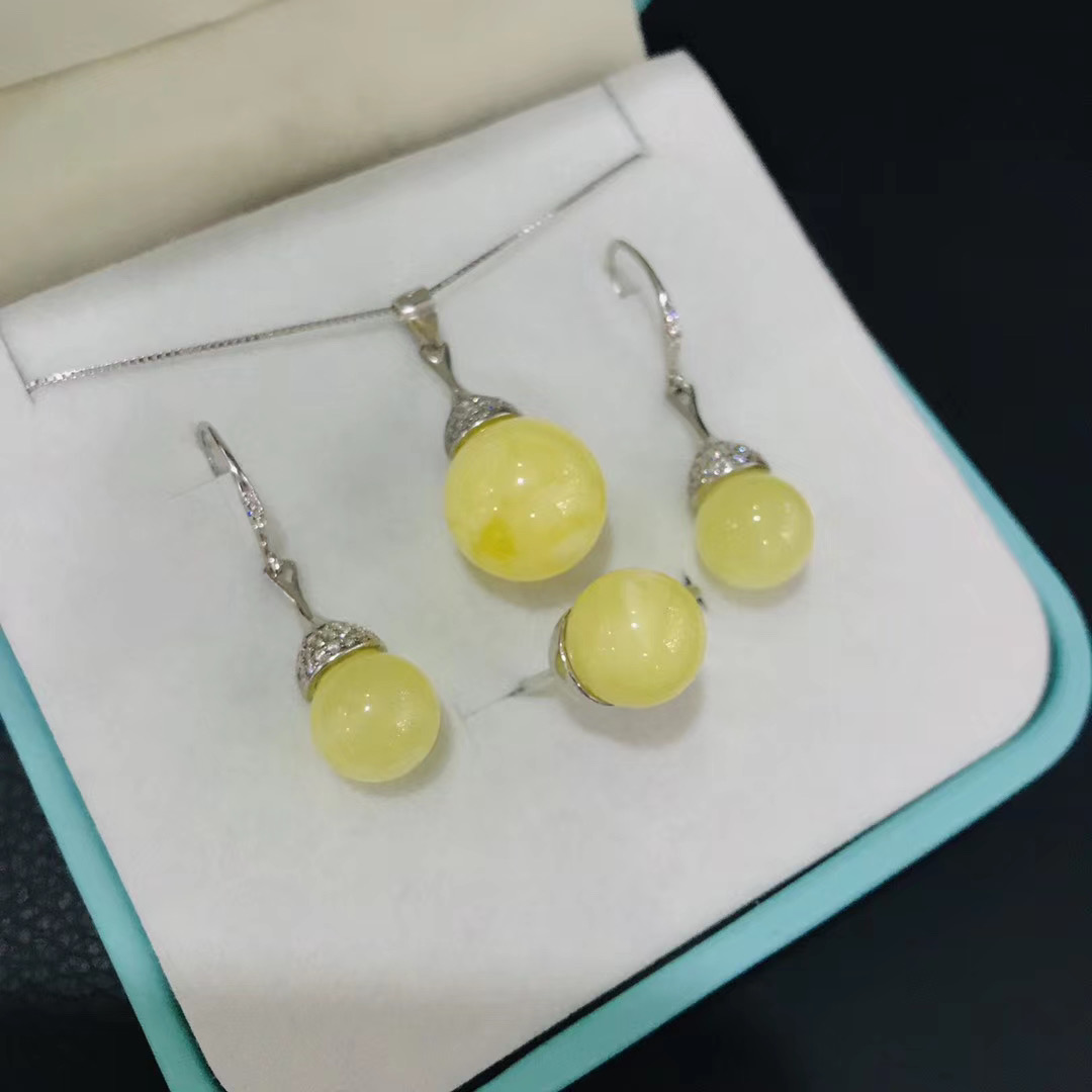 此拍品为天然蜜蜡3件套 ,蜡质浓郁,纹路妖娆,925银镶嵌,品质非常好,耳环尺寸:约10mm,戒指尺寸:约11mm,吊坠尺寸:约14mm,产地,波罗的海。