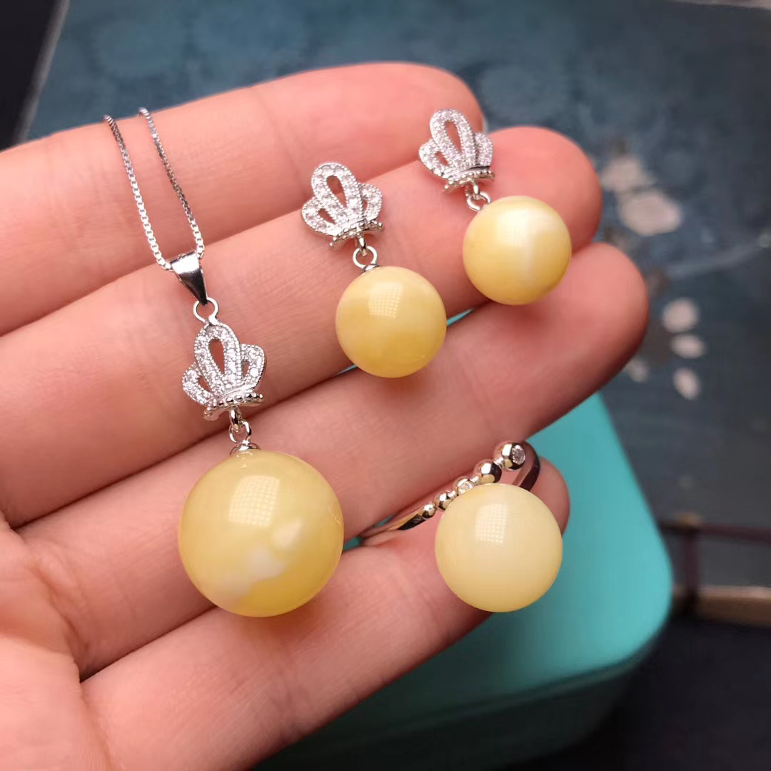 此拍品为天然蜜蜡3件套 ,蜡质浓郁,纹路妖娆,925银镶嵌,品质非常好,耳环尺寸:约10mm,戒指尺寸:约11mm,吊坠尺寸:约14mm,产地,波罗的海。