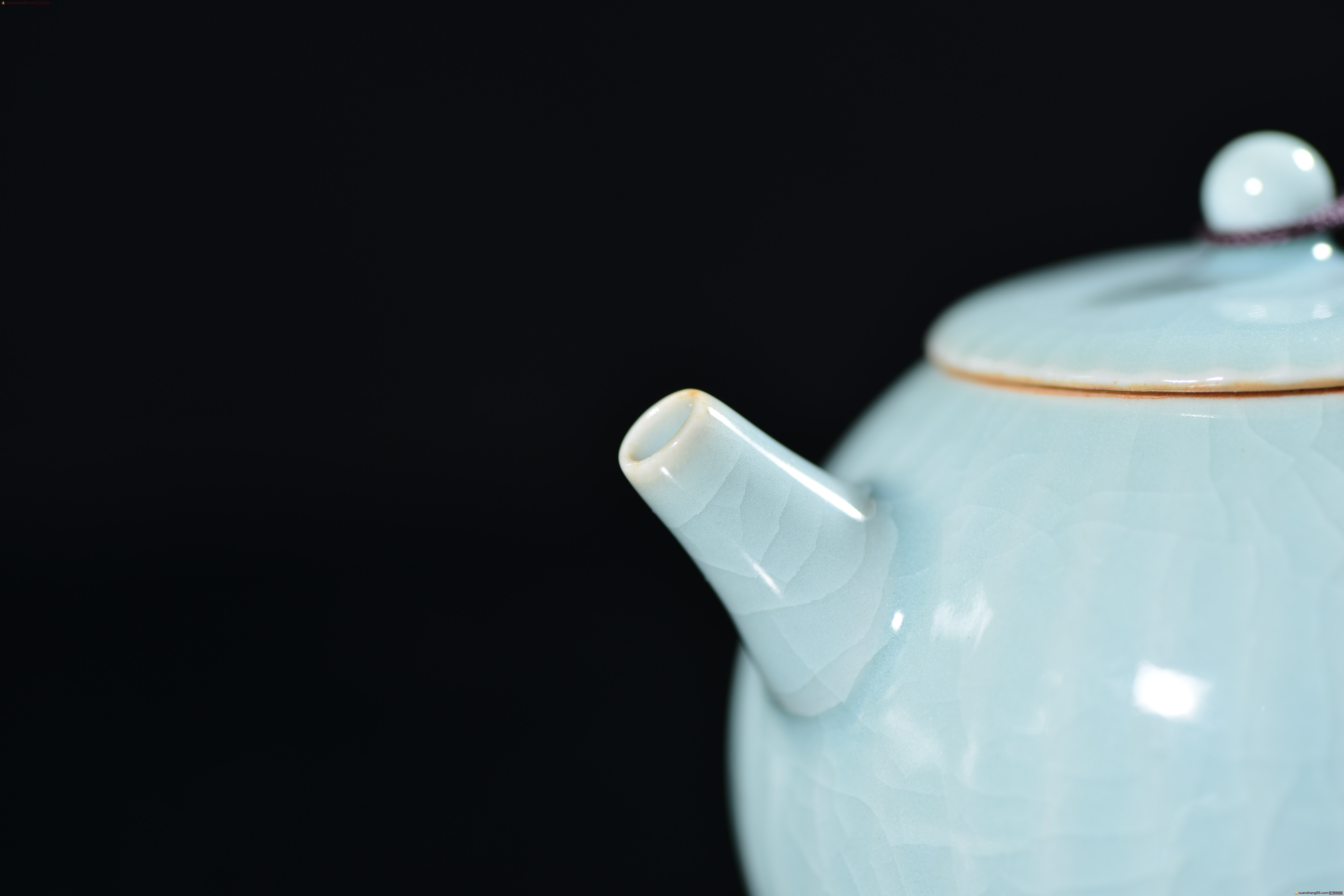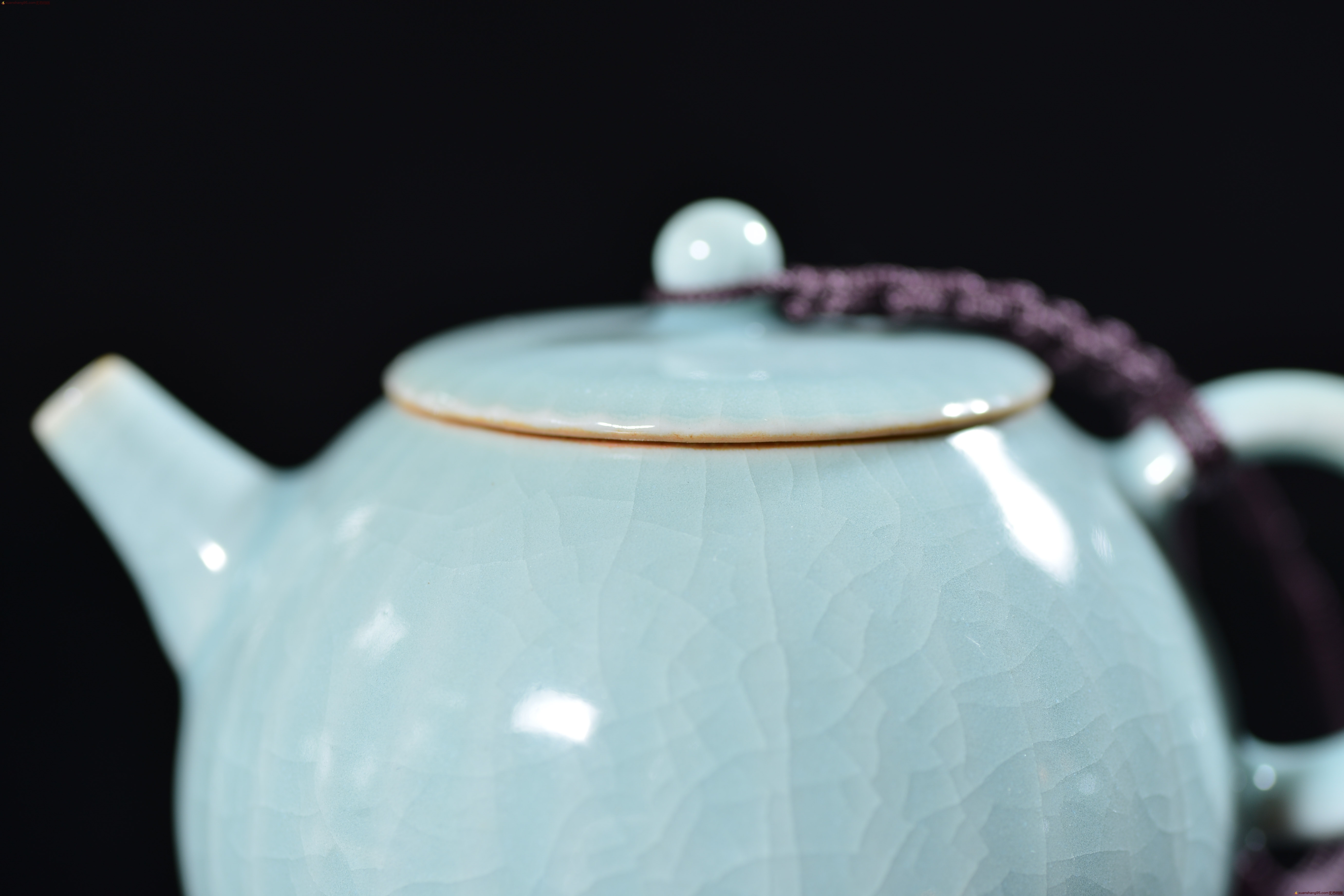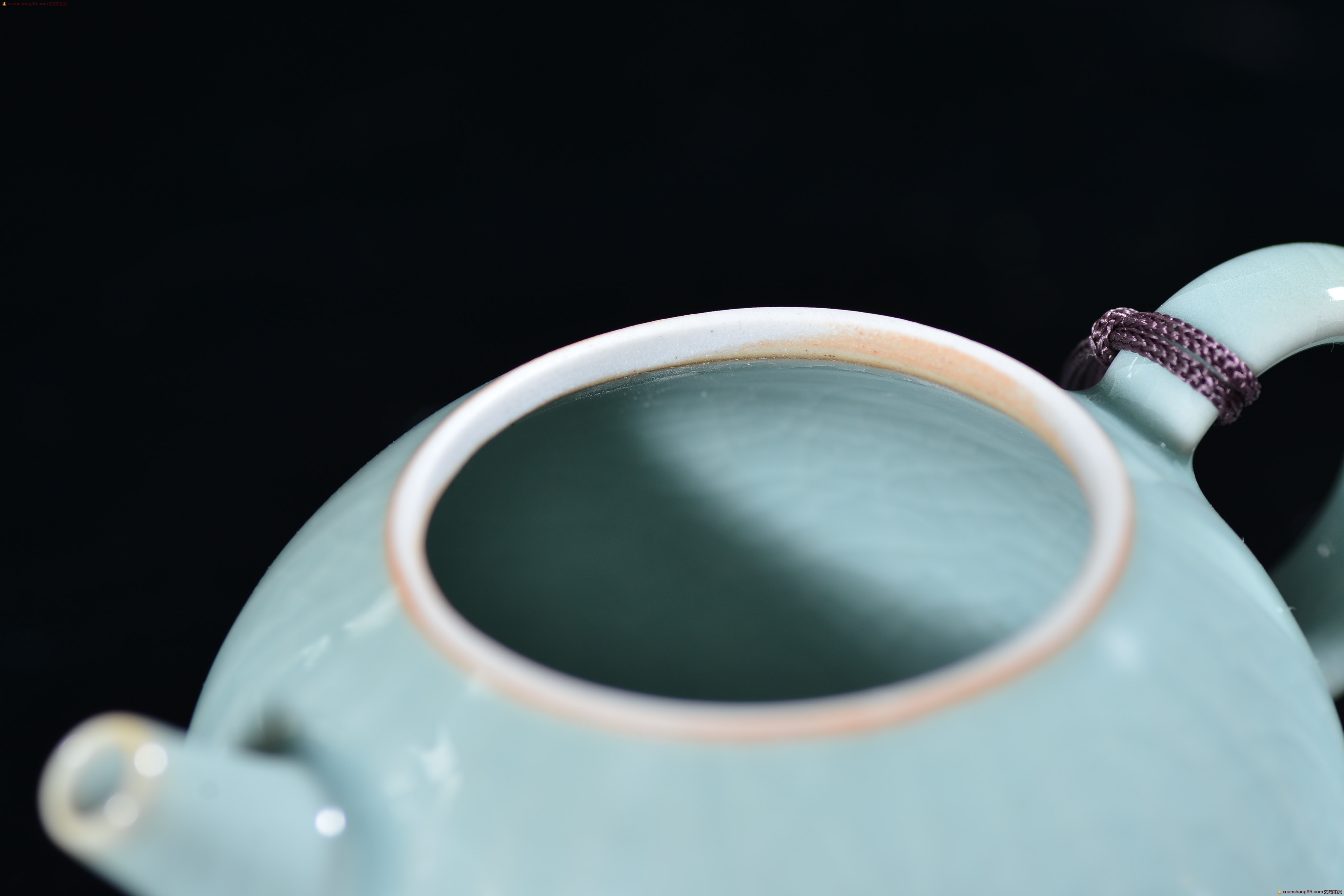 非物质文化遗产 汝瓷 竹节壶 采用汝州本地天然原矿石,研磨精工制作而成,做工一流,设计巧妙,杯内上满釉,开片精美,收藏使用佳品。 汝瓷—中国五大名瓷之一,创烧于北宋晚期,为宫廷御用瓷器。金灭北宋后,汝瓷也随之消亡。其开窑时间前后只有二十年,由于烧造时间短暂,传世亦不多,在南宋时,汝瓷已经非常稀有。现今存世的汝瓷,一般认为有65件,其中台北故宫博物院23件,北京故宫博物院17件,上海博物馆8件,英国戴维基金会7件,其他散藏于美、日等博物馆和私人收藏约10件。所以才有“家财万贯,不如汝瓷一片”。 作者杨聚斌出