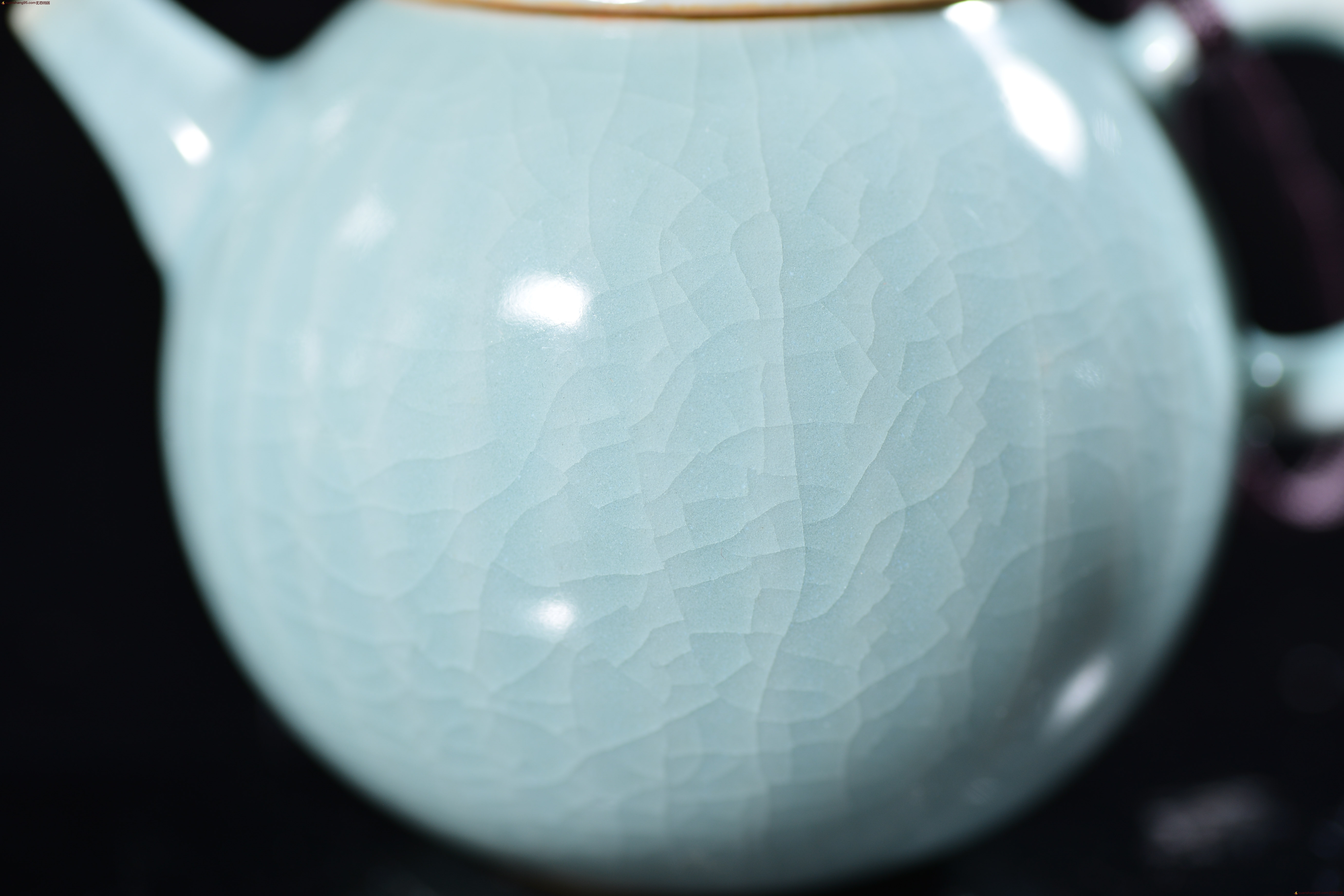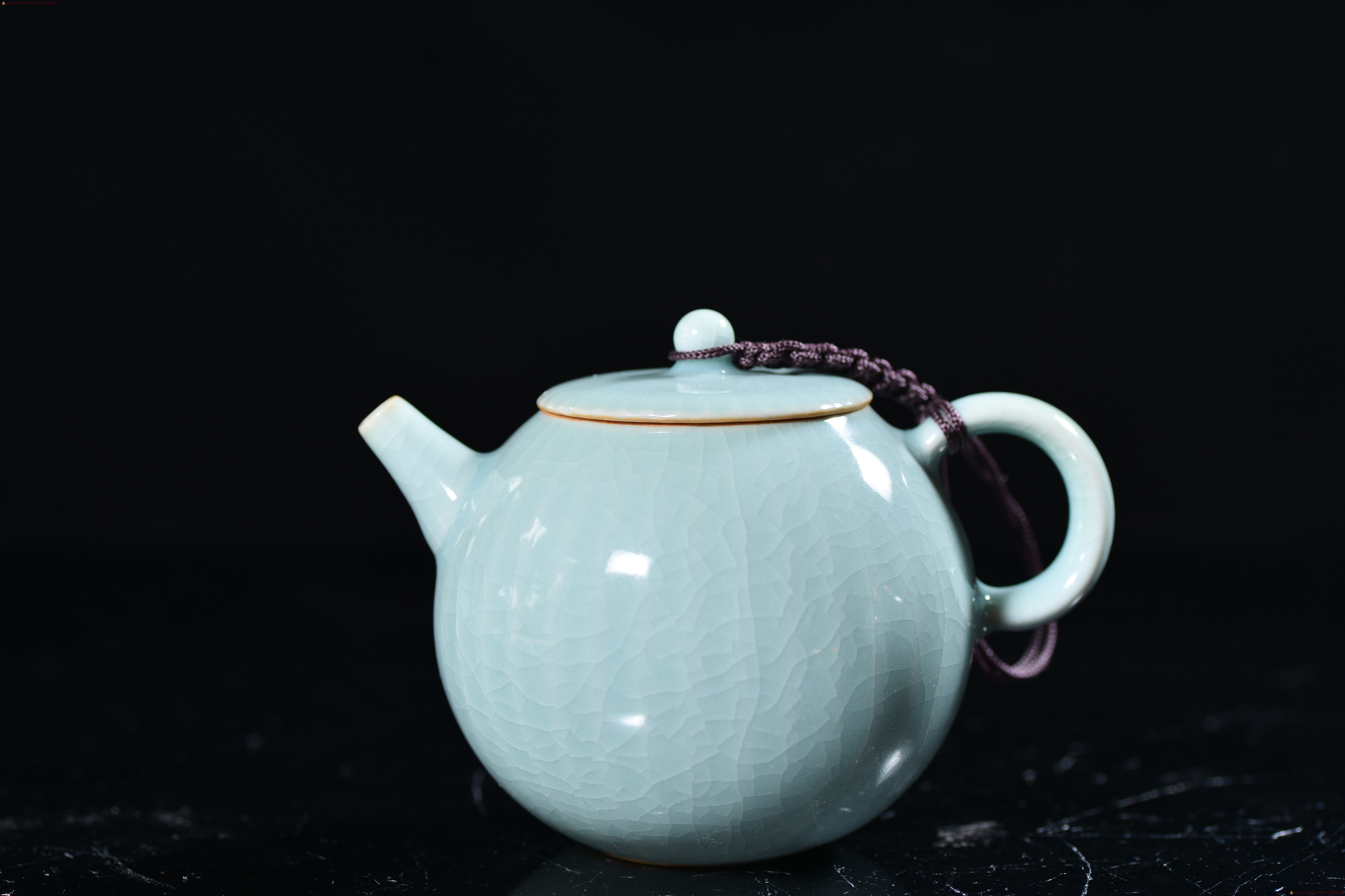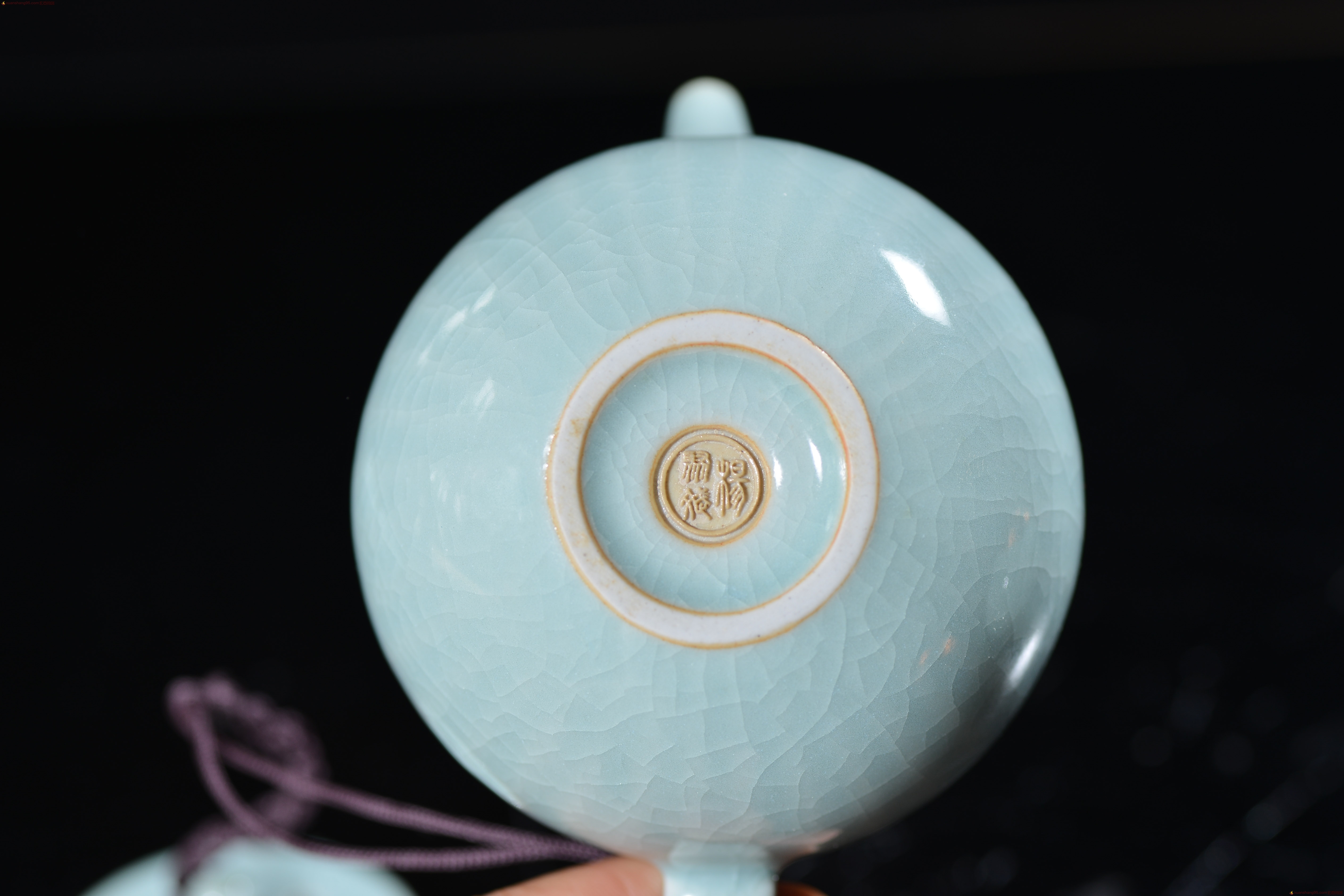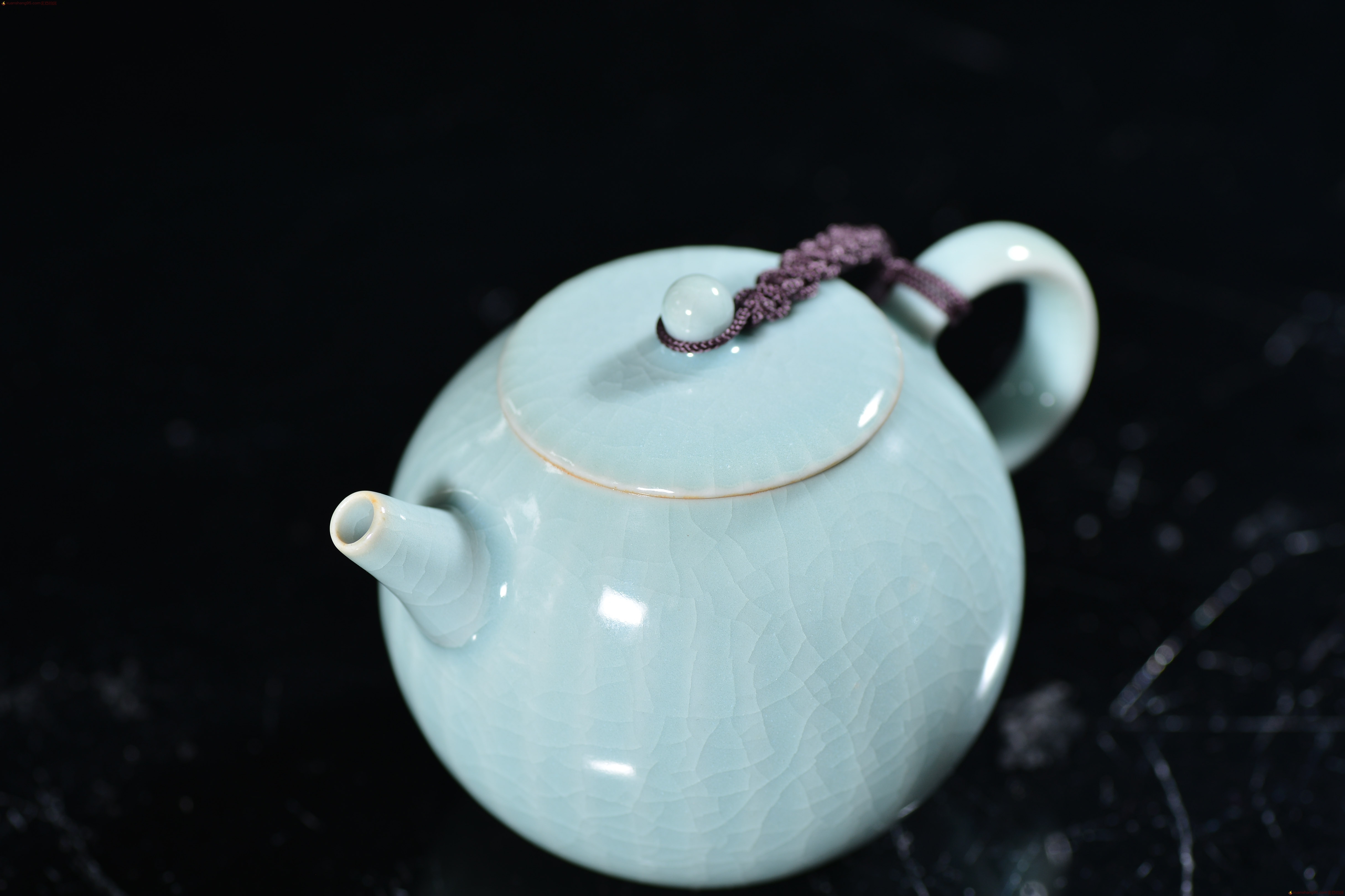 非物质文化遗产 汝瓷 竹节壶 采用汝州本地天然原矿石,研磨精工制作而成,做工一流,设计巧妙,杯内上满釉,开片精美,收藏使用佳品。 汝瓷—中国五大名瓷之一,创烧于北宋晚期,为宫廷御用瓷器。金灭北宋后,汝瓷也随之消亡。其开窑时间前后只有二十年,由于烧造时间短暂,传世亦不多,在南宋时,汝瓷已经非常稀有。现今存世的汝瓷,一般认为有65件,其中台北故宫博物院23件,北京故宫博物院17件,上海博物馆8件,英国戴维基金会7件,其他散藏于美、日等博物馆和私人收藏约10件。所以才有“家财万贯,不如汝瓷一片”。 作者杨聚斌出