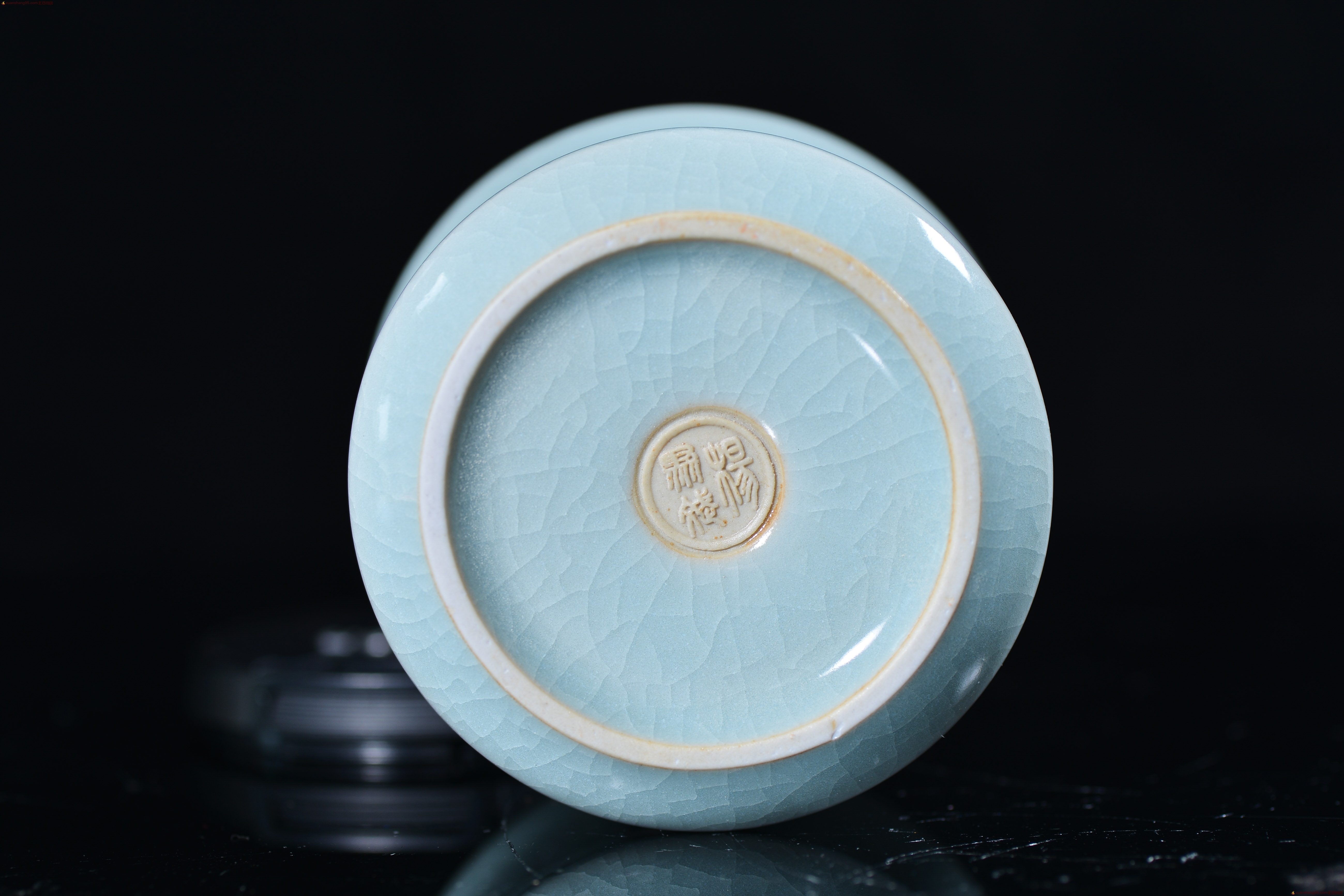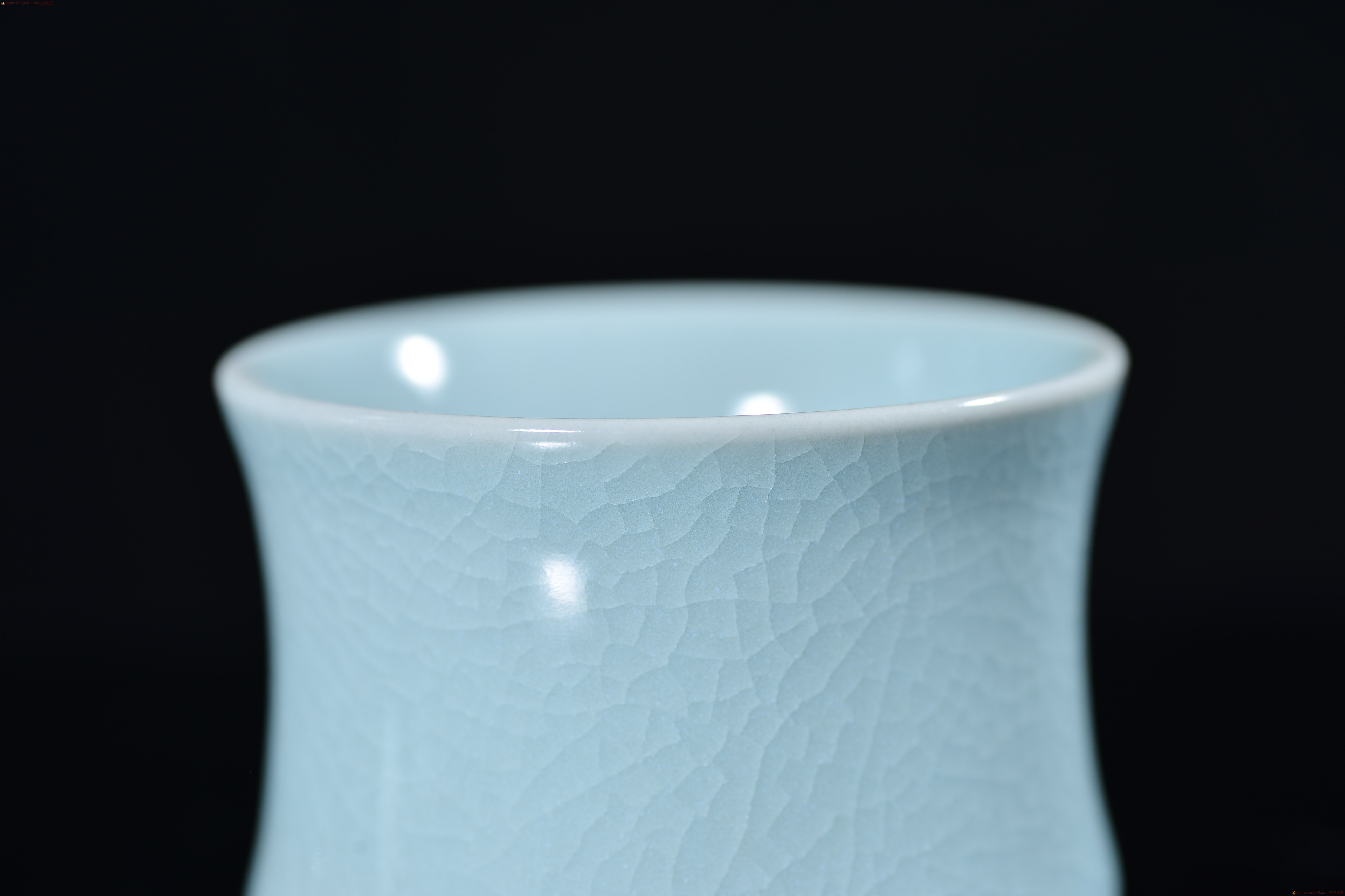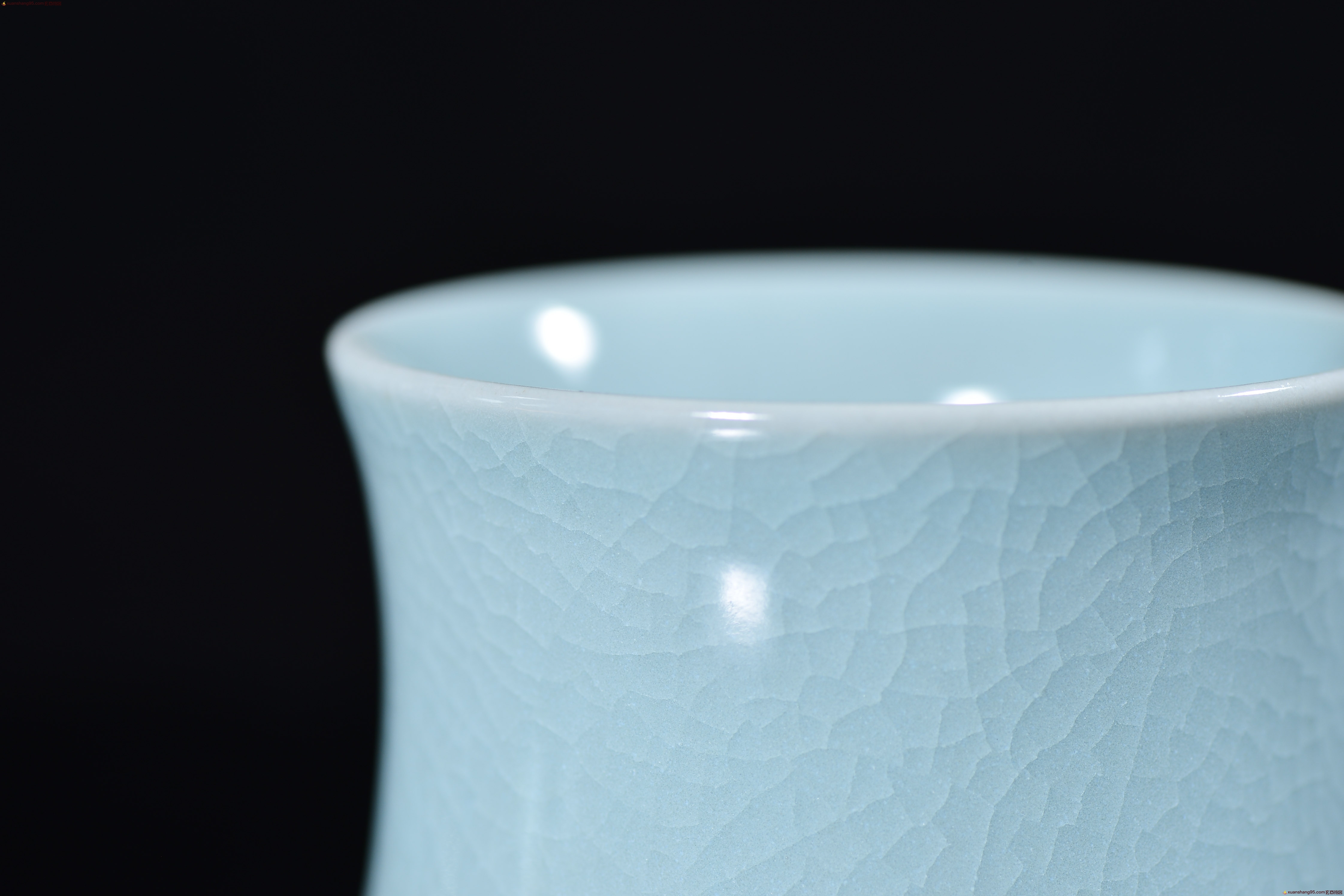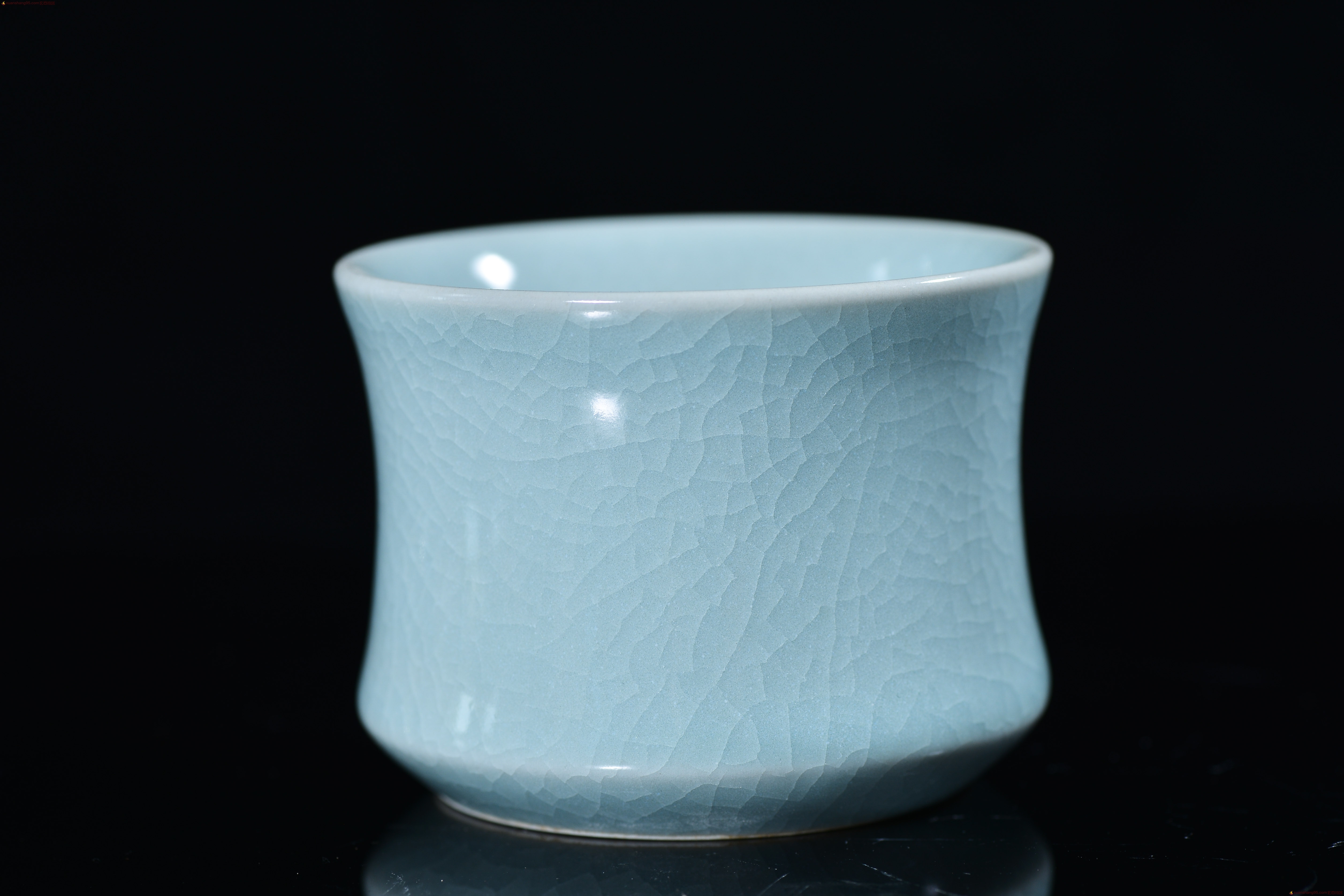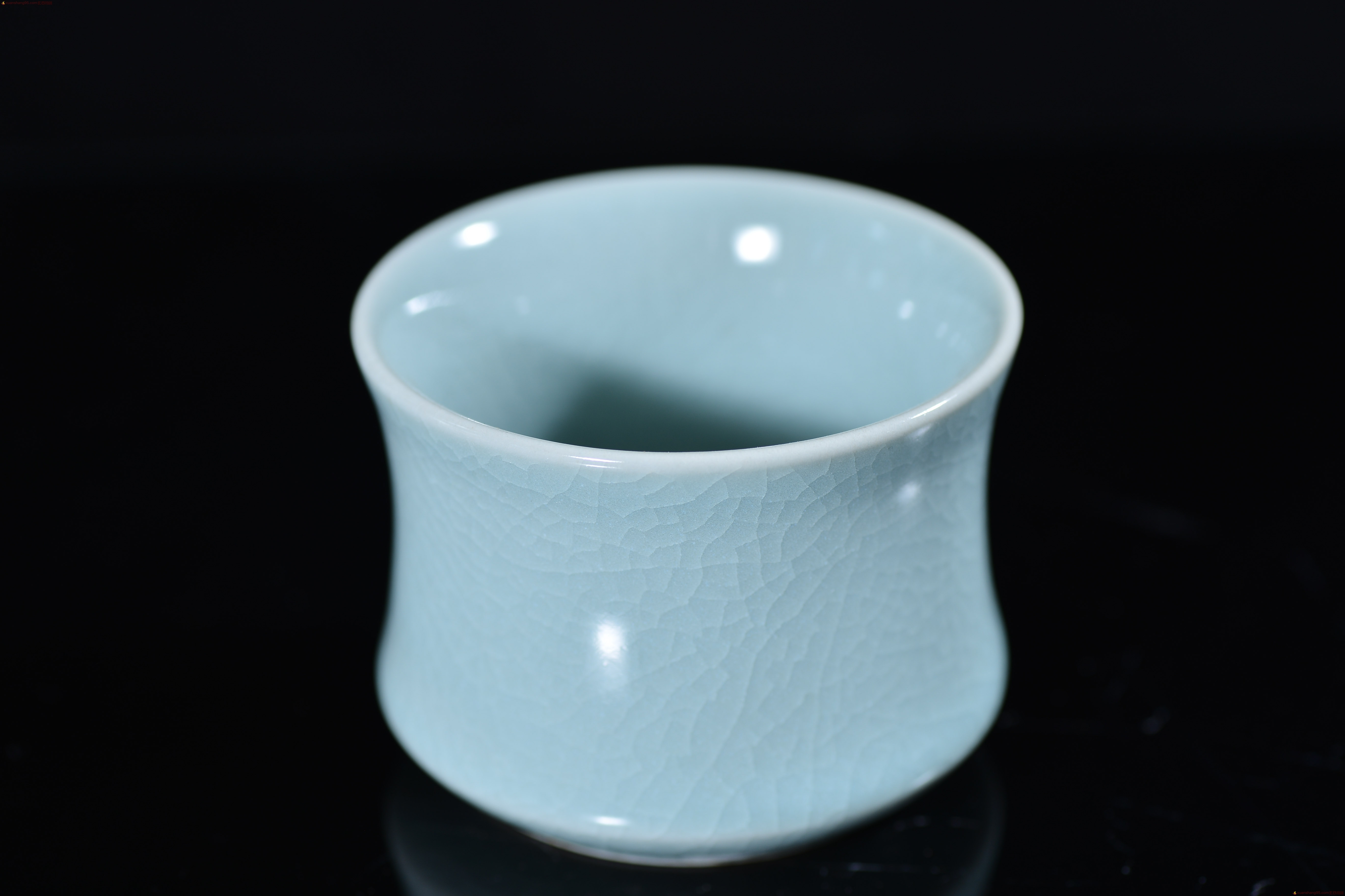 汝瓷 天青釉 主人杯 采用汝州本地天然原矿石,研磨精工制作而成,做工一流,设计巧妙,杯内上满釉,开片精美,收藏使用佳品。 汝瓷—中国五大名瓷之一,创烧于北宋晚期,为宫廷御用瓷器。金灭北宋后,汝瓷也随之消亡。其开窑时间前后只有二十年,由于烧造时间短暂,传世亦不多,在南宋时,汝瓷已经非常稀有。现今存世的汝瓷,一般认为有65件,其中台北故宫博物院23件,北京故宫博物院17件,上海博物馆8件,英国戴维基金会7件,其他散藏于美、日等博物馆和私人收藏约10件。所以才有“家财万贯,不如汝瓷一片”。 作者杨聚斌出生于19