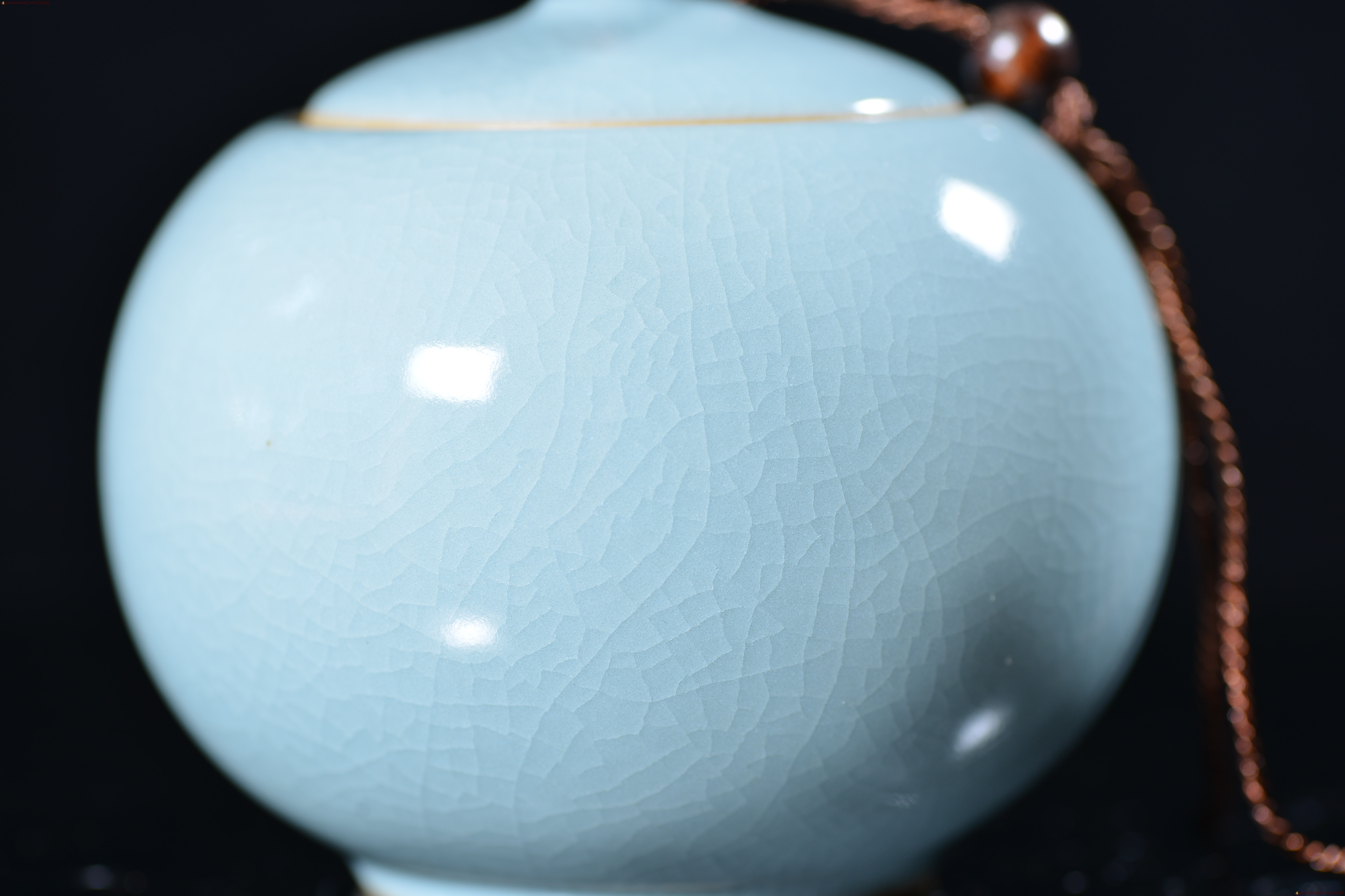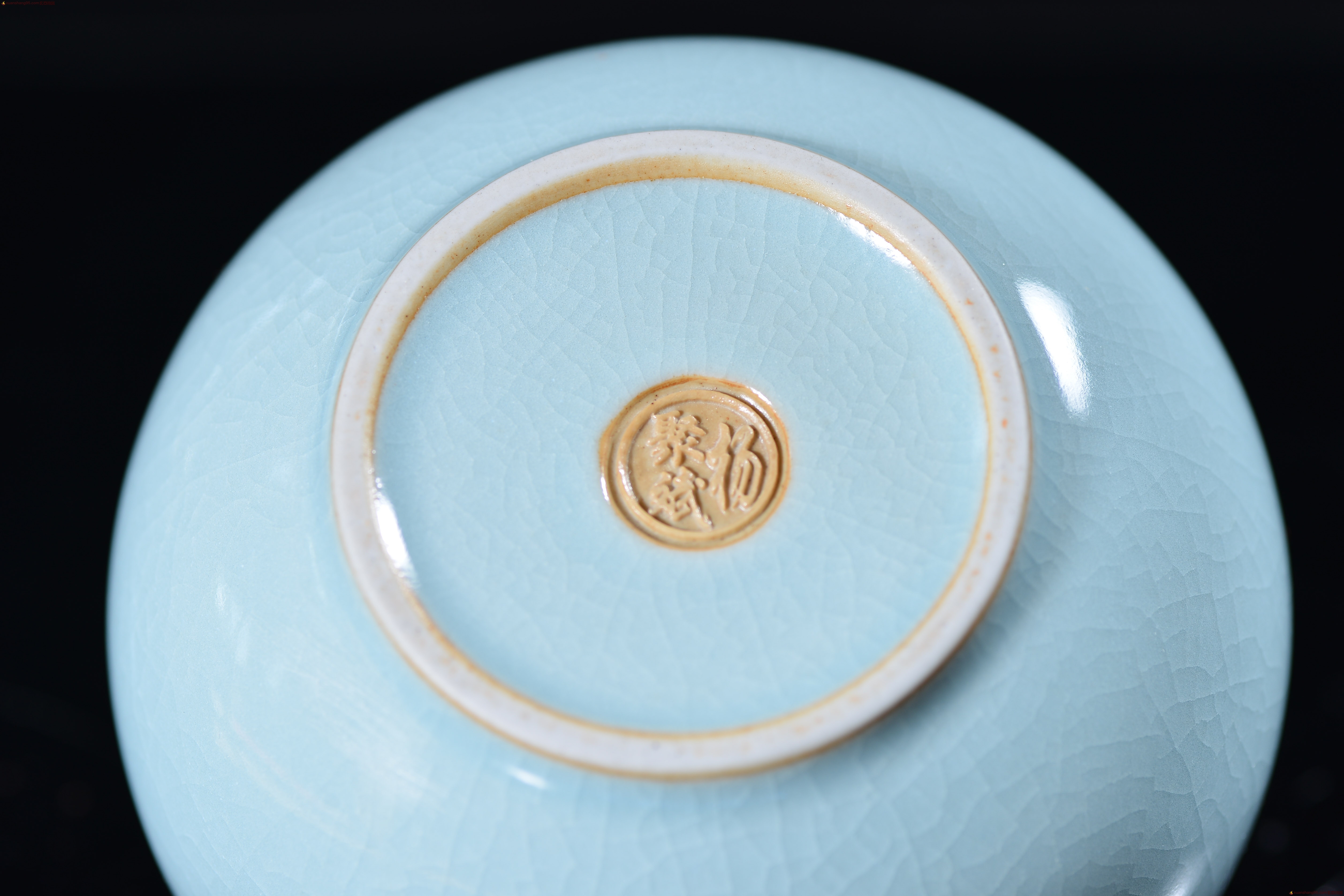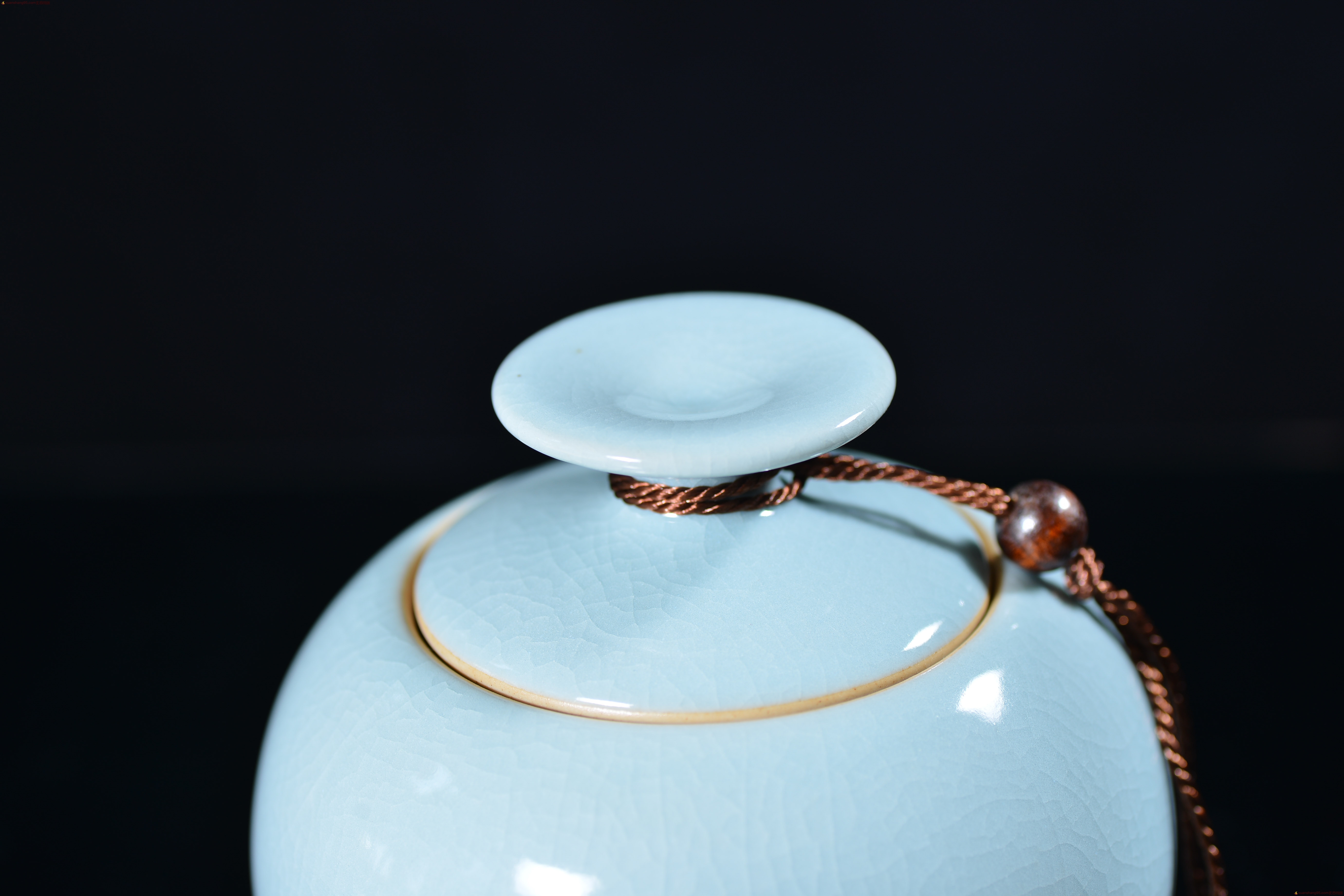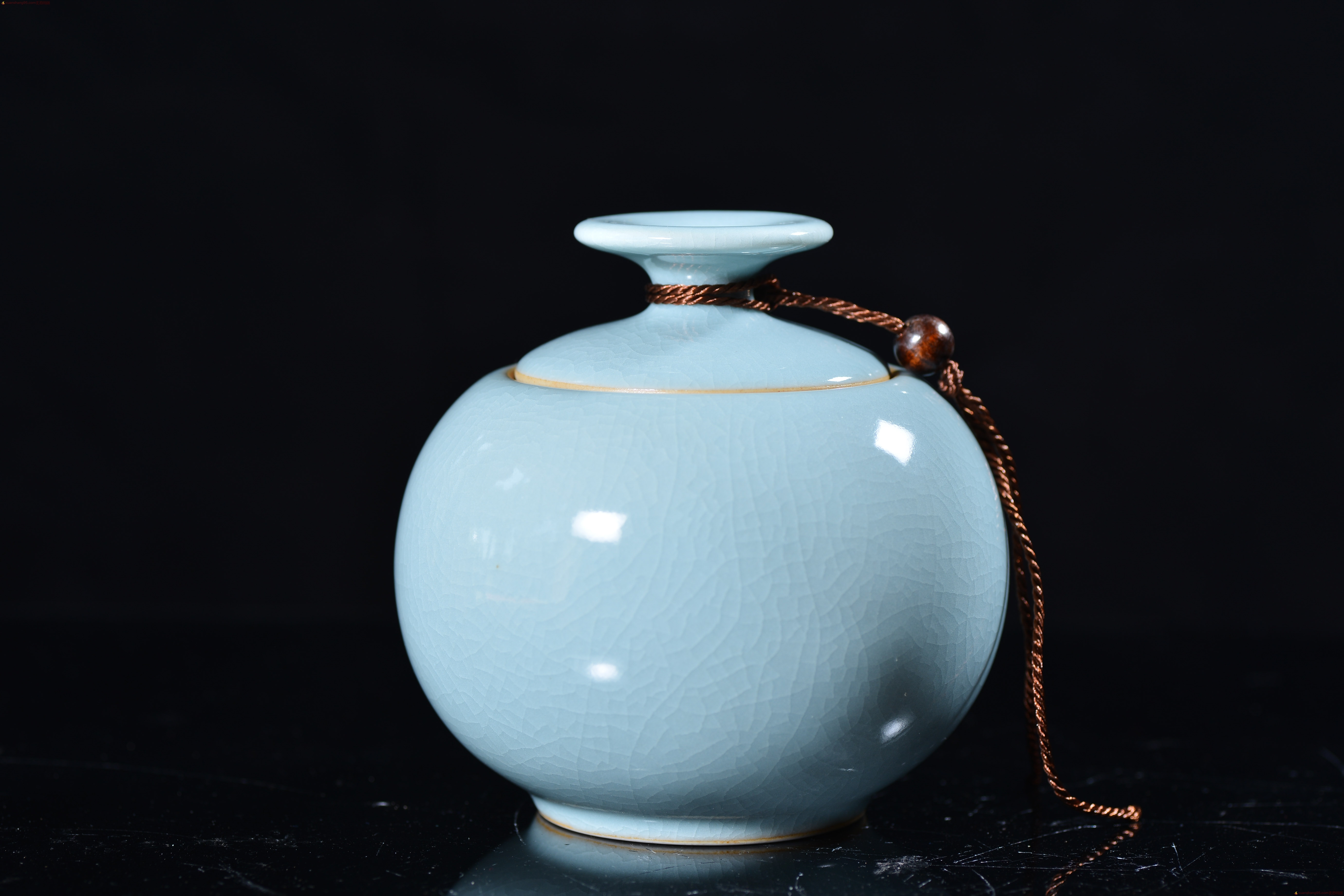 汝瓷 天青釉 茶叶罐 采用汝州本地天然原矿石,研磨精工制作而成,做工一流,设计巧妙,杯内上满釉,开片精美,收藏使用佳品。 汝瓷—中国五大名瓷之一,创烧于北宋晚期,为宫廷御用瓷器。金灭北宋后,汝瓷也随之消亡。其开窑时间前后只有二十年,由于烧造时间短暂,传世亦不多,在南宋时,汝瓷已经非常稀有。现今存世的汝瓷,一般认为有65件,其中台北故宫博物院23件,北京故宫博物院17件,上海博物馆8件,英国戴维基金会7件,其他散藏于美、日等博物馆和私人收藏约10件。所以才有“家财万贯,不如汝瓷一片”。 作者杨聚斌出生于1