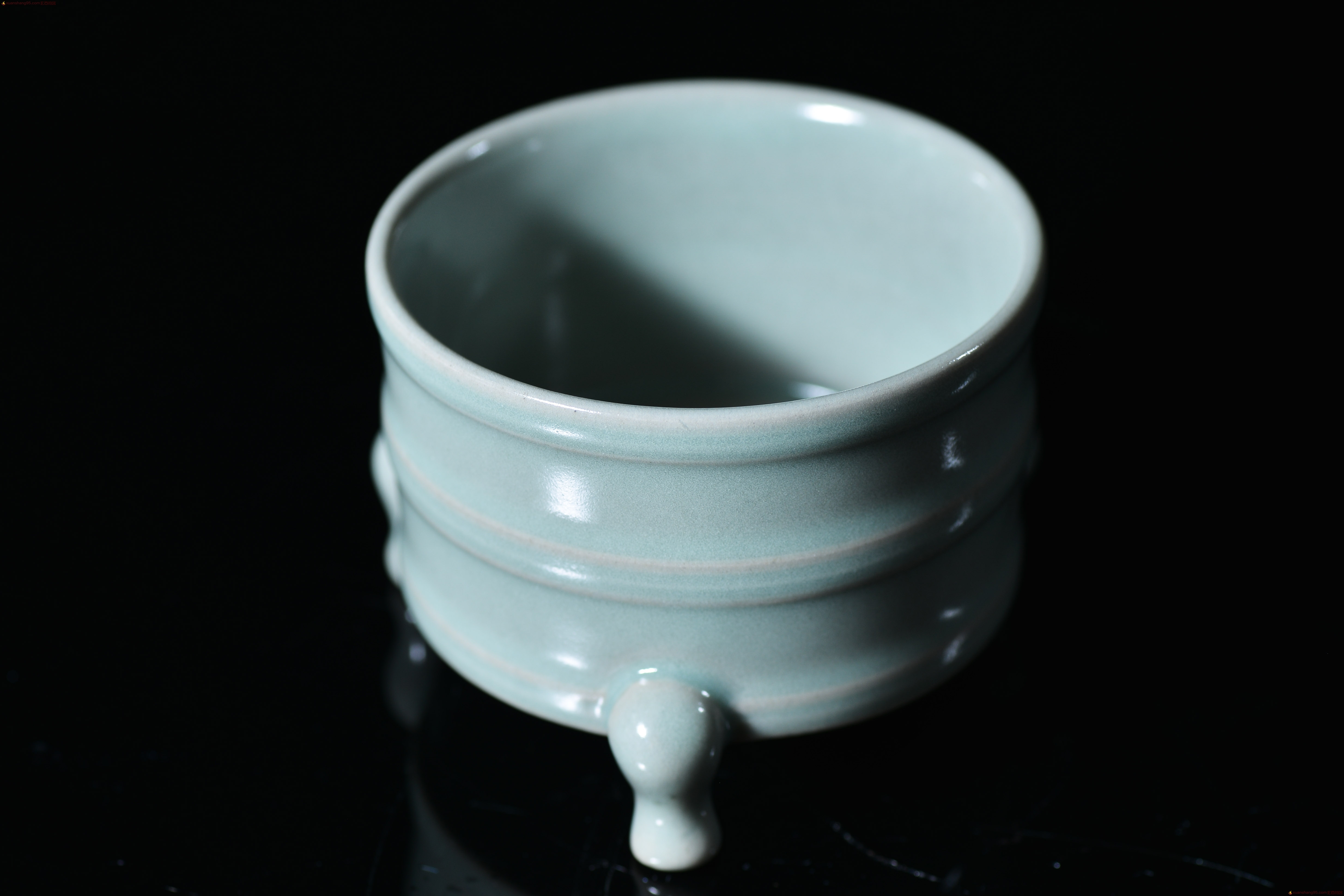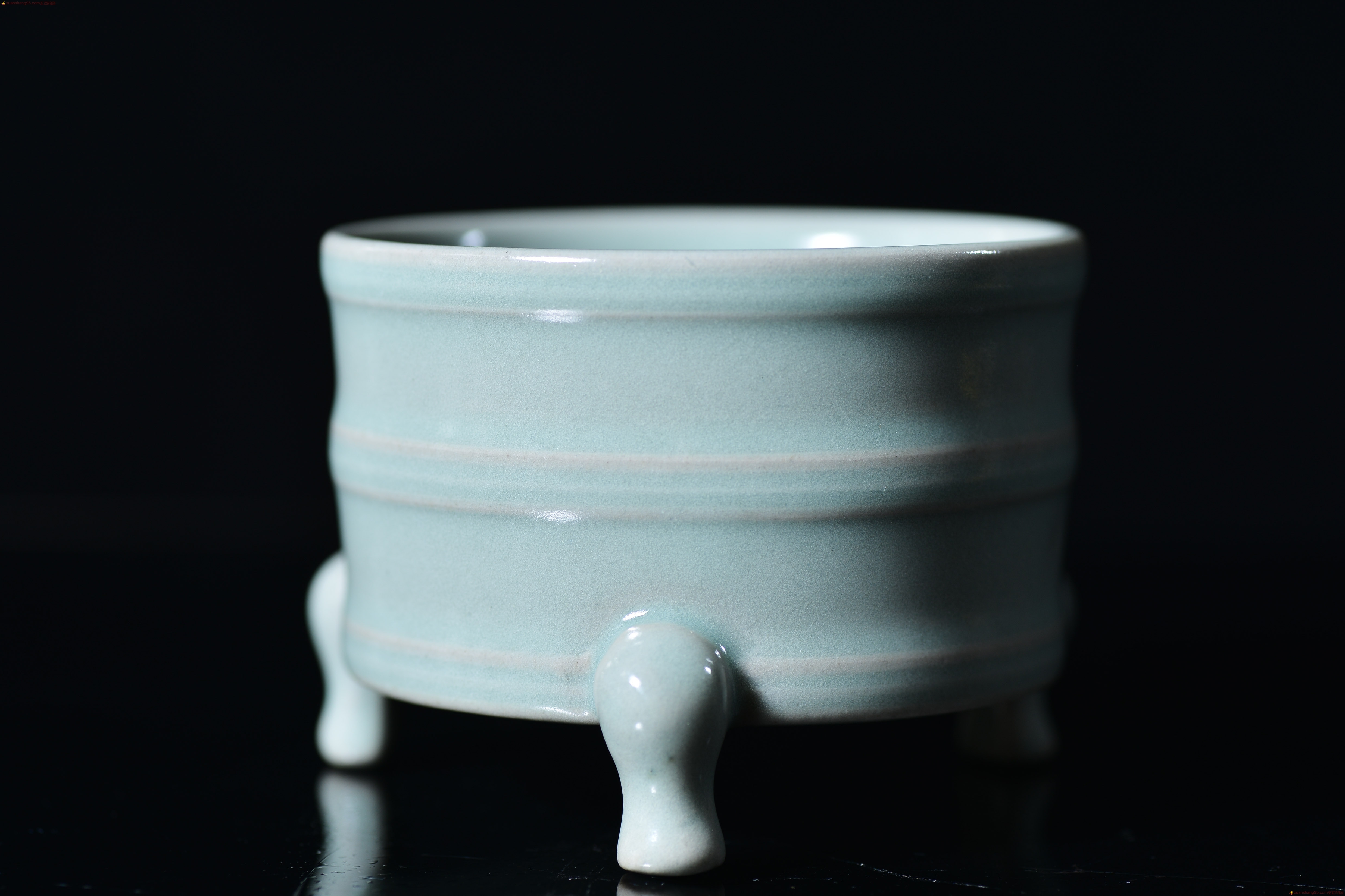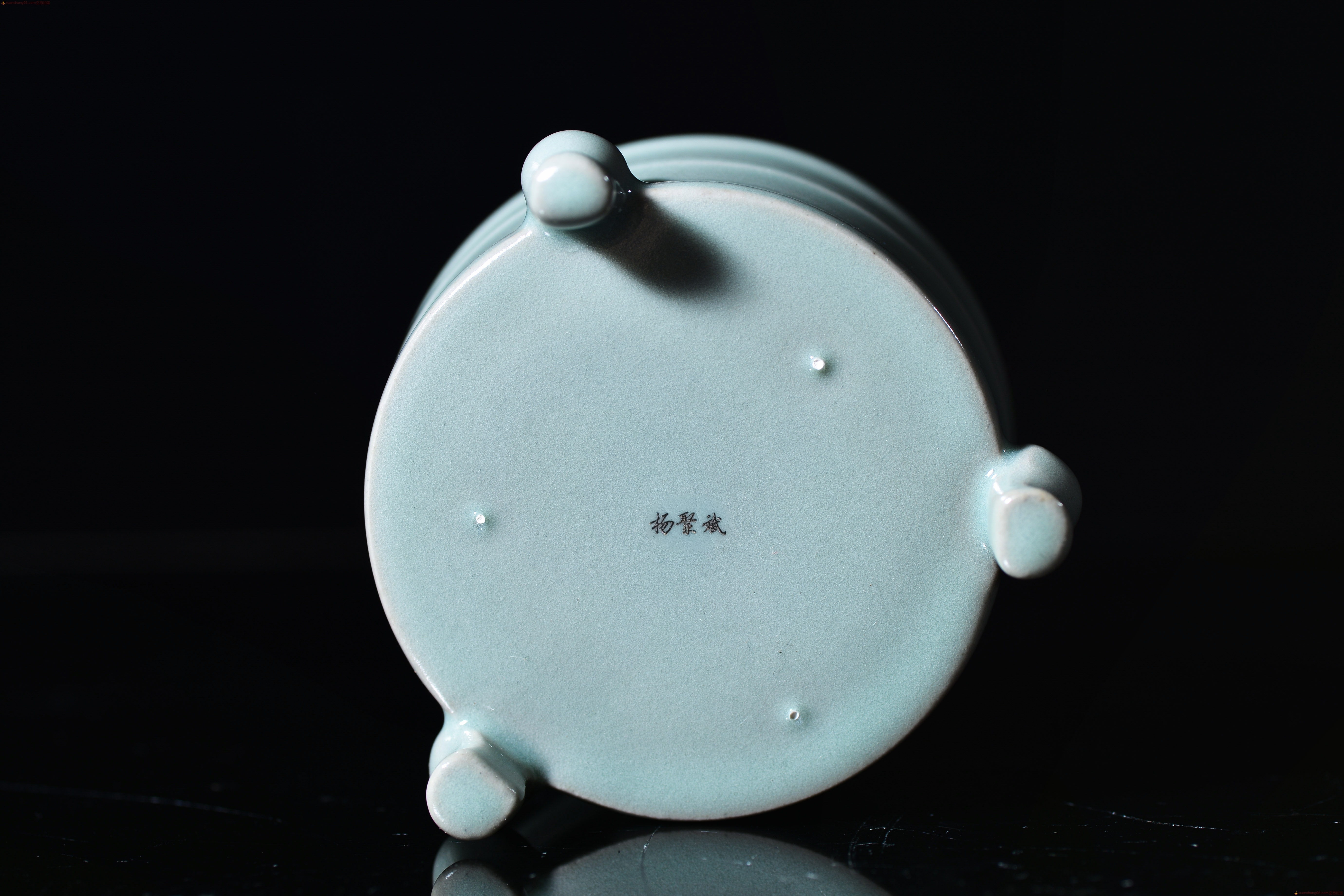 汝瓷 复古釉 三足玄纹洗,手工制作,釉面温润 没有贼光,具有历史感和年代感。作者杨聚斌出生于1962年2月,因为父亲在陵头陶瓷厂工作,因此杨聚斌自幼受父亲耳濡目染,从少年时代就形成了陶瓷情结。1980年,正式进入陵头陶瓷厂工作,开始系统学习陶瓷的烧制、配釉、造型、手拉胚等陶瓷制作技术。1990年,杨聚斌受洛阳旅游局聘请,被聘任为洛阳旅游局钧瓷厂技术厂长。1994年,杨聚斌被汝州市政府招聘到汝州市汝瓷一厂担任技术科长。1997年,企业改制后,杨聚斌自己成立了杨聚斌汝瓷工作室。 2015年6月,作品《百合洗》