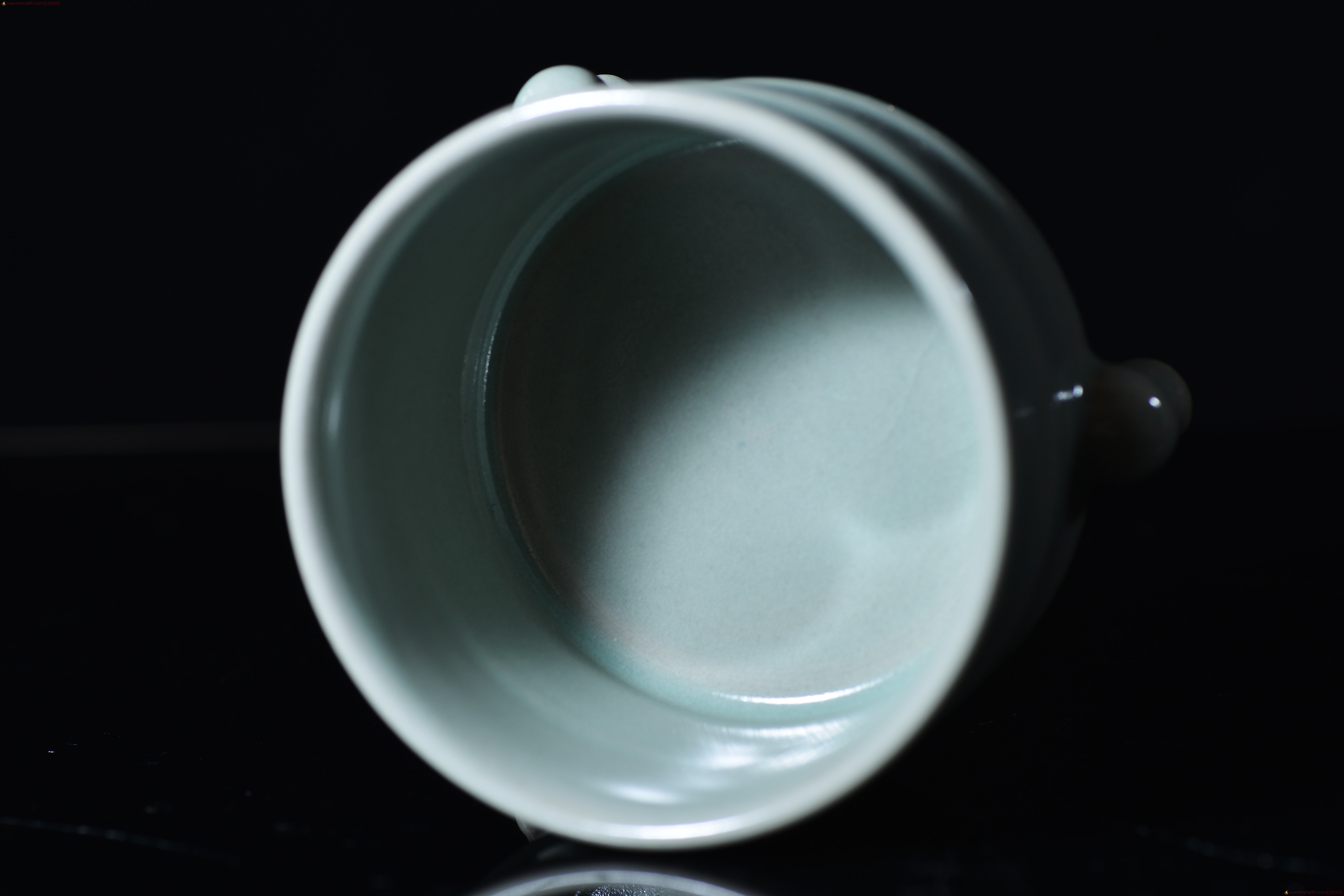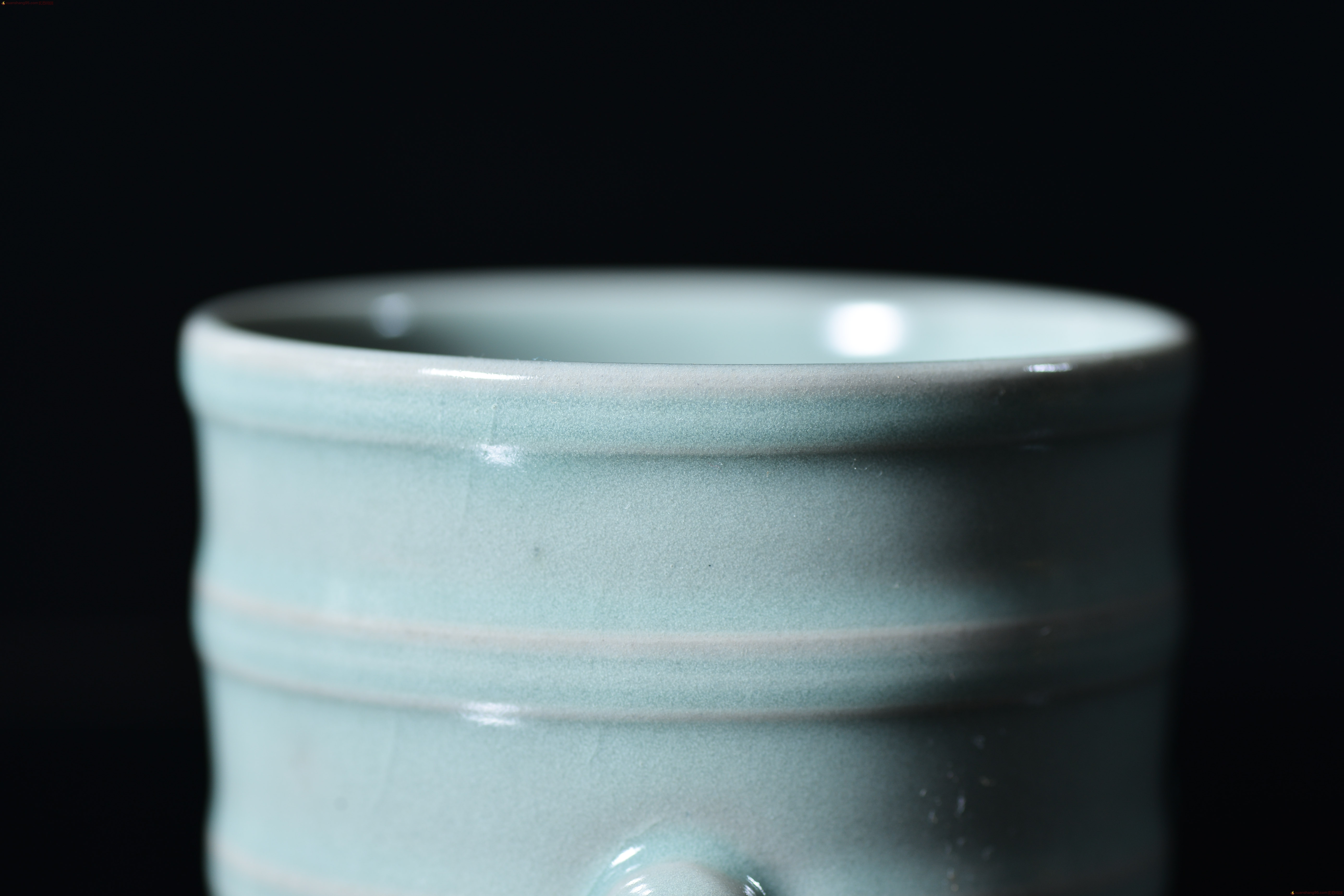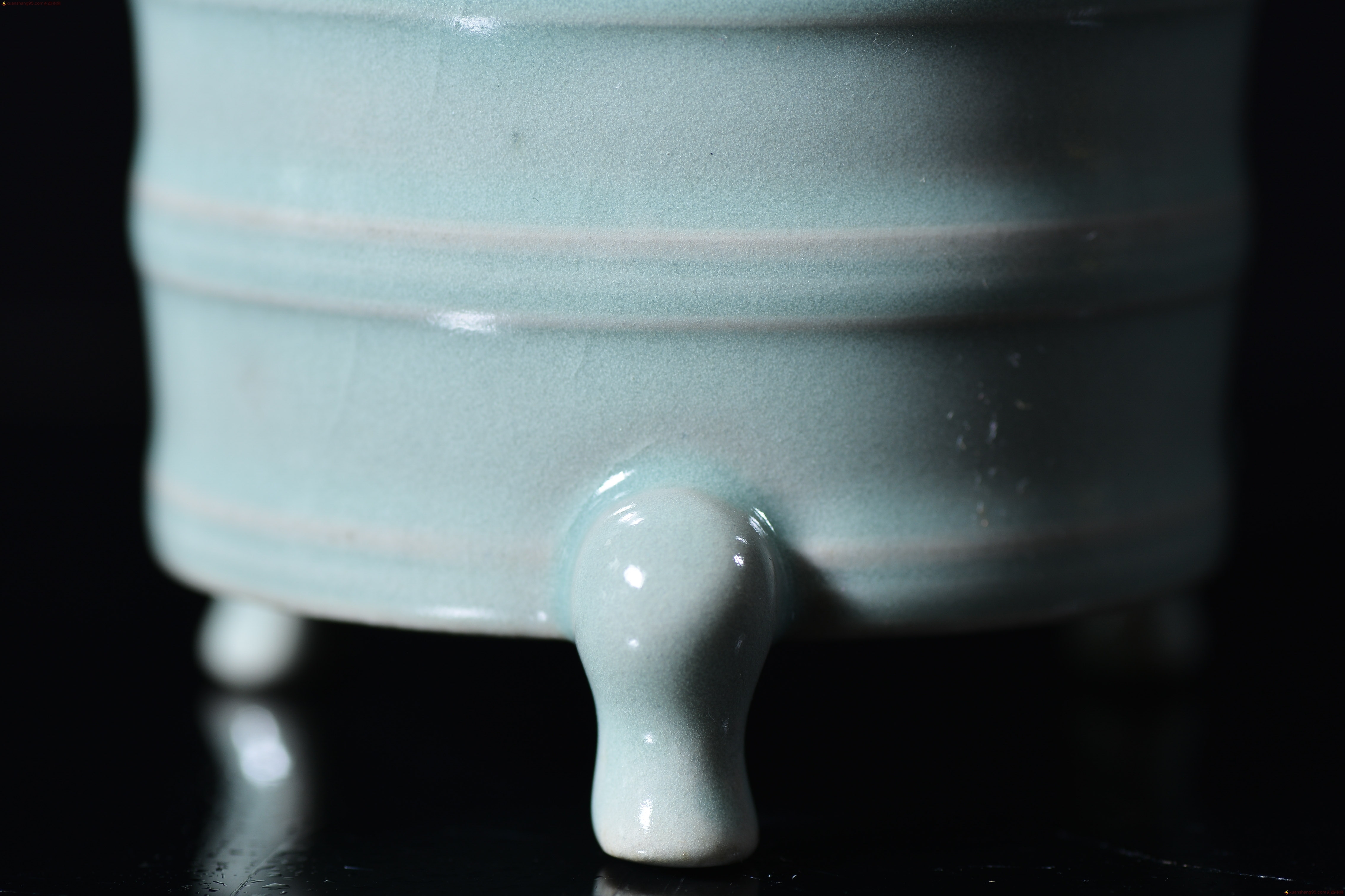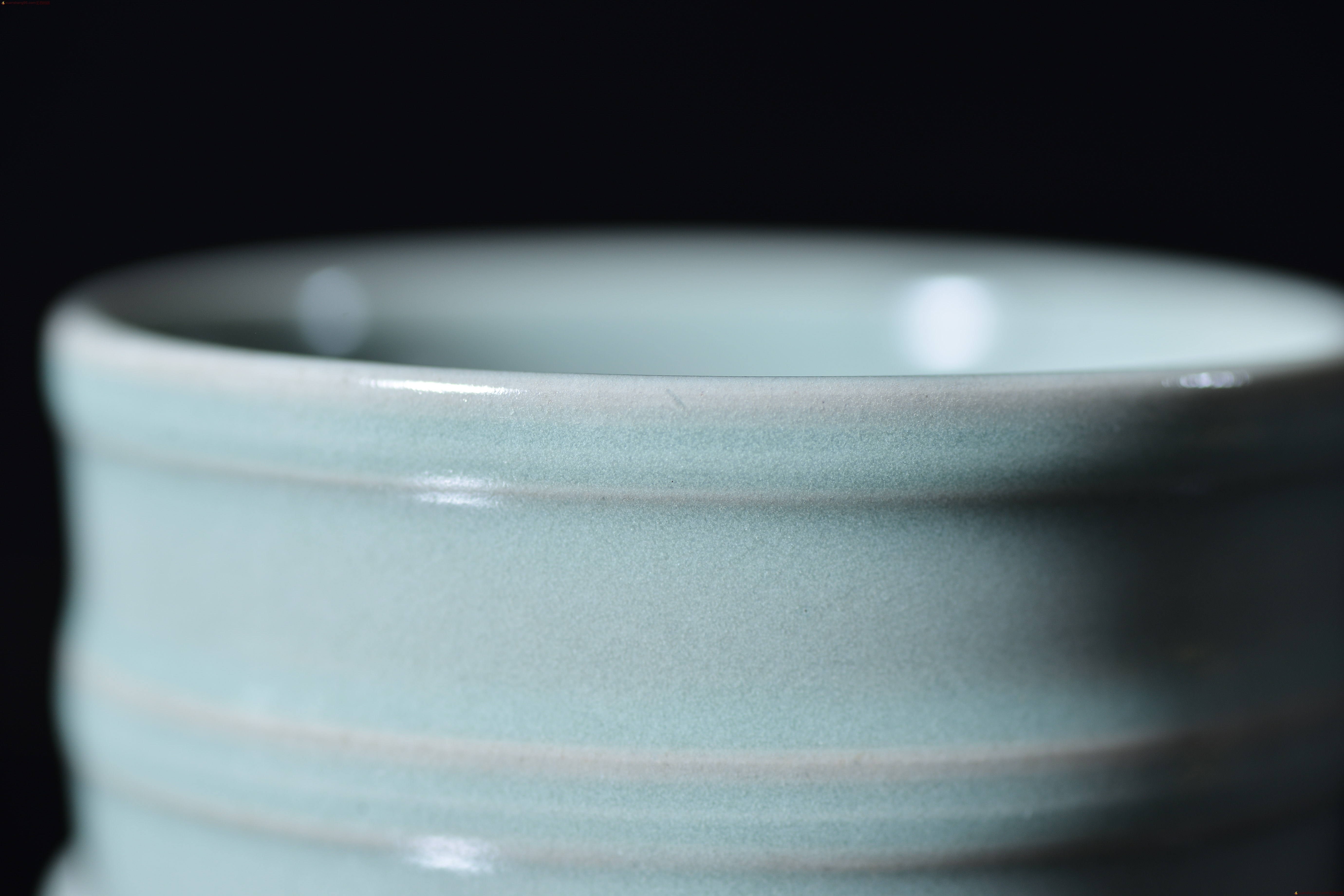 汝瓷 复古釉 三足玄纹洗,手工制作,釉面温润 没有贼光,具有历史感和年代感。作者杨聚斌出生于1962年2月,因为父亲在陵头陶瓷厂工作,因此杨聚斌自幼受父亲耳濡目染,从少年时代就形成了陶瓷情结。1980年,正式进入陵头陶瓷厂工作,开始系统学习陶瓷的烧制、配釉、造型、手拉胚等陶瓷制作技术。1990年,杨聚斌受洛阳旅游局聘请,被聘任为洛阳旅游局钧瓷厂技术厂长。1994年,杨聚斌被汝州市政府招聘到汝州市汝瓷一厂担任技术科长。1997年,企业改制后,杨聚斌自己成立了杨聚斌汝瓷工作室。 2015年6月,作品《百合洗》