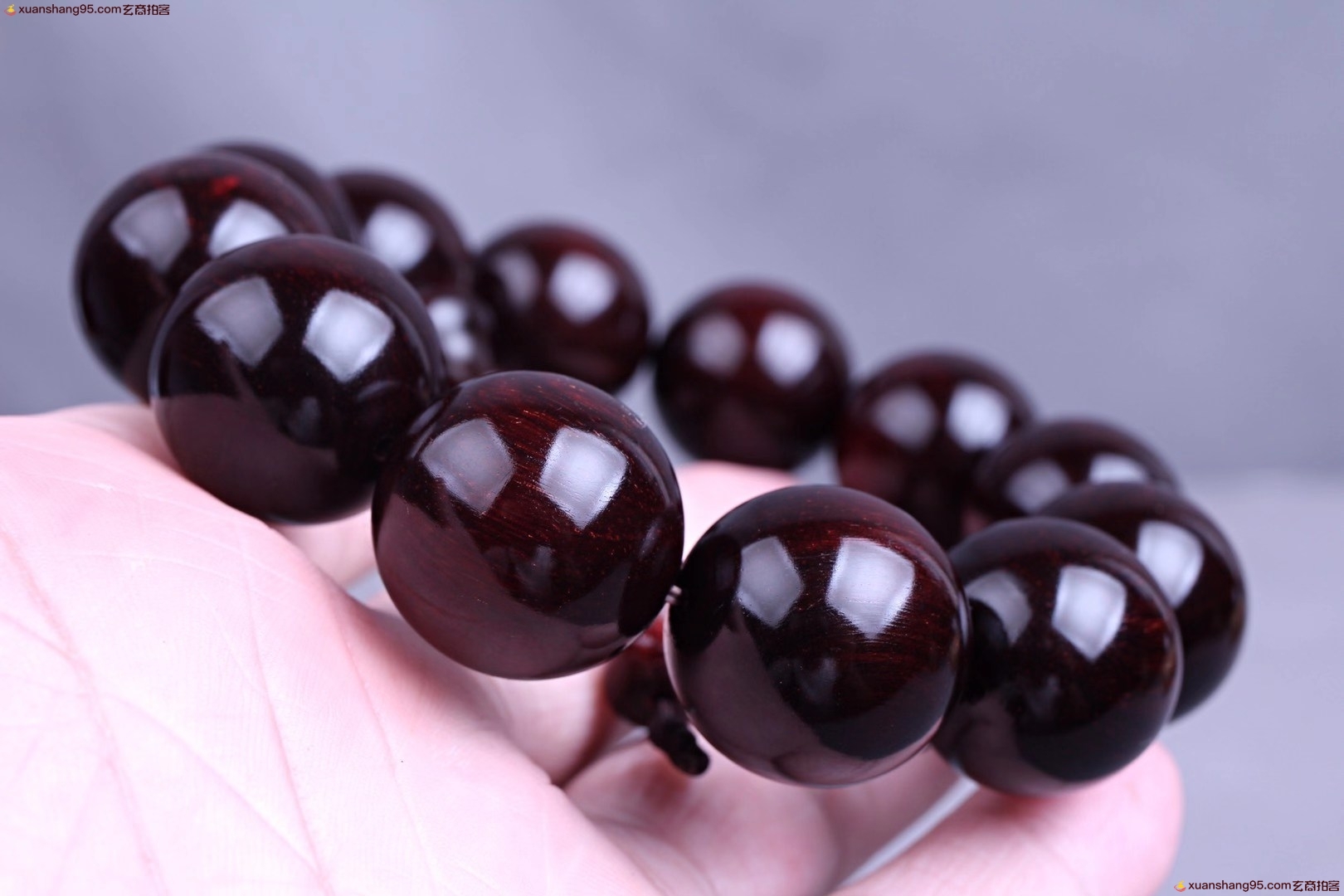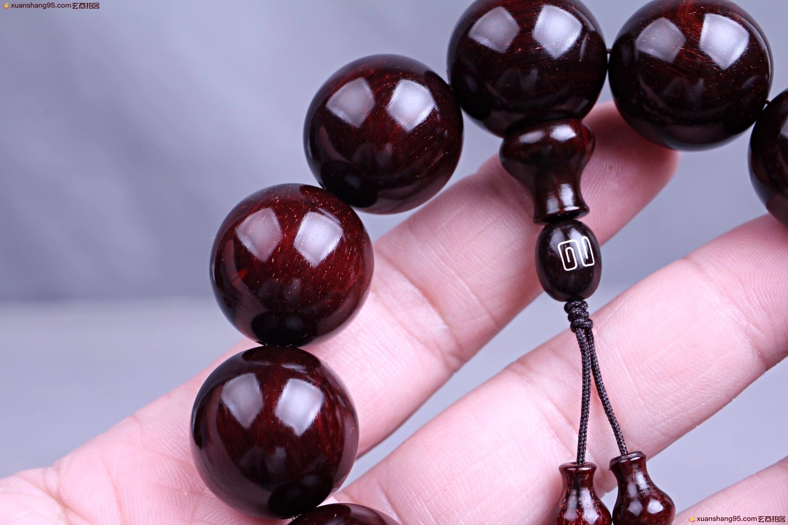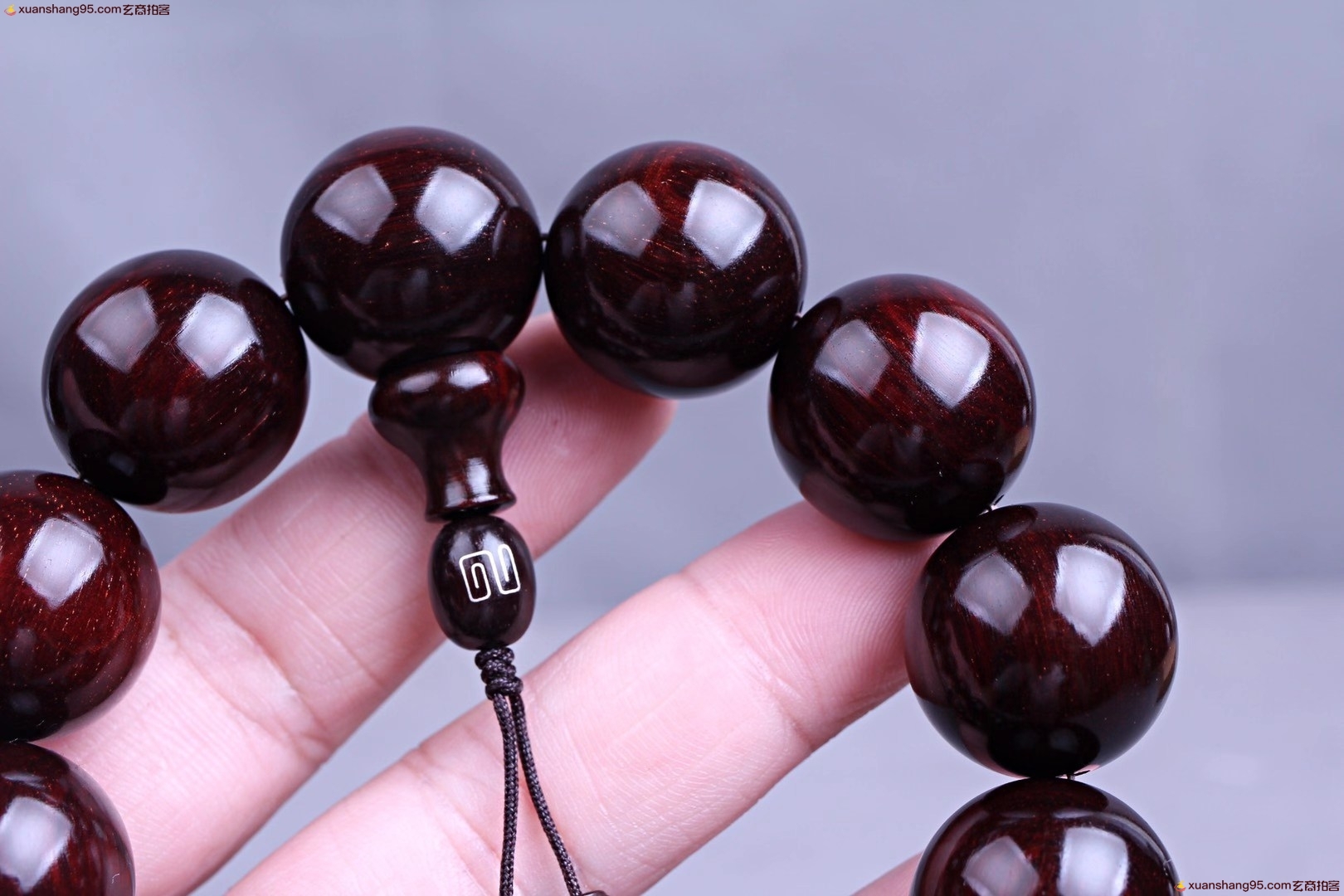 精选 印度小叶紫檀 手串,颗颗精选,高油高密,千年老料木质稳定,材质细腻,带星玻璃底,玻璃质感*好,规格:2.0厘米