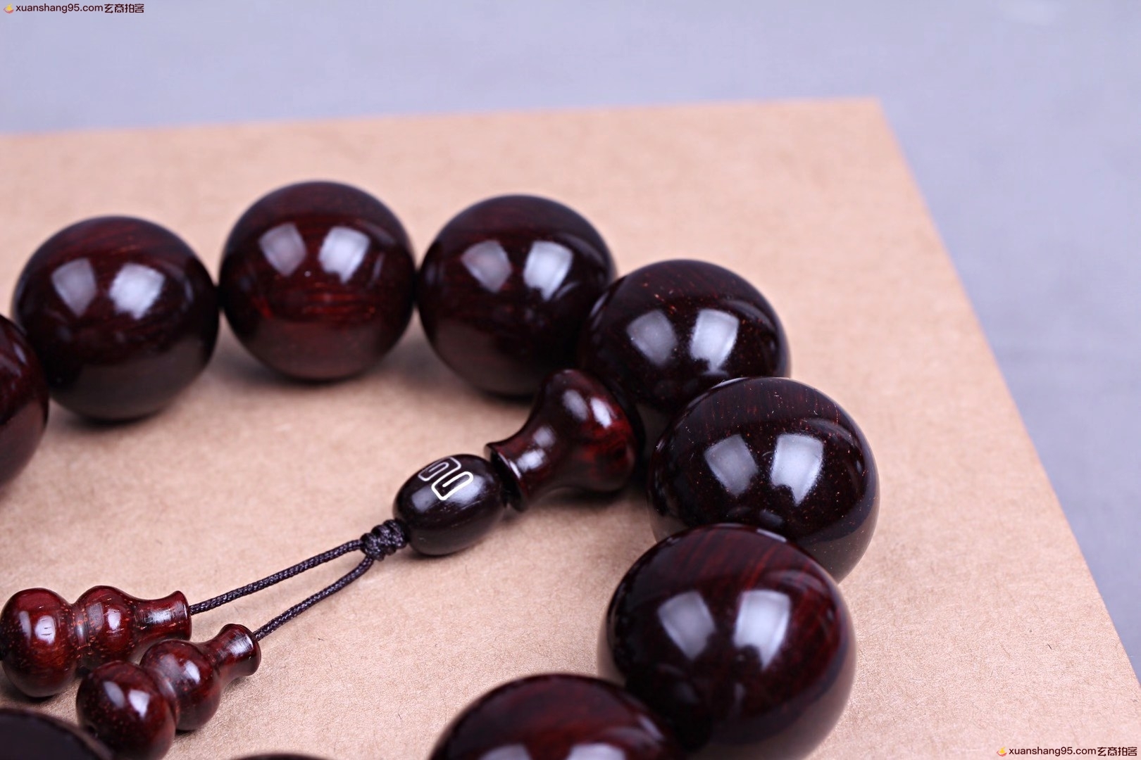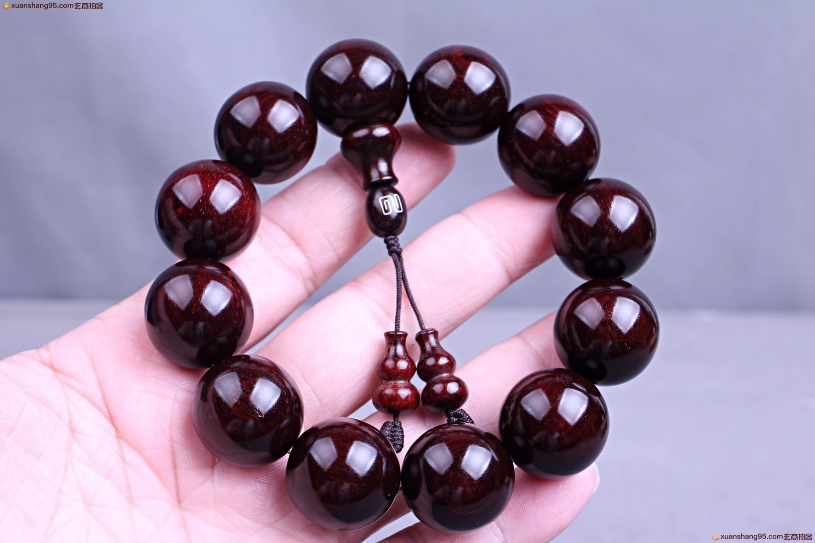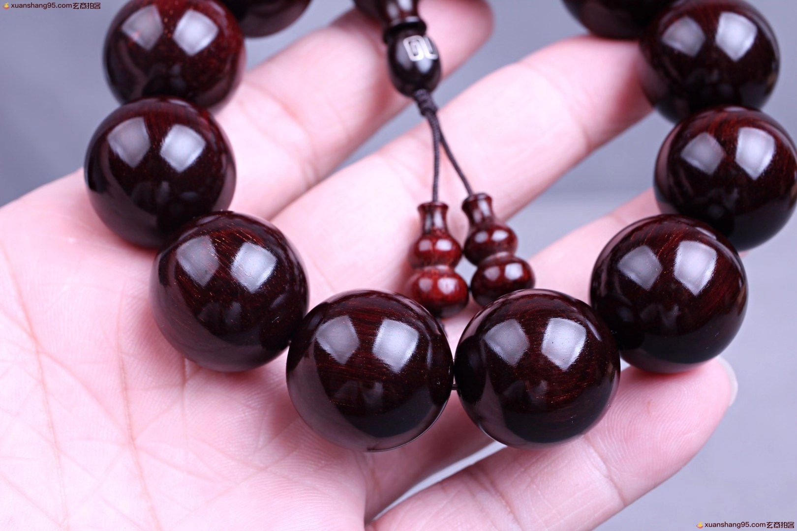 精选 印度小叶紫檀 手串,颗颗精选,高油高密,千年老料木质稳定,材质细腻,带星玻璃底,玻璃质感*好,规格:2.0厘米