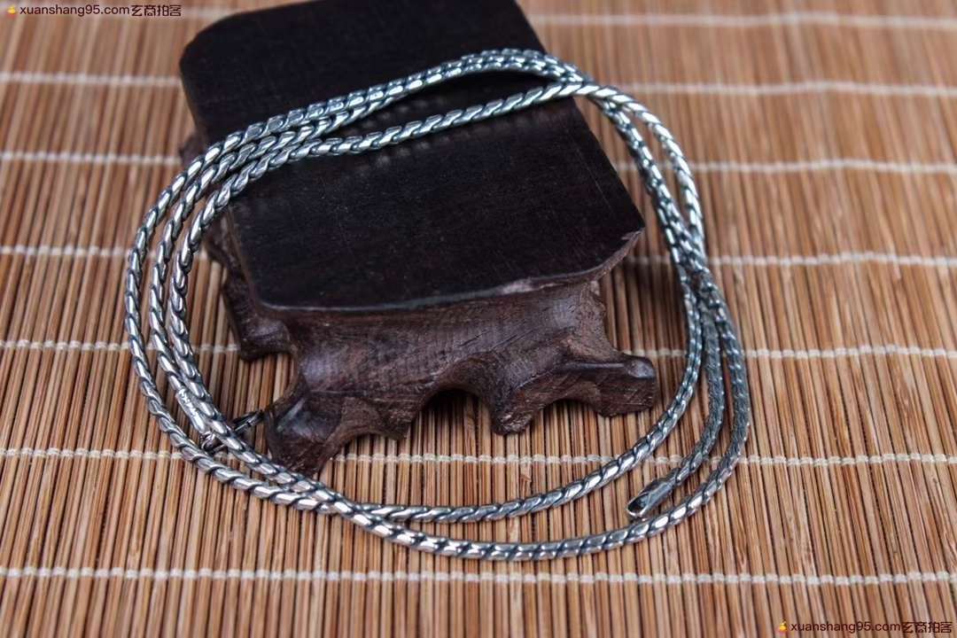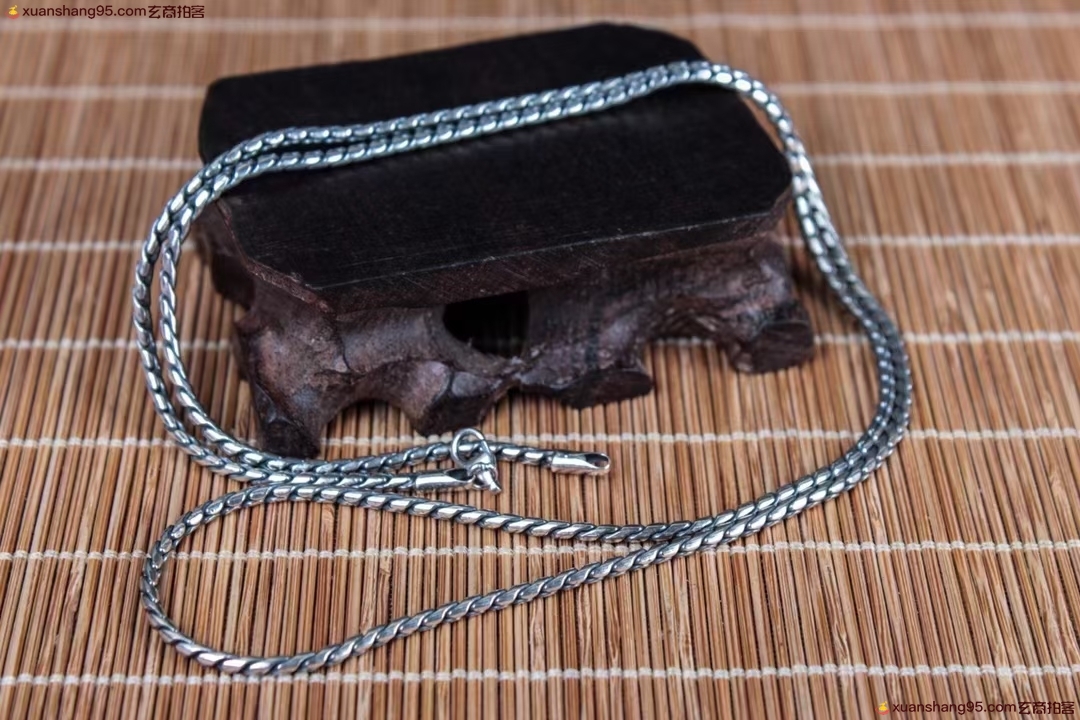 精选 s925复古 项链,丽江雪花银,可食用银,纯银,简约复古,纯手工打造,物*所值,长:65.2cm 宽:0.2cm 克重约:20克
