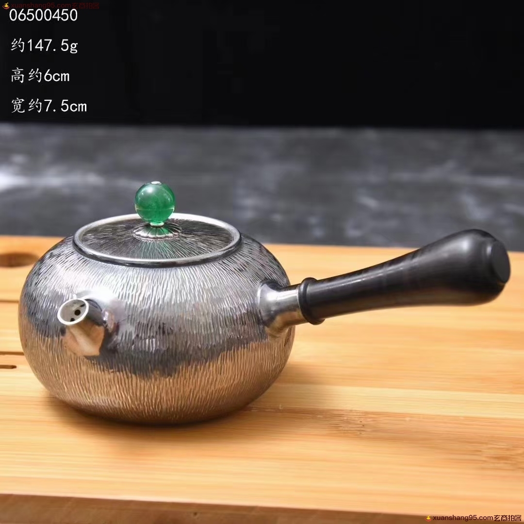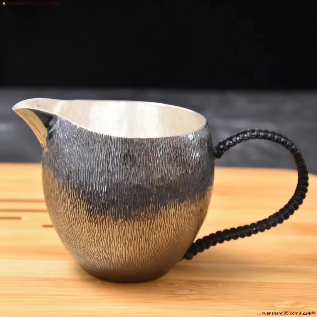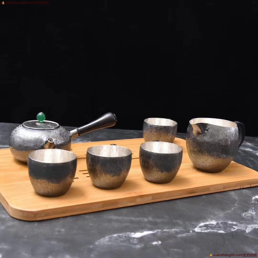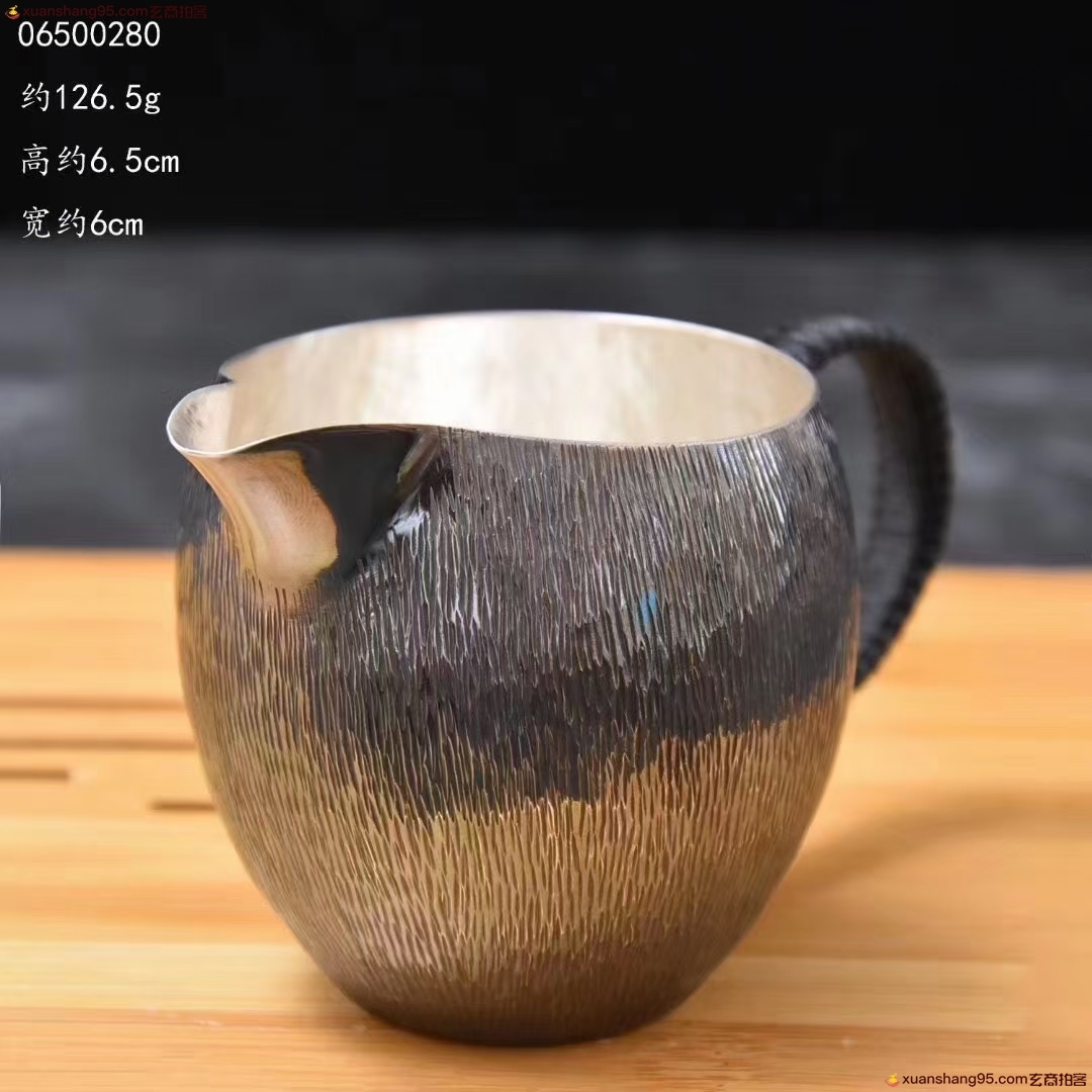 精选 s999千足银 茶具,丽江纯手工打造雪花银s999可食用级别,敲打纹竖纹侧把复古茶具套装,收藏价值*高,规格:茶壶高6厘米 直径7.5厘米 克重148克 公道杯:高6.5厘米 直径6厘米 克重127克 茶杯:高5厘米 直径5.5厘米 克重70克 总克重:555克