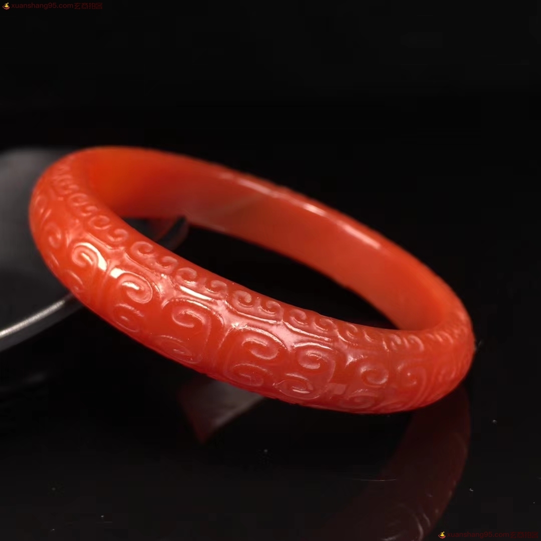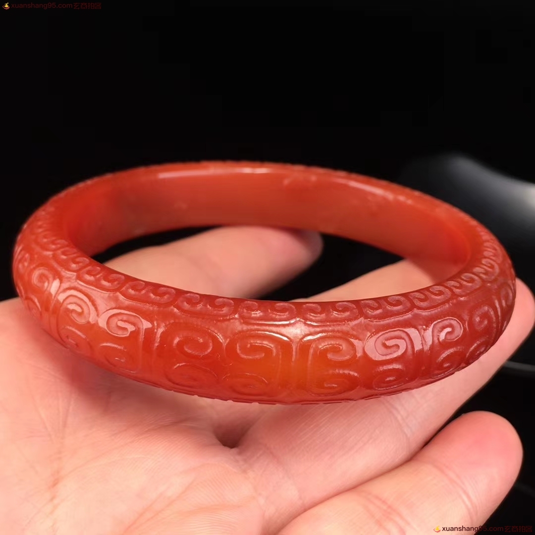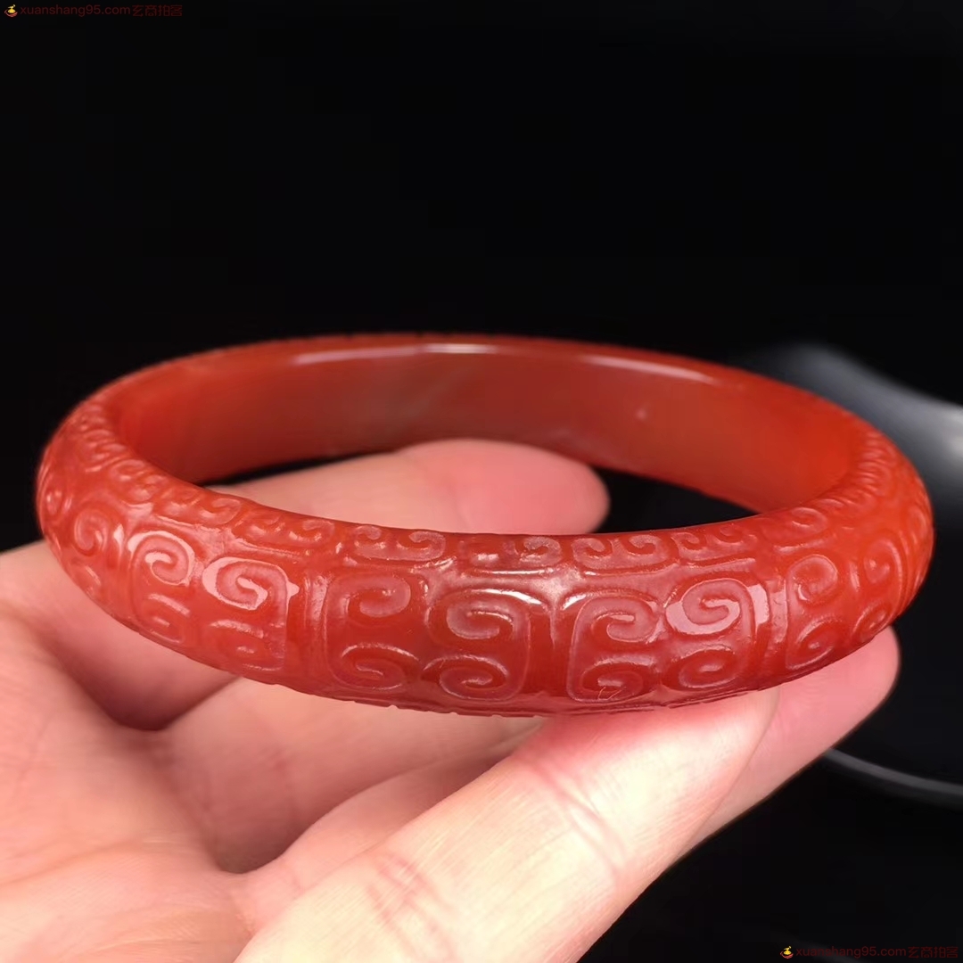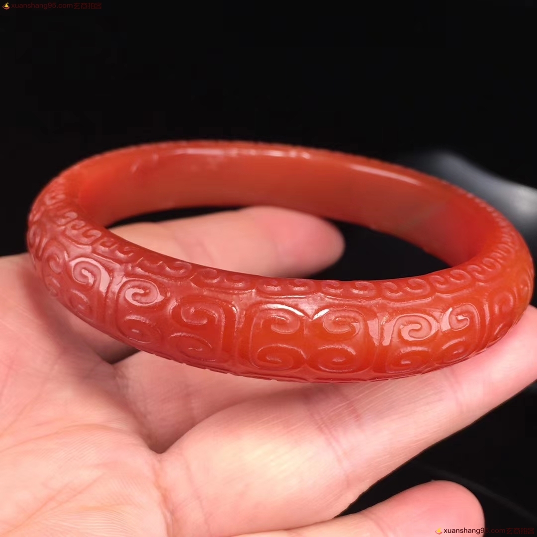 精选 老料红玛瑙 手镯,精工雕刻如意 回纹 玉手镯,手工打磨,成色漂亮如图,佩戴效果更佳,自留送人佳品,内径:60.6毫米 宽12.9毫米 重量:41.5克