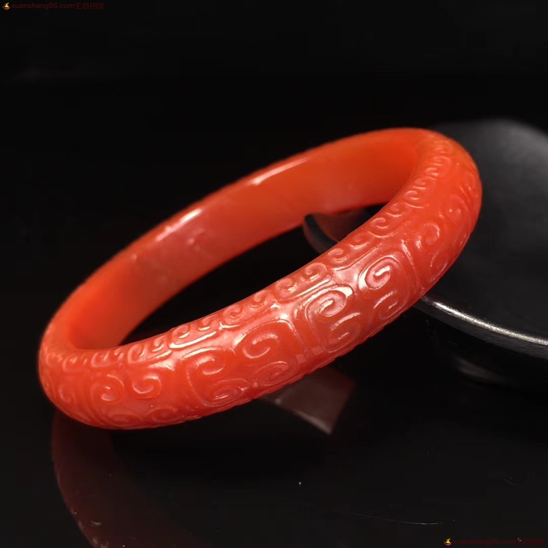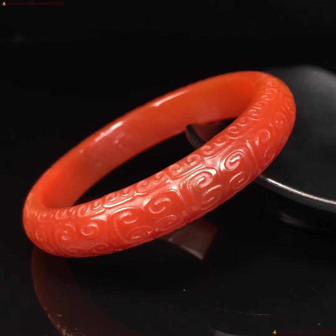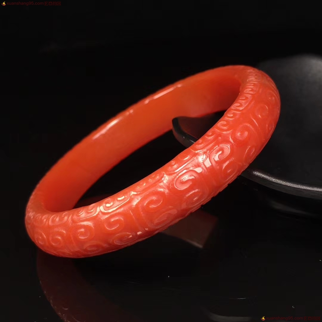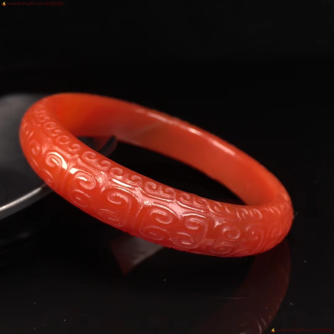精选 老料红玛瑙 手镯,精工雕刻如意 回纹 玉手镯,手工打磨,成色漂亮如图,佩戴效果更佳,自留送人佳品,内径:60.6毫米 宽12.9毫米 重量:41.5克