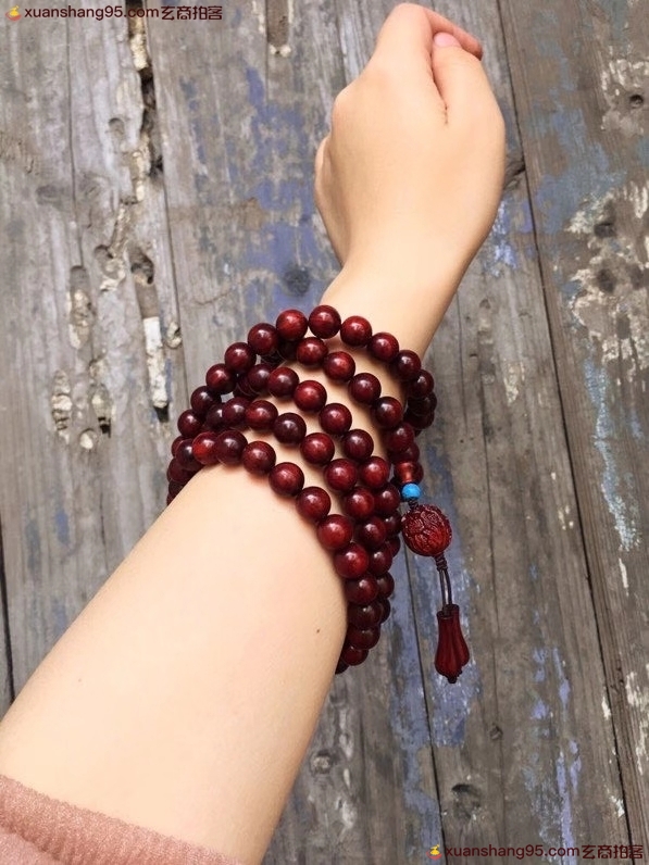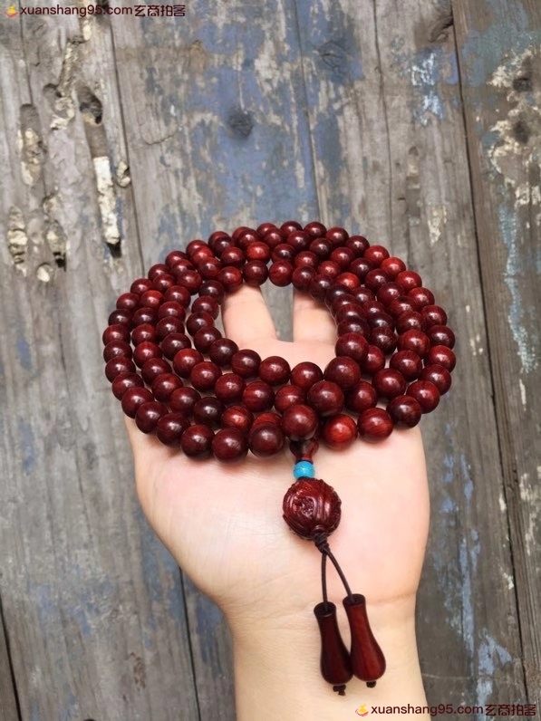 精选 印度小叶紫檀 108颗 手串,老料浅红,料质细腻,玻璃底,手感温润,搭配同品质白菜财净瓶,静待有缘人,规格:1.0厘米