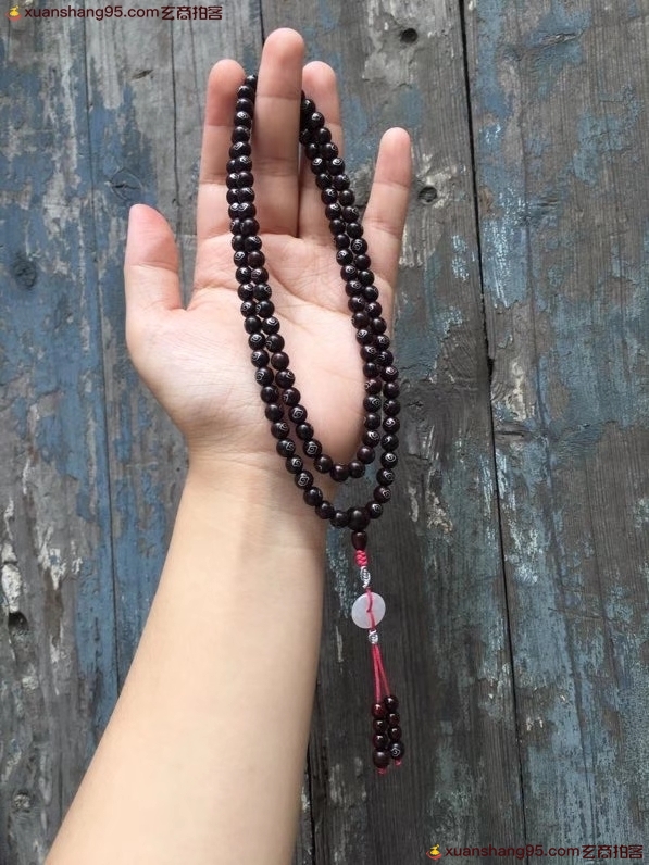 精选 印度小叶紫檀 手链,0.6厘米镶银丝,祥云,老料,料质细腻,玻璃底,手感温润,搭配翡翠平安扣,时尚简约,物*所值,