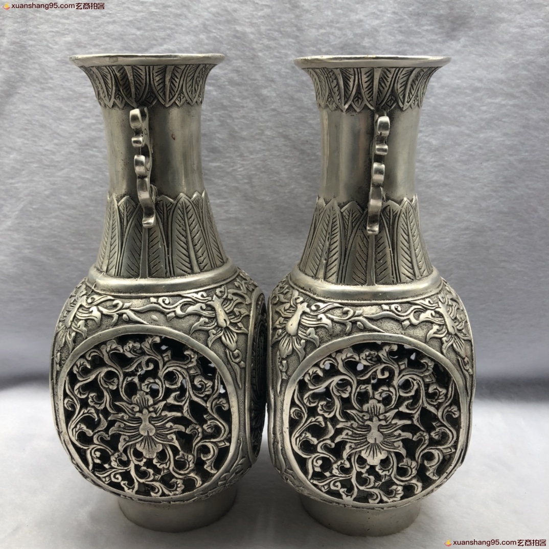 精选 白铜 一对花瓶 摆件,工艺精湛,收藏佳品,取一规格:直径8厘米 高21厘米 重量57克