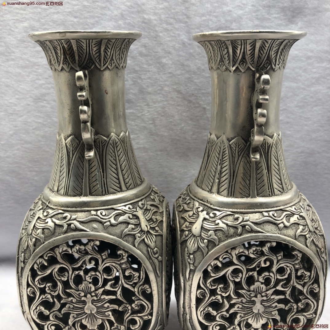 3. 竞拍详细 - 精选 白铜 一对花瓶 摆件
