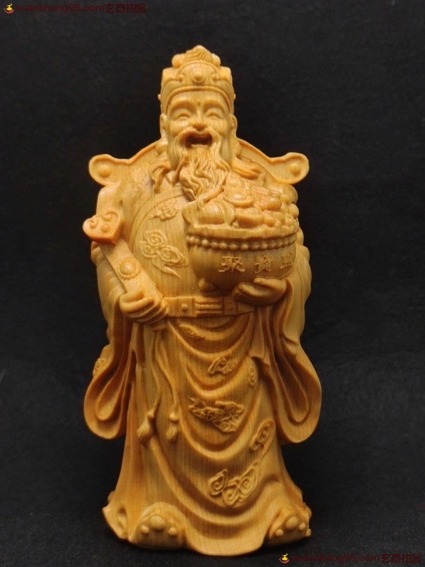 3. 竞拍详细 - 精选 崖柏聚宝盆财神爷 摆件