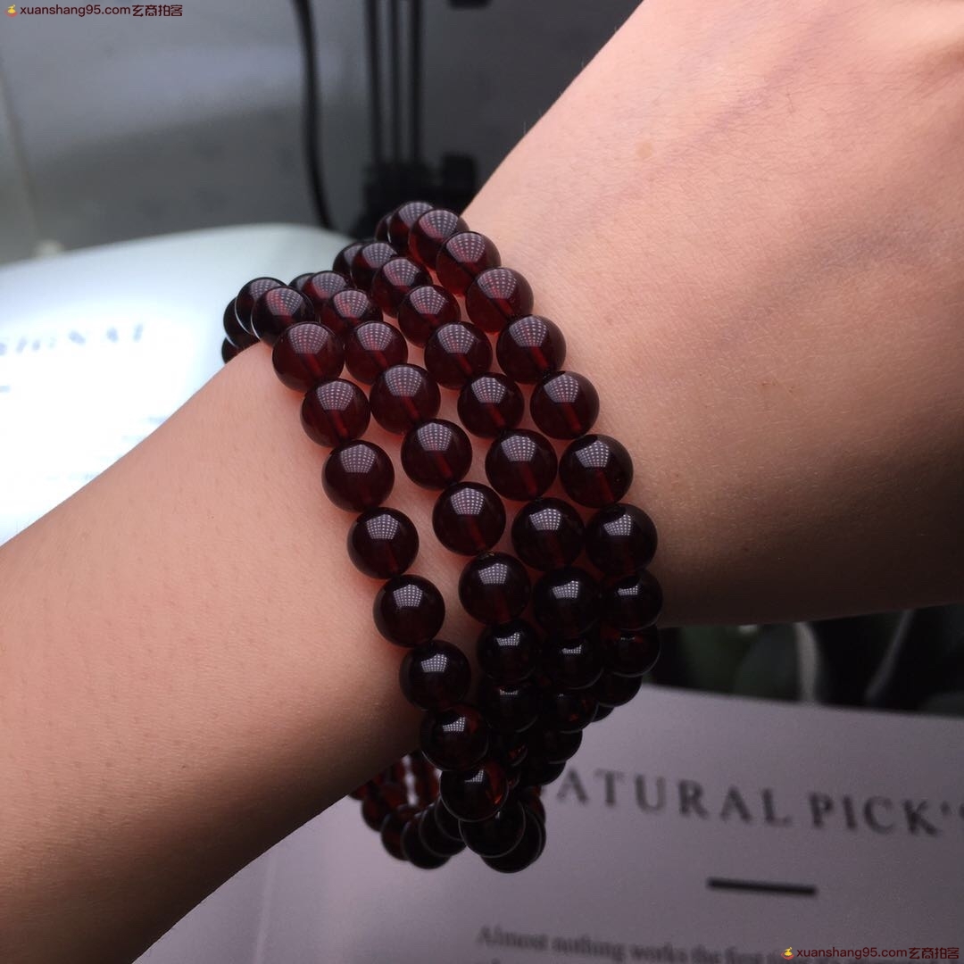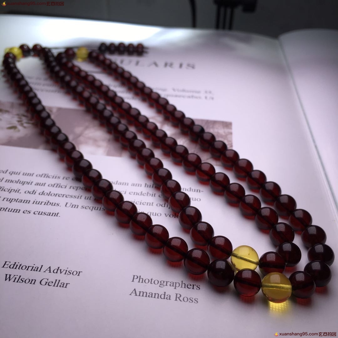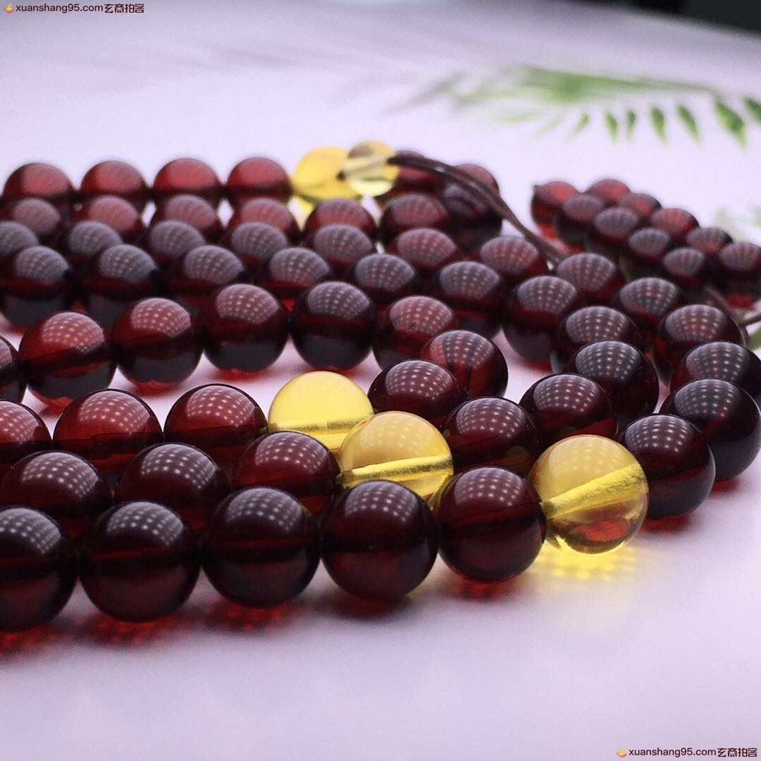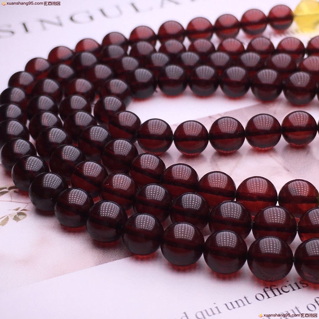 精选 净水血珀 108颗 挂链,纯天然原矿无优化,最美酒红色,7毫米 酒红色血珀,净水通透,静待有缘人,重量:24.6克