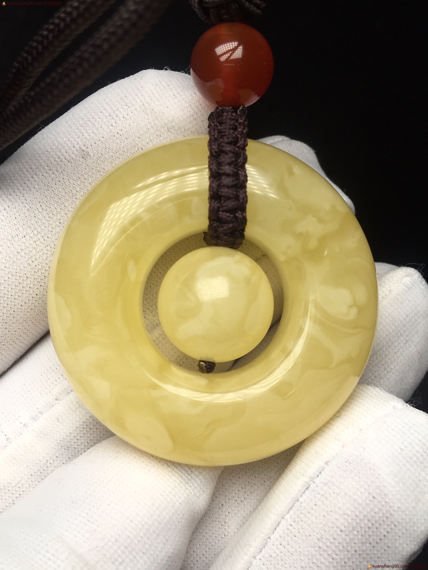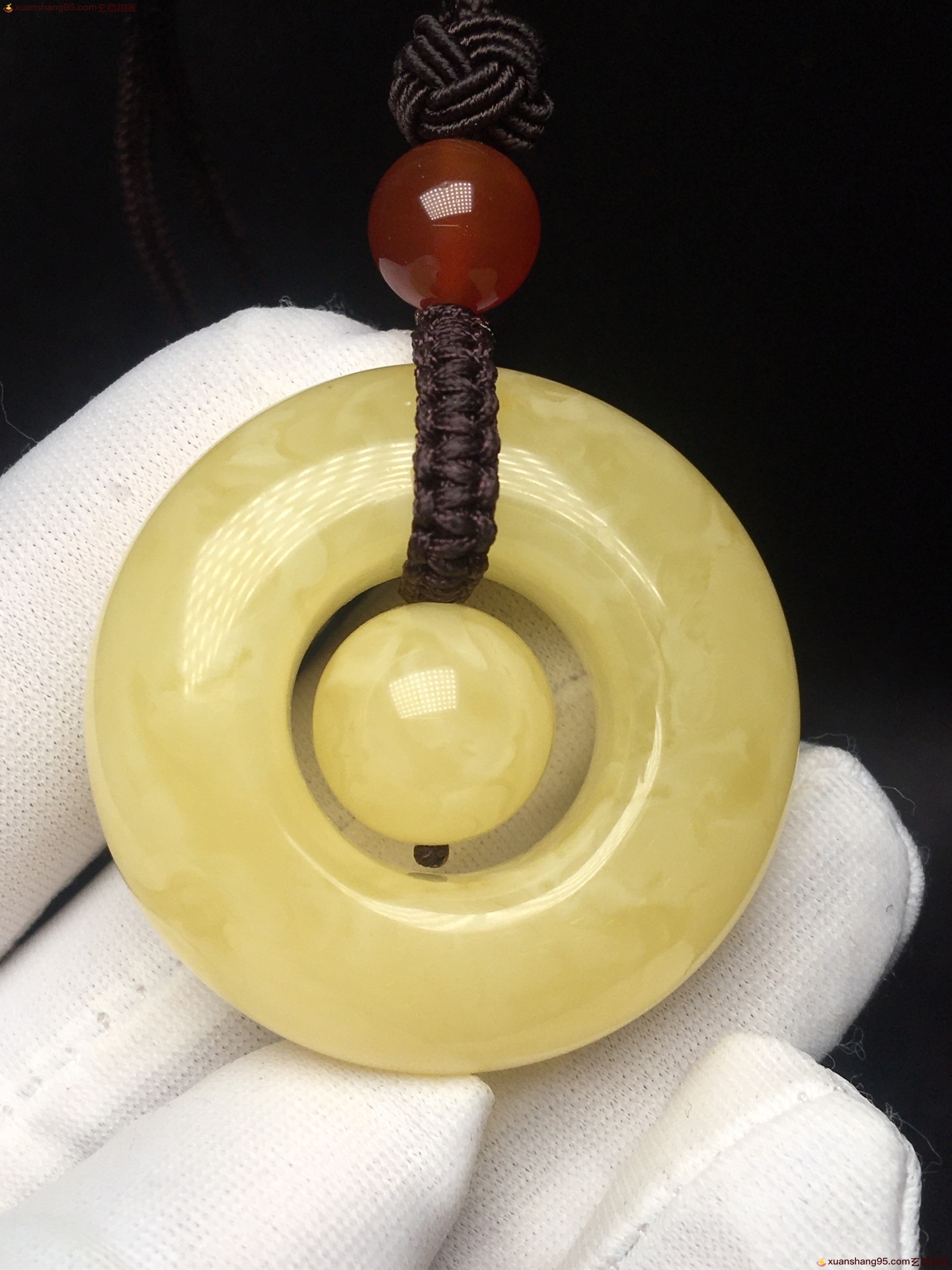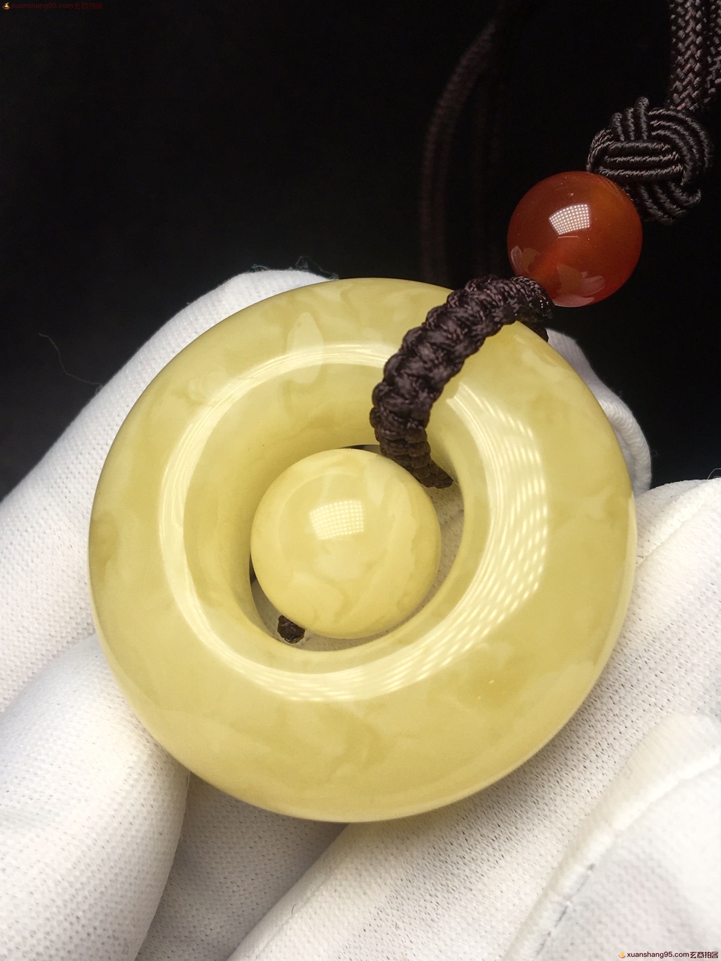*品 鸡油黄蜜蜡 同心扣,纯天然无优化无烤色,满蜜满蜡无杂裂,特别费工费料,自留送人佳品,规格:直径34.2毫米 重量:12克