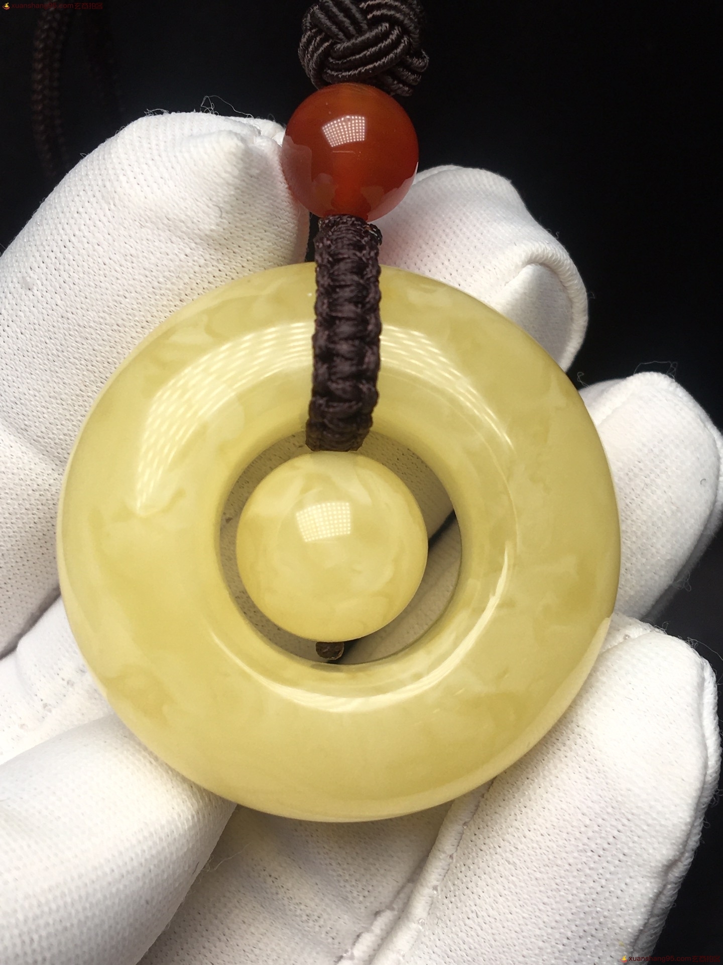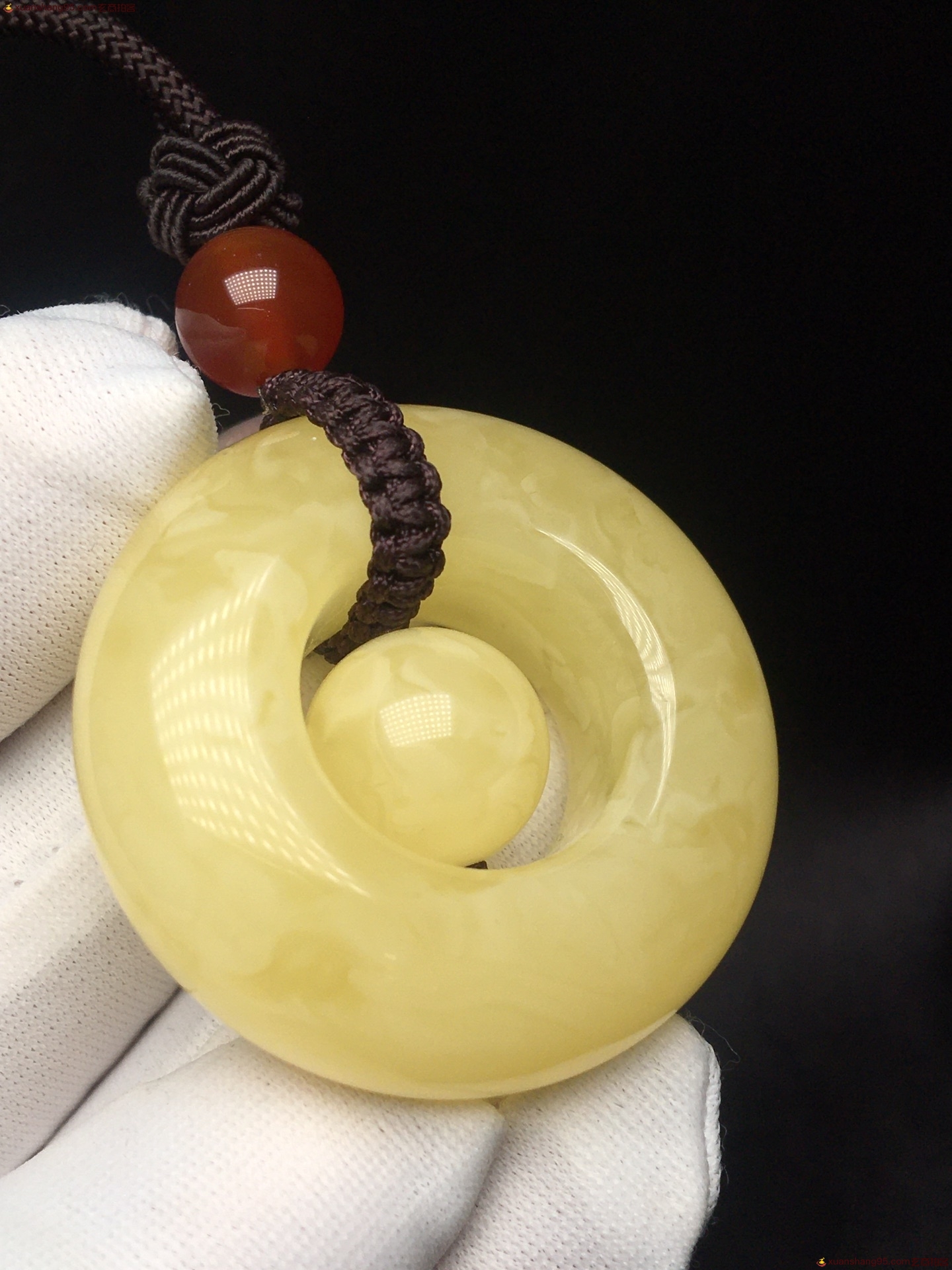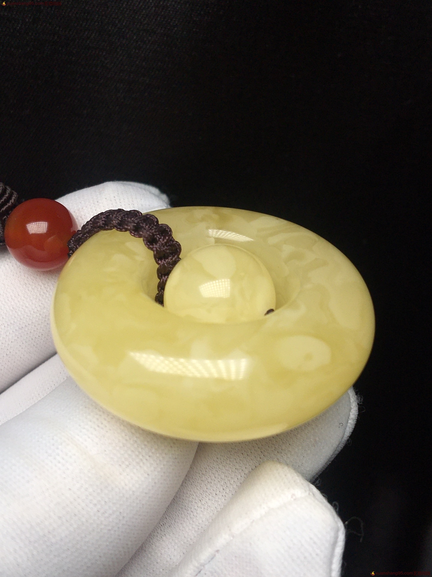 *品 鸡油黄蜜蜡 同心扣,纯天然无优化无烤色,满蜜满蜡无杂裂,特别费工费料,自留送人佳品,规格:直径34.2毫米 重量:12克