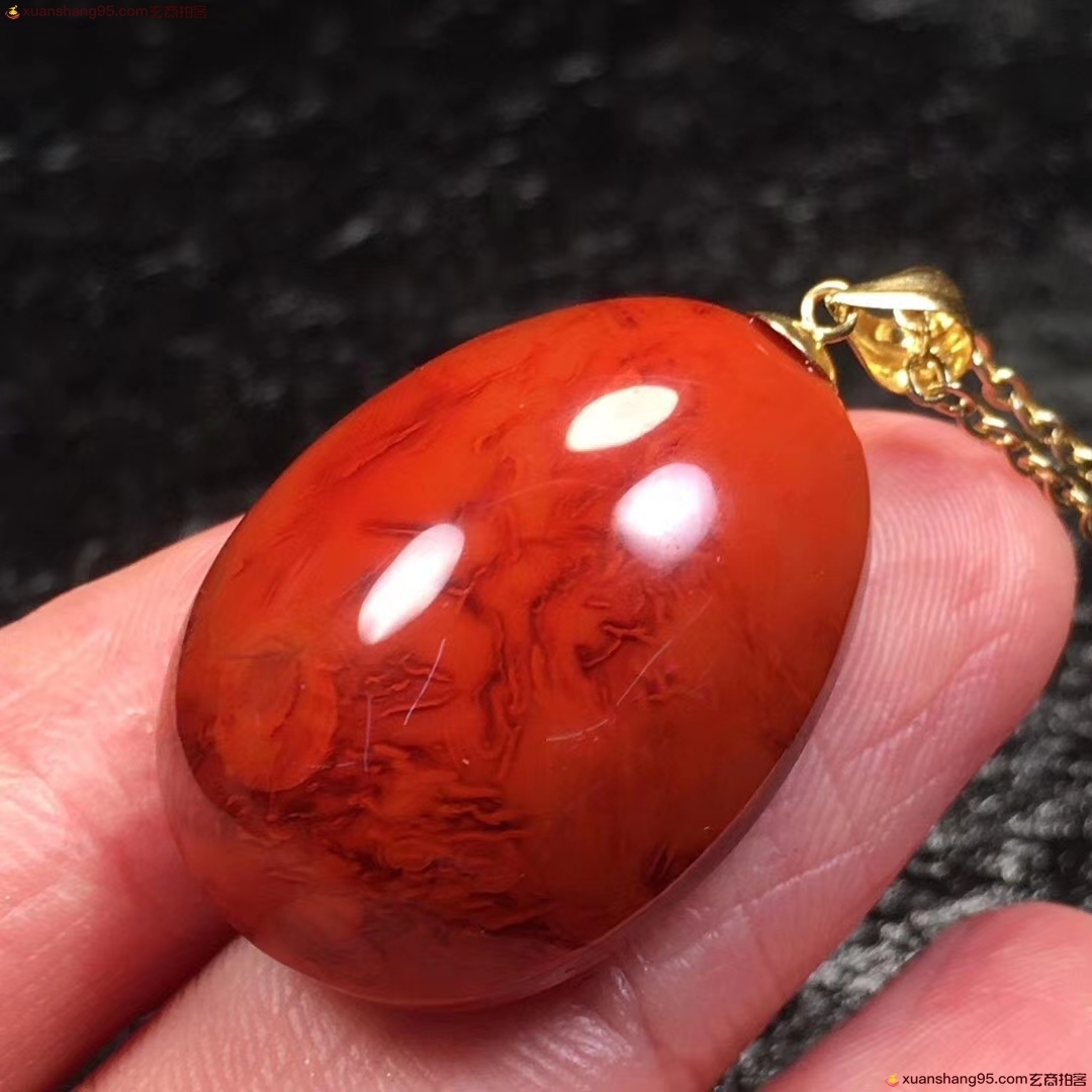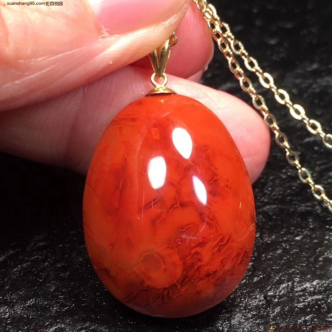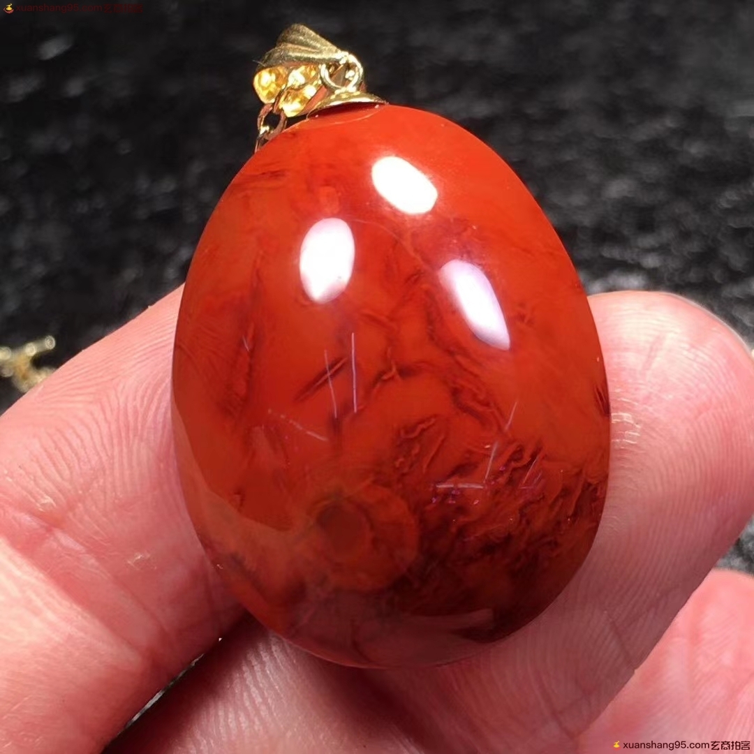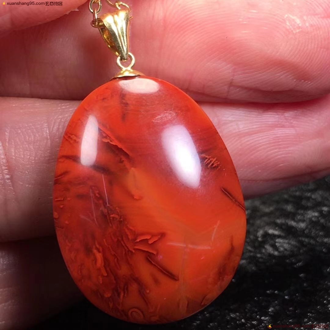 *品 瓦西料 火焰纹 吊坠,满色满肉,火焰妖娆全品无暇,18K金镶嵌,收藏级作品,支持复检,