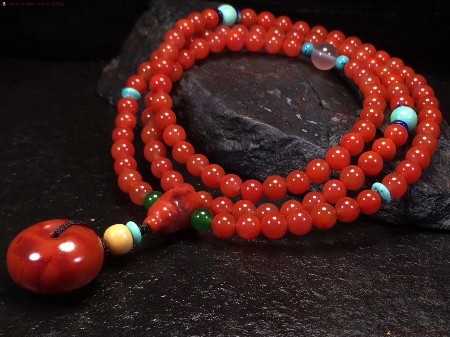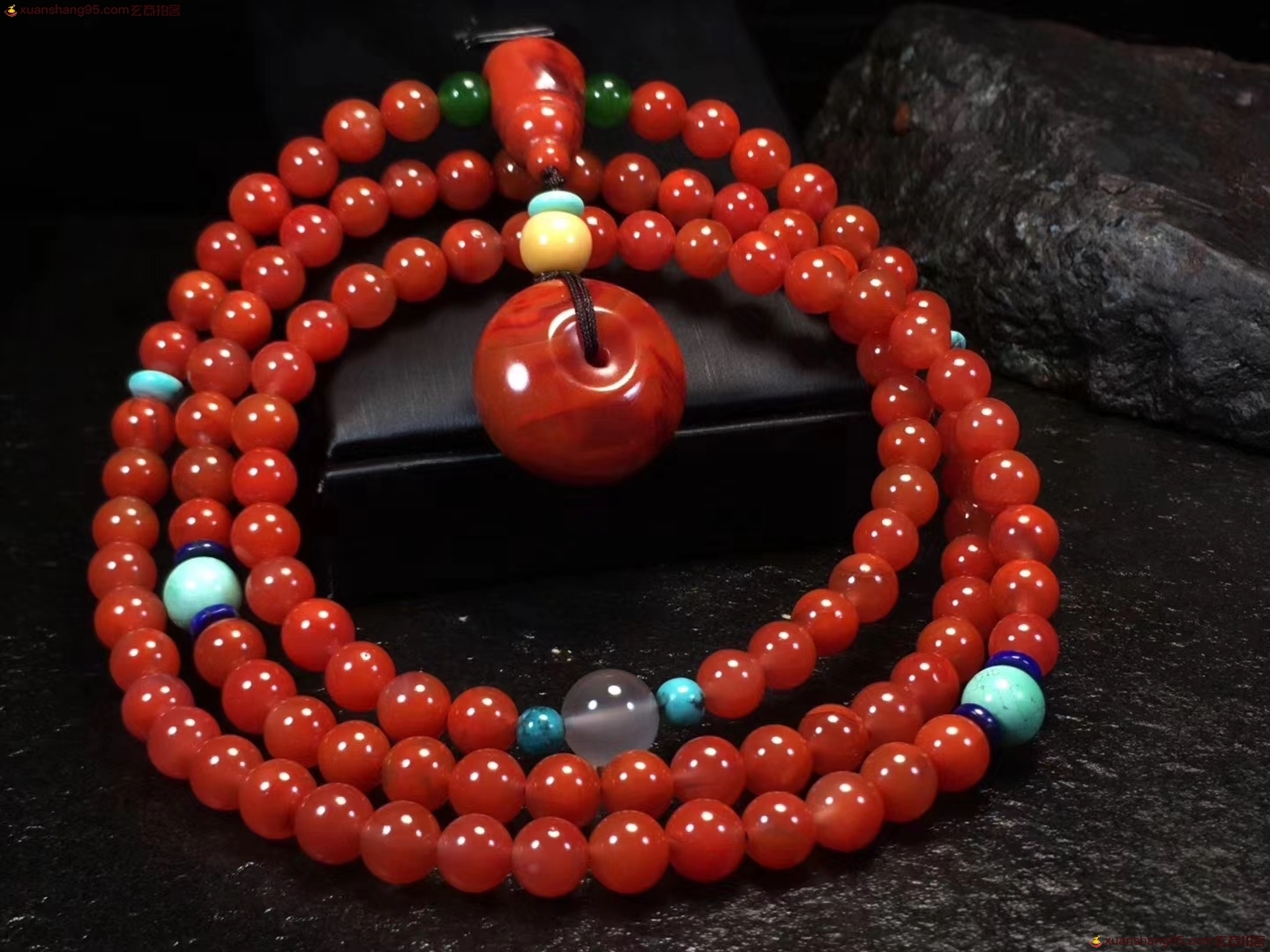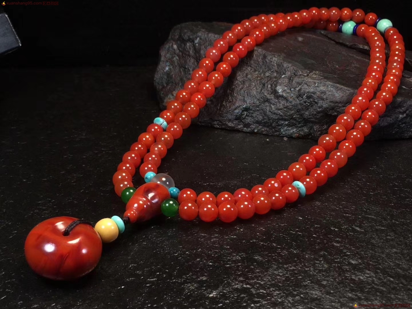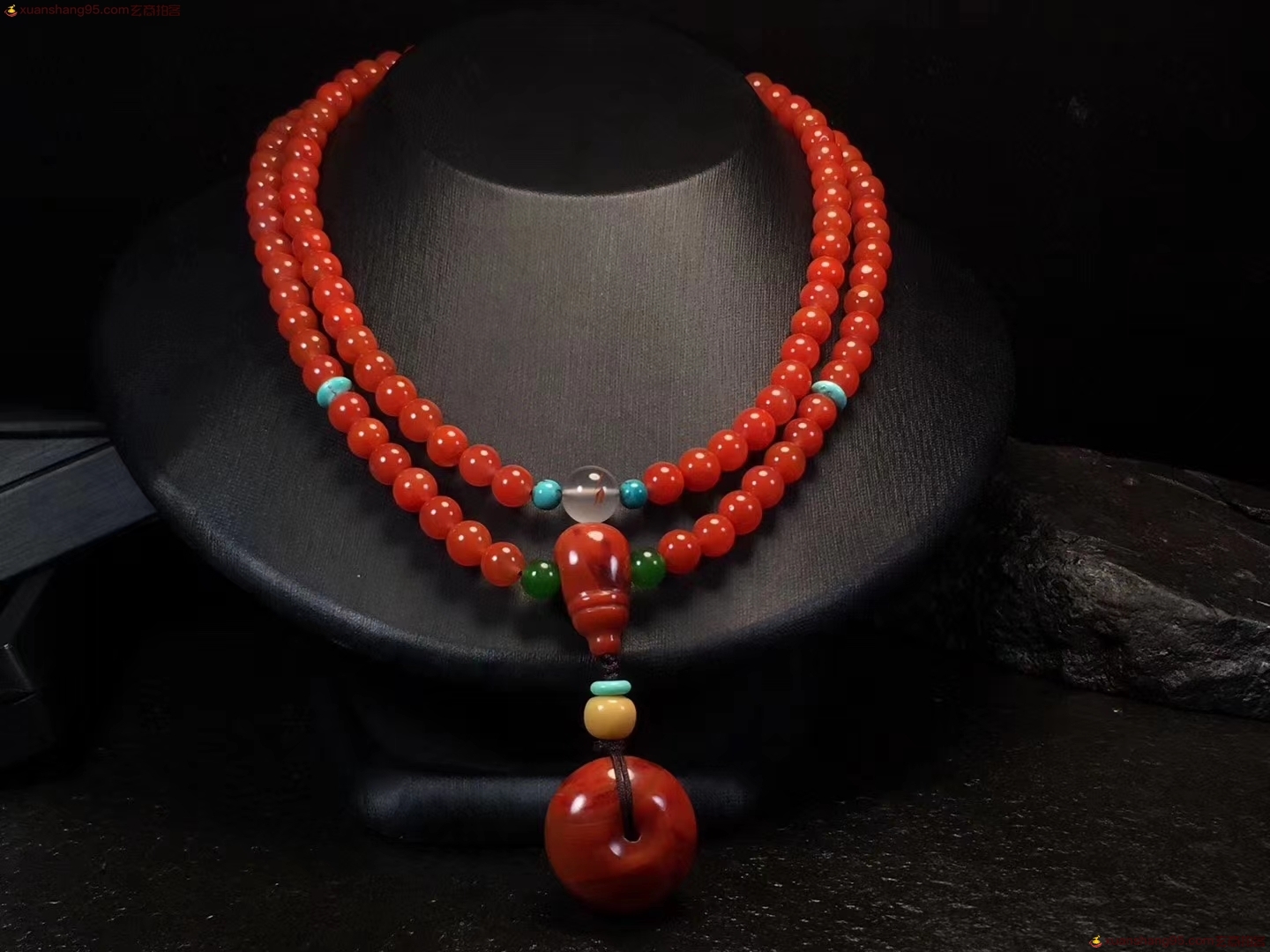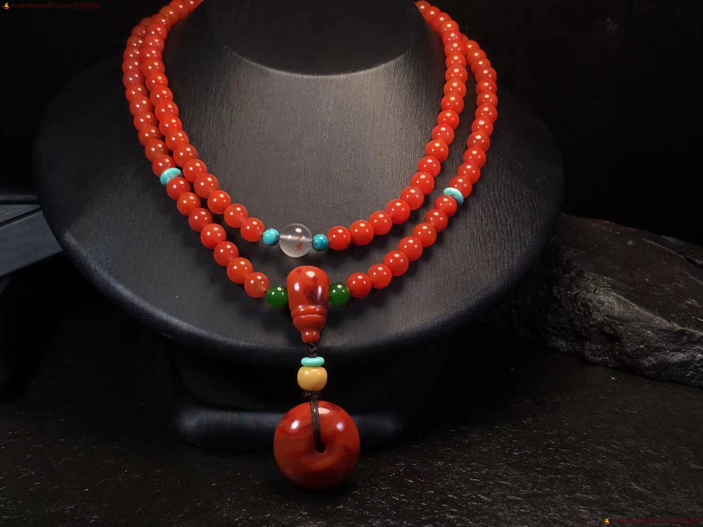 *品 九口 毛衣链,满色满肉,干净无杂裂,色红色艳,料子非常红润,搭配*美,平安扣,规格:直径7.2毫米 平安扣23.5-15毫米 重量;76克
