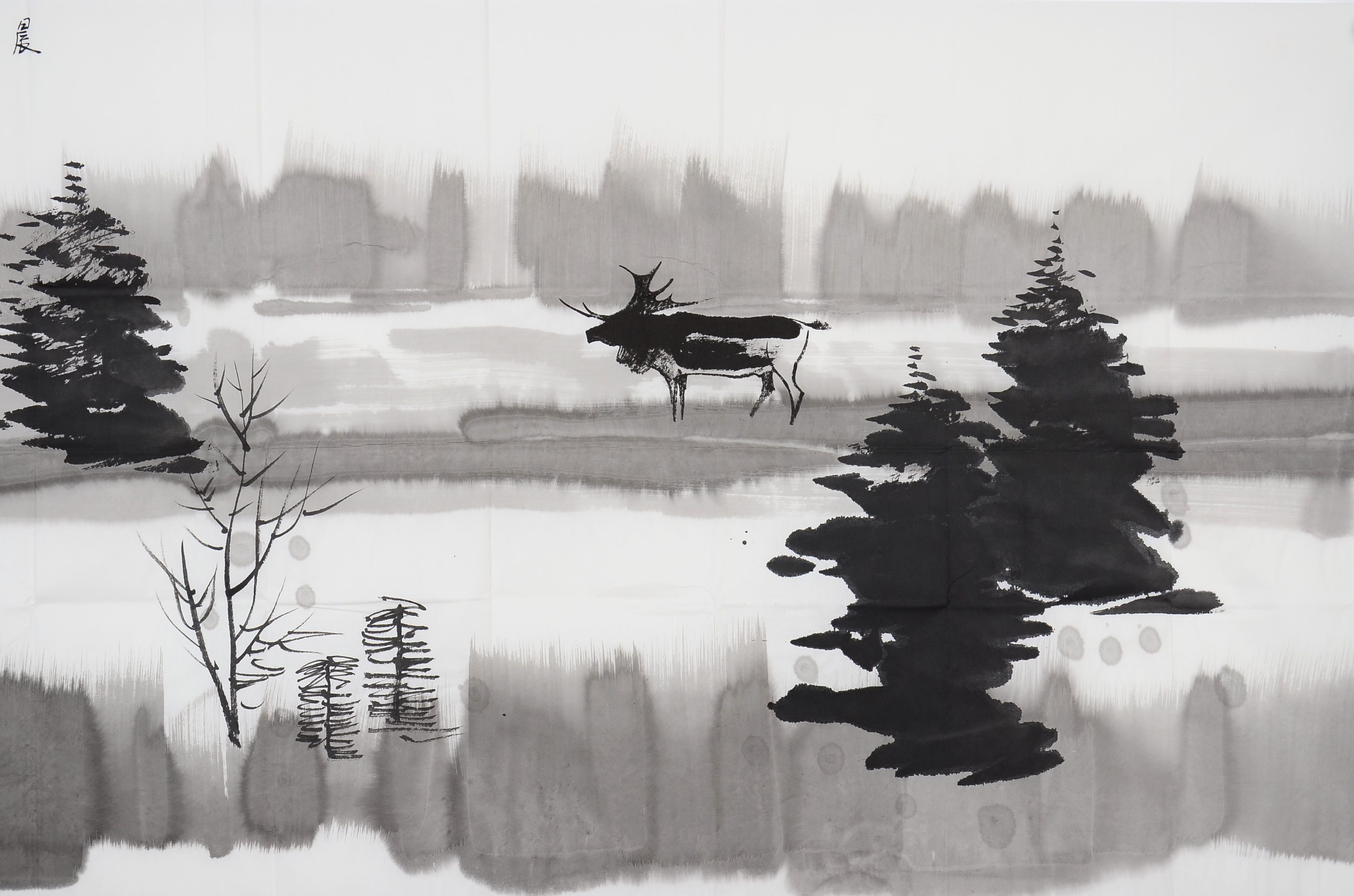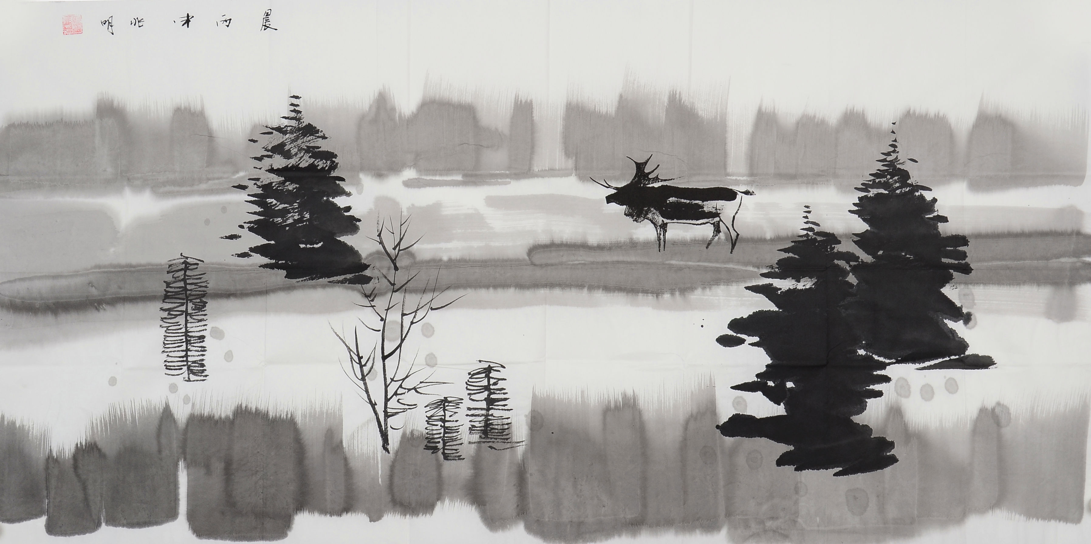 尺寸: 137×68cm 当代*水墨画家 *简意境水墨画