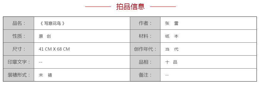 3. 竞拍详细 - 《张雷-写意花鸟》