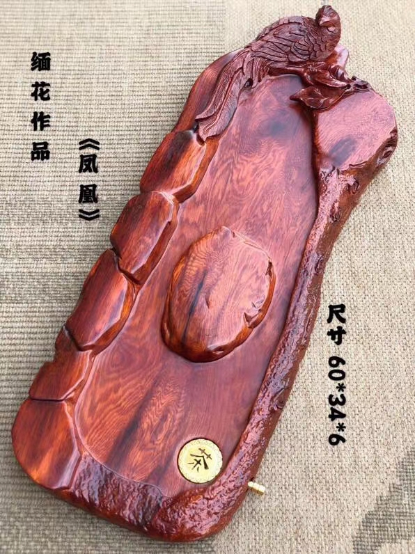 缅甸 花梨木 凤凰茶盘 料子上等,油性好,密度高,收藏使用佳品。尺寸60*34*6厘米。