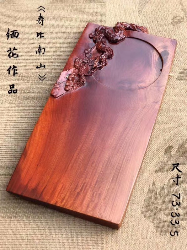 缅甸花梨木 寿比南山 料子上等,雕工一流,收藏使用佳品。尺寸73*33*5厘米。