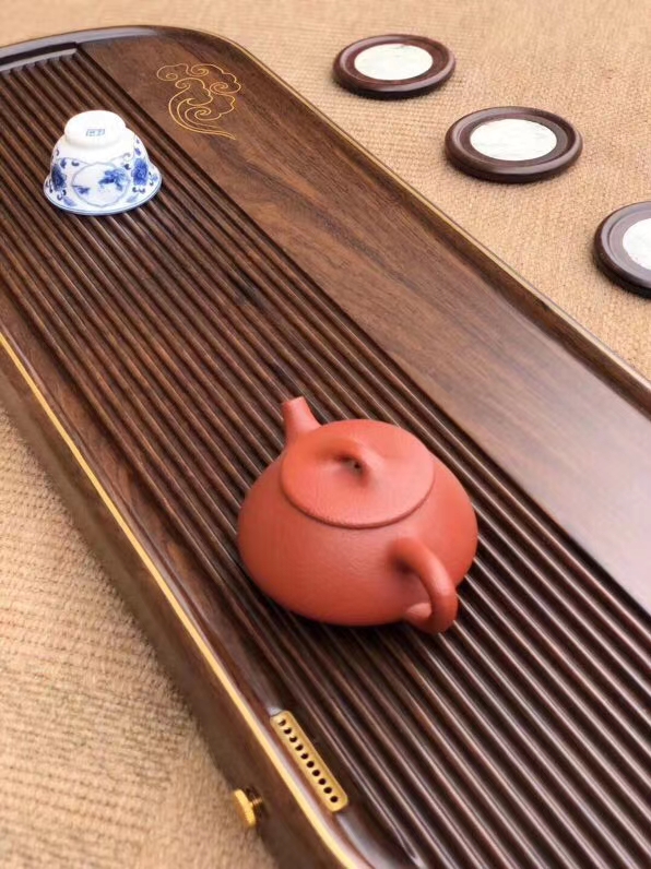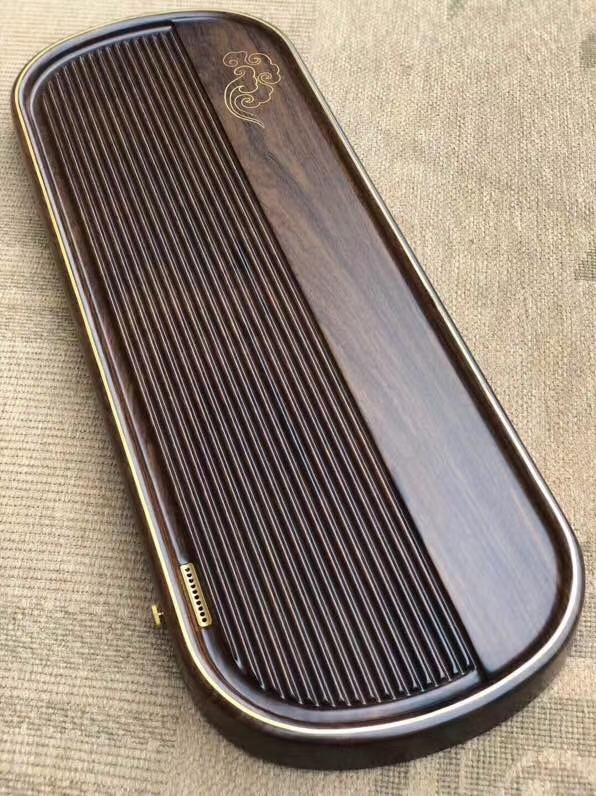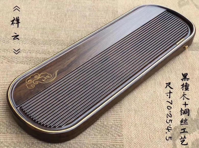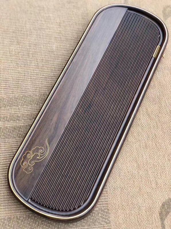 非洲 黑檀木 祥云茶盘 黑檀木 整板料,圆包圆工艺,线条与留白搭配,使用佳品。尺寸70*25*4.5厘米。