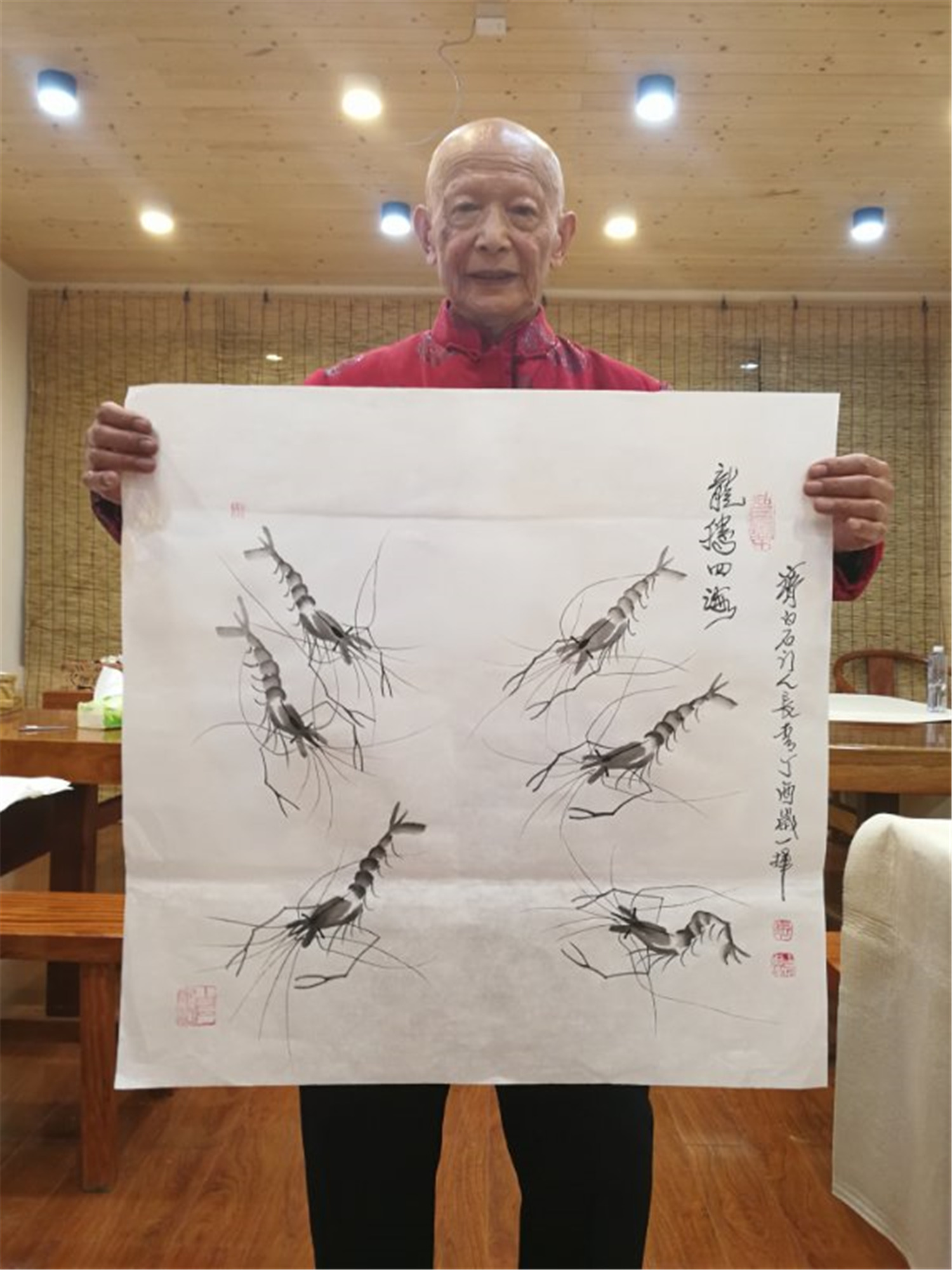 尺寸规格:68×68cm 齐白石门人 国画大师 带合影