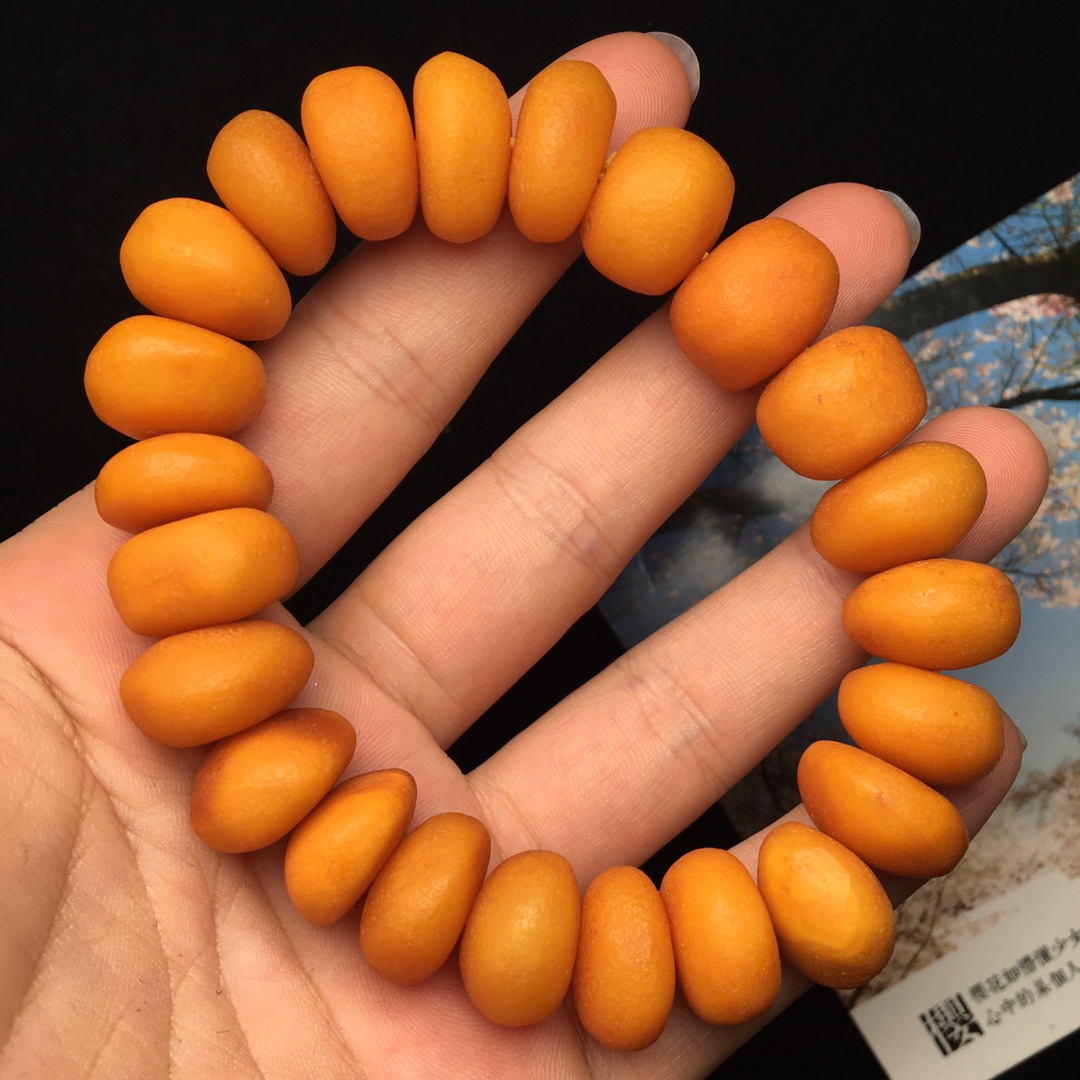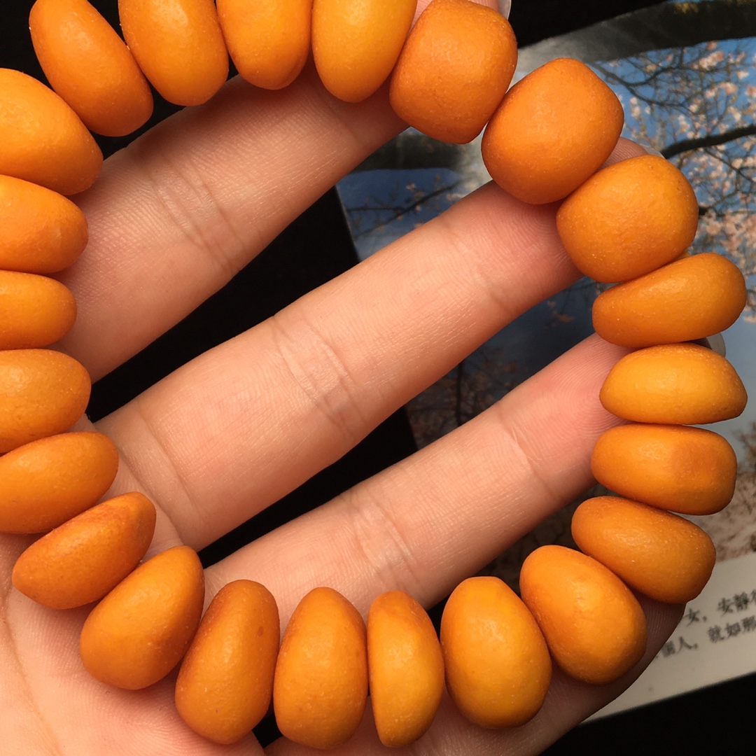 *品 枣红色老蜡饼子手串,颗颗饱满圆润,无杂裂!尺寸15毫米,重量32克。
