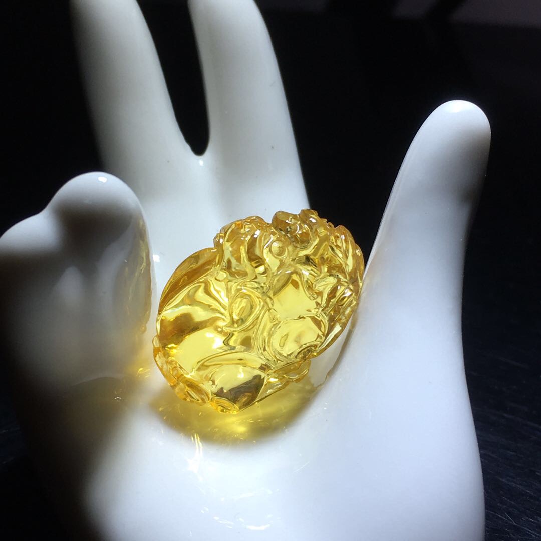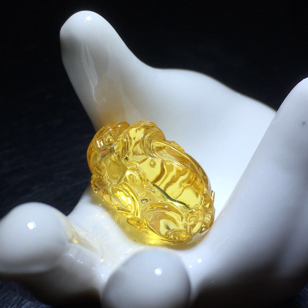 墨西哥 蓝珀 招财貔貅 精雕细琢!纯天然 无优化 无烤色 已打天地孔(对孔),尺寸如图所示,重量1.96克。附带鉴定证书和精美礼盒。