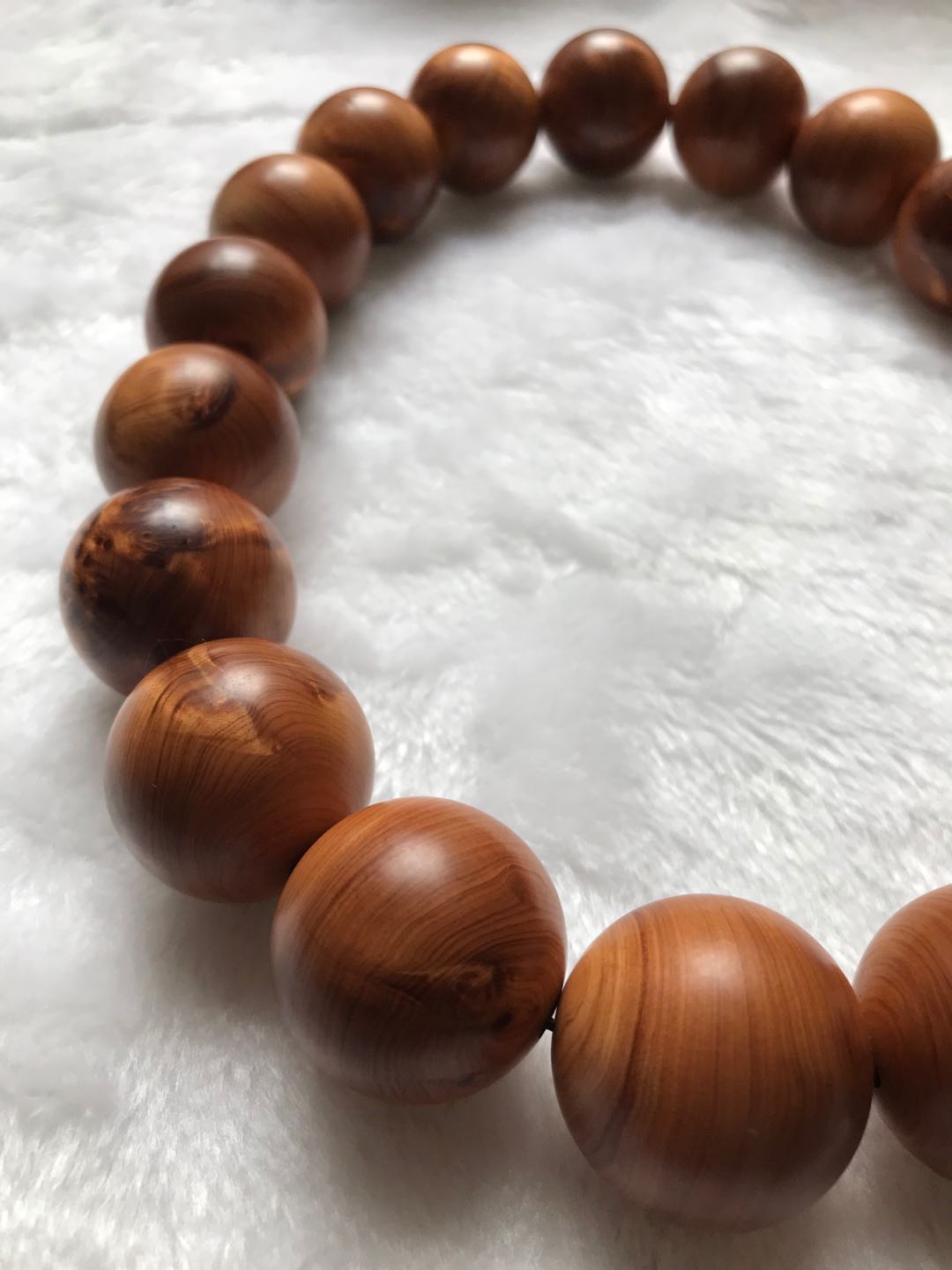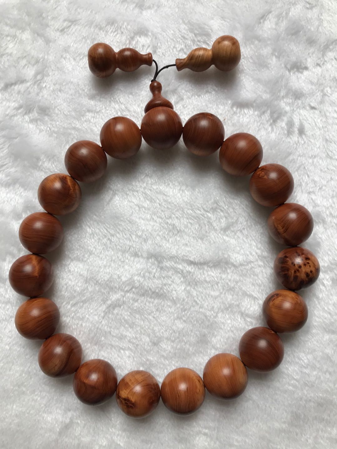 精品太行崖柏陈化老料19珠手持,好料好工!配葫芦(福禄双全),精美水波纹理,单珠直径约2.8CM,油性十足,柏香悠长有内涵,常年佩戴可安魂定神使人精神愉悦。