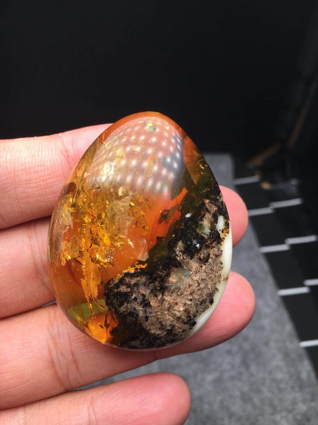 *品 爆花 药珀 天然爆花,瓷白药珀,纯天然无优化,造型端正,尺寸如图所示,重量16.6克,附带鉴定证书和精美礼盒。