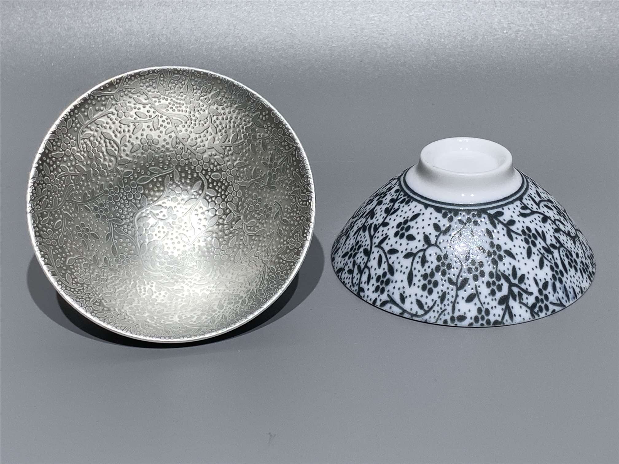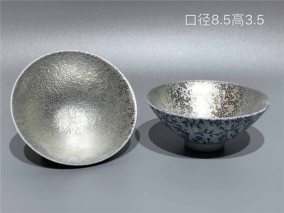 3. 竞拍详细 - 【当代手作】内鎏银外绘树叶纹杯一对