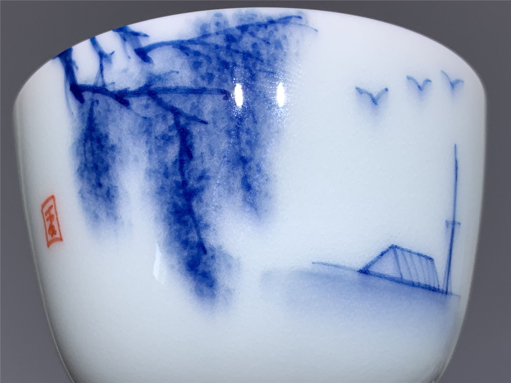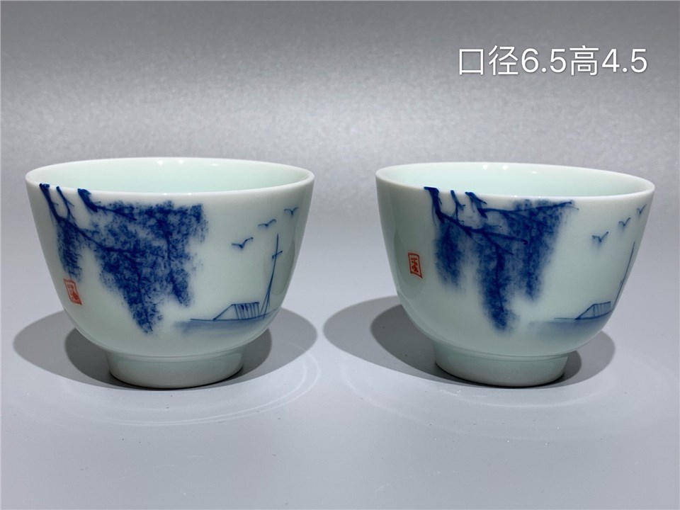 3. 竞拍详细 - 【当代手作】青花绘山水纹杯一对