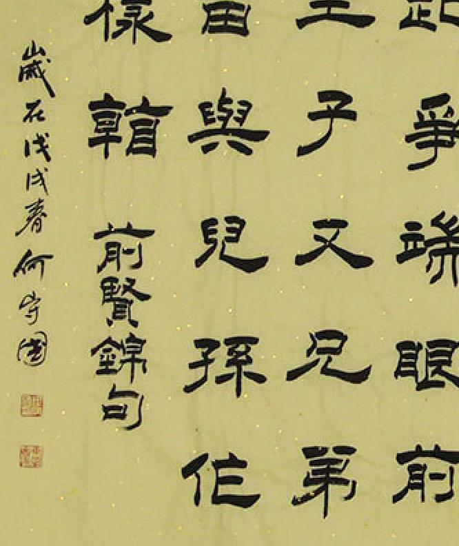 简历:何守国,1966年3月生于河北迁安,自幼楷书临习欧楷九成宫碑,化度寺,皇甫君和兰亭记等诸多欧体楷书碑帖,隶书以曹全碑,乙瑛碑张迁等碑,自幼酷爱书画艺术,师承河北书协会员李成永老师及西藏山水画派韩炳辉老师。