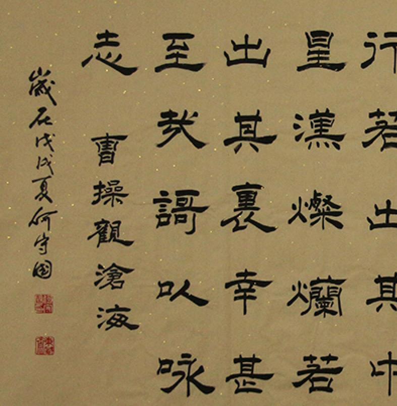 简历:何守国,1966年3月生于河北迁安,自幼楷书临习欧楷九成宫碑,化度寺,皇甫君和兰亭记等诸多欧体楷书碑帖,隶书以曹全碑,乙瑛碑张迁等碑,自幼酷爱书画艺术,师承河北书协会员李成永老师及西藏山水画派韩炳辉老师。