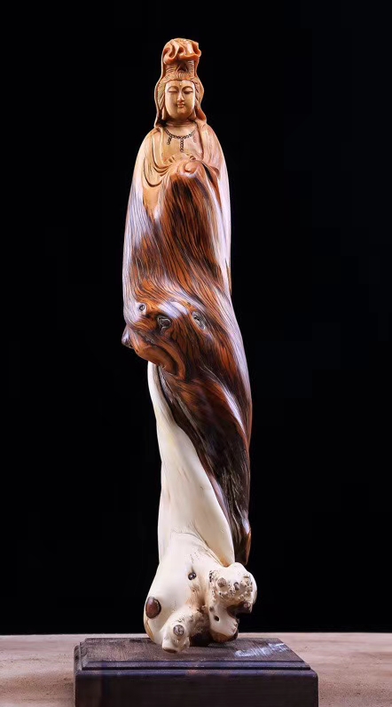 太行山崖柏 观音 端庄,工艺精致,太行扭曲坨料,纹理精美细腻,老师傅精心巧雕,油性爆棚,密度*高,材料干净,香味浓郁。长15宽13高46重5斤。