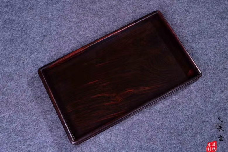 老挝大红酸枝 文承盘,全独板老黑料,老师傅纯手工榫卯制作而成,绚丽虎皮纹,非常难得,长39cm,宽23cm,高3.8cm,重2.48斤,收藏使用佳品。