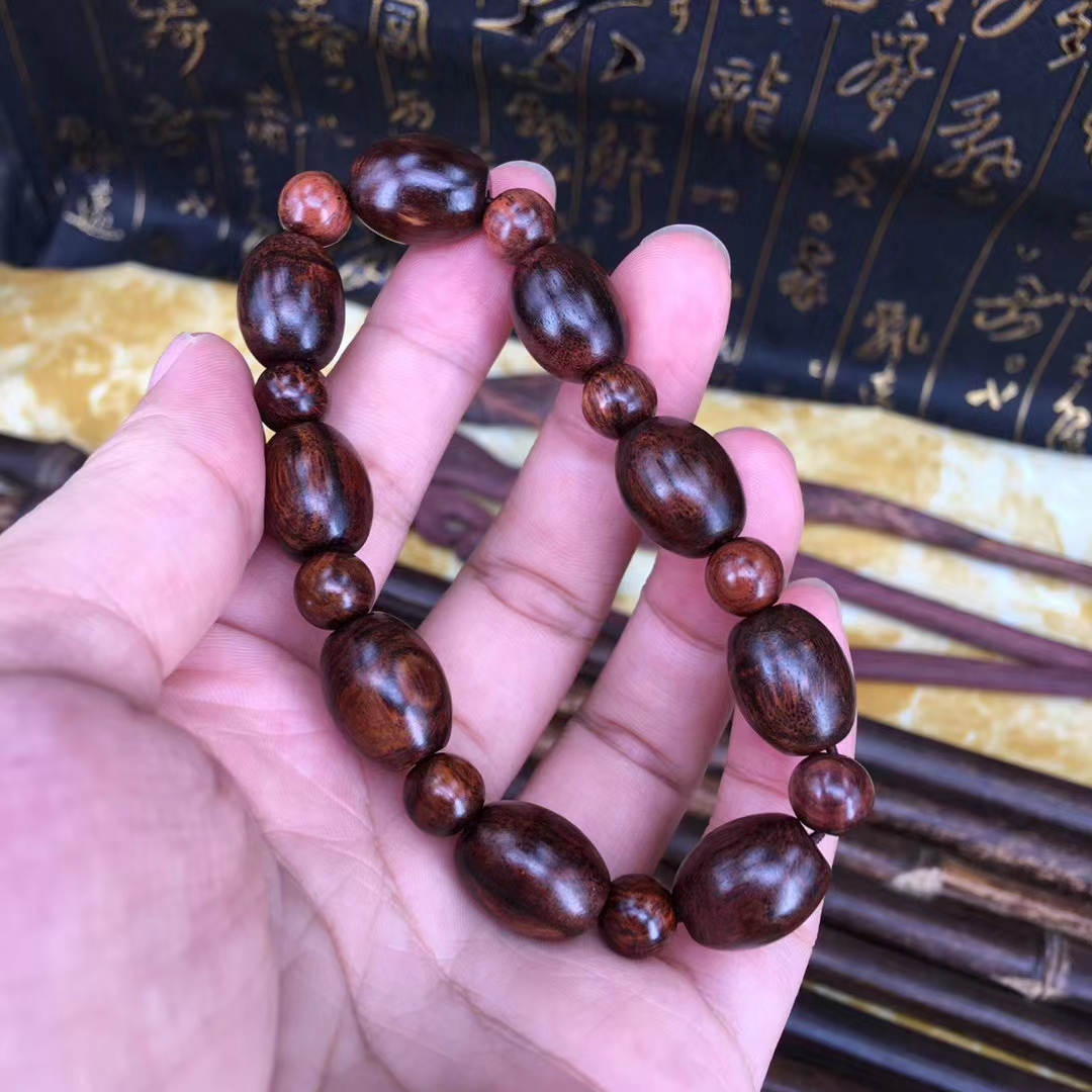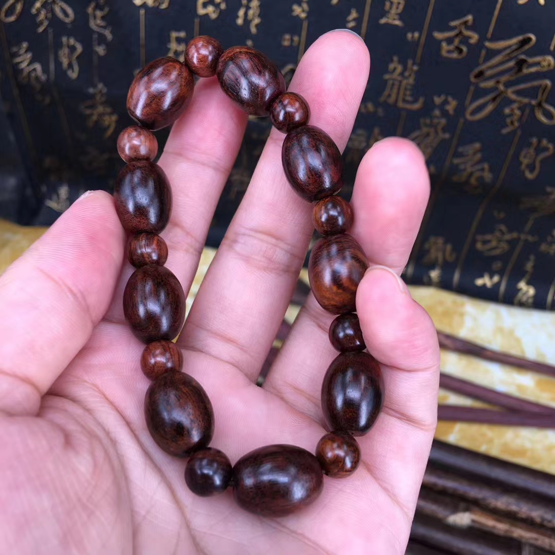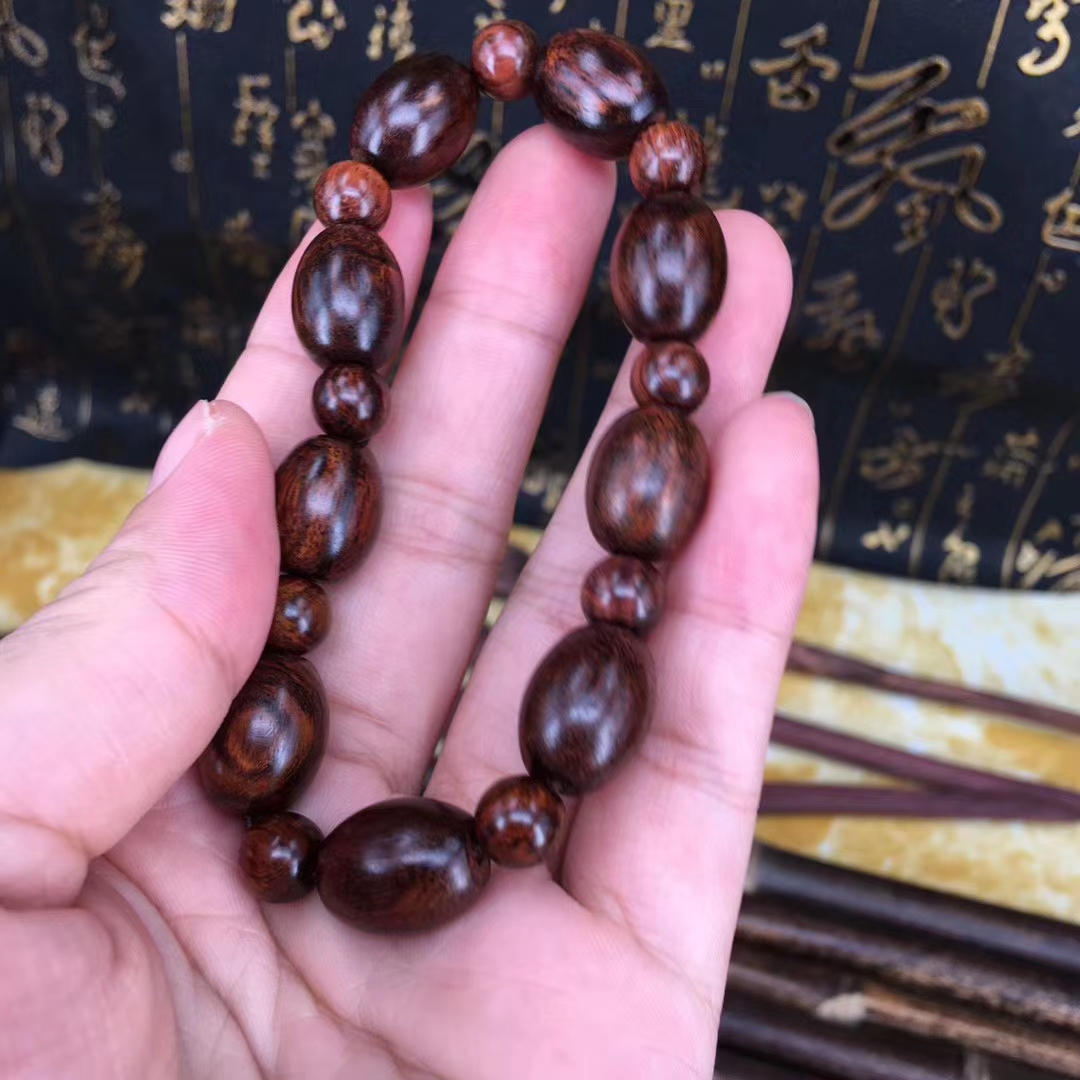 海南黄花梨 橄榄珠 手串,老料 油梨,款式简约大方,佩佳品。尺寸1.1*1.45厘米。