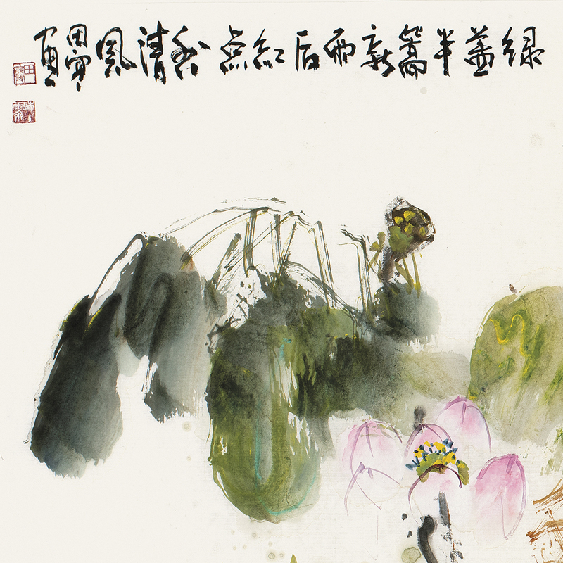 3. 竞拍详细 - 《田寒- 荷塘新雨后》