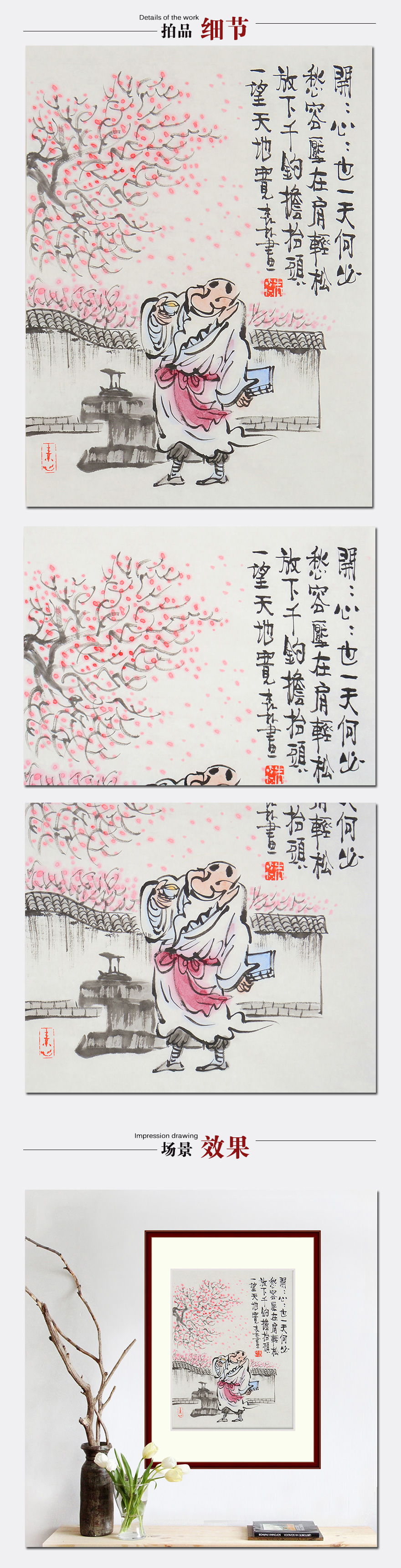 释 文:开开心心也一天 何必愁容压在肩 轻松放下千钧担 抬头一望天地宽 朱森林 中美协会员 天津美协理事 *漫画家 朱老师的画配上绝妙的诗文恰到好处,趣味无穷 值得细细品味。