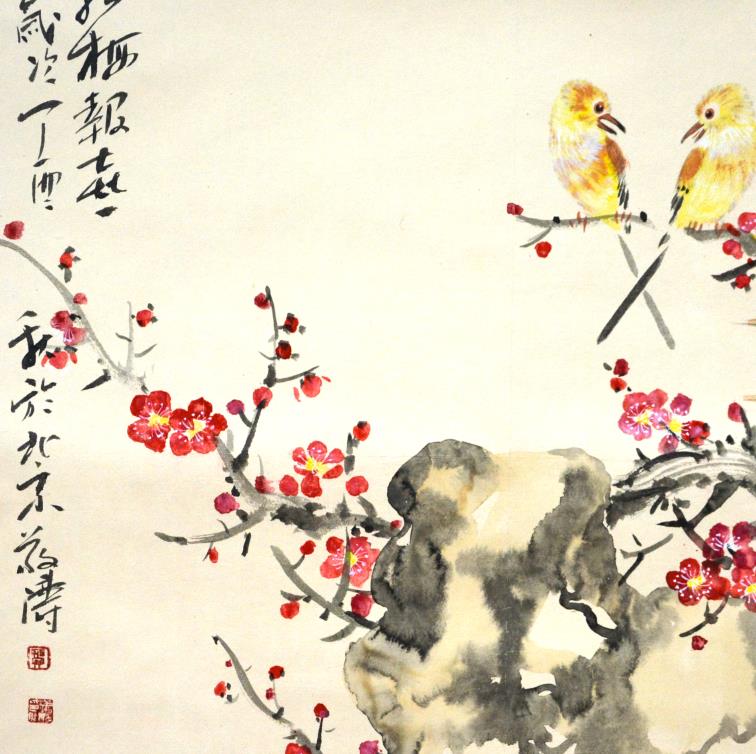 贺敬涛,当代花鸟画家,诗歌和散文作家。1960年出生于山东临沂,就读于清华大学美术学院。中国国画家协会理事,清华大学霍春阳工作室画家,中国绘画艺术研究院艺委会委员,中国文联五老画院院士,山东省青年作家协会会员。现定居于北京。 贺敬涛先生作品继承宋元绘画传统,富有浓郁的文人画格调。在材质的运用上,渗入时间因素,在灰黄的色调上轻点疏淡的白粉,犹如秋天的一页小诗,一种典雅而幽淡的情致,一种时光穿越的回味。更善用金色,略施水墨,呈现高贵而淡然的格调,体现对时代精神的呼唤。 其作品独特的创作技法和温润雅丽的视觉呈现,营造出浓郁的诗情画意,给人耳目一新之感,受到学术界和市场的热烈追捧,多次在全国书画大赛中获奖,并在拍卖市场屡创新高;入编《中国书画名家精品集》《中韩书画名家典藏》《中日水墨大展作品集》《2013全国中国画名家邀请展作品集》《齐鲁视角》等数十部书画典籍与专业书刊,多幅作品被美国、韩国、香港等国家艺术馆院收藏。其作品犹如绩优潜力股,建议喜爱的藏家逢低纳入。《致故乡书》——而青藤缠绕的檐下 /你在一个春天走失 /在一个梦里走失/有谁开启南窗的木条 /石榴树下 /摆放久违的花盆 /阳光哗哗翻开发黄的诗集/八月 不再荒芜-----。《三月随想》------而我以梦为墨/ 以笔为马/个个花开淡墨痕 /罗浮山下的茅蘆里 /忘却冬天的冷意/一只梅/温暖化开冰雪/一碗酒/ 醉了故园的腊月/醒来/ 已是漫天遍野的明丽----《月光》——尘世的月光/三个季节的水/花园里沉静的少女/要出远门
