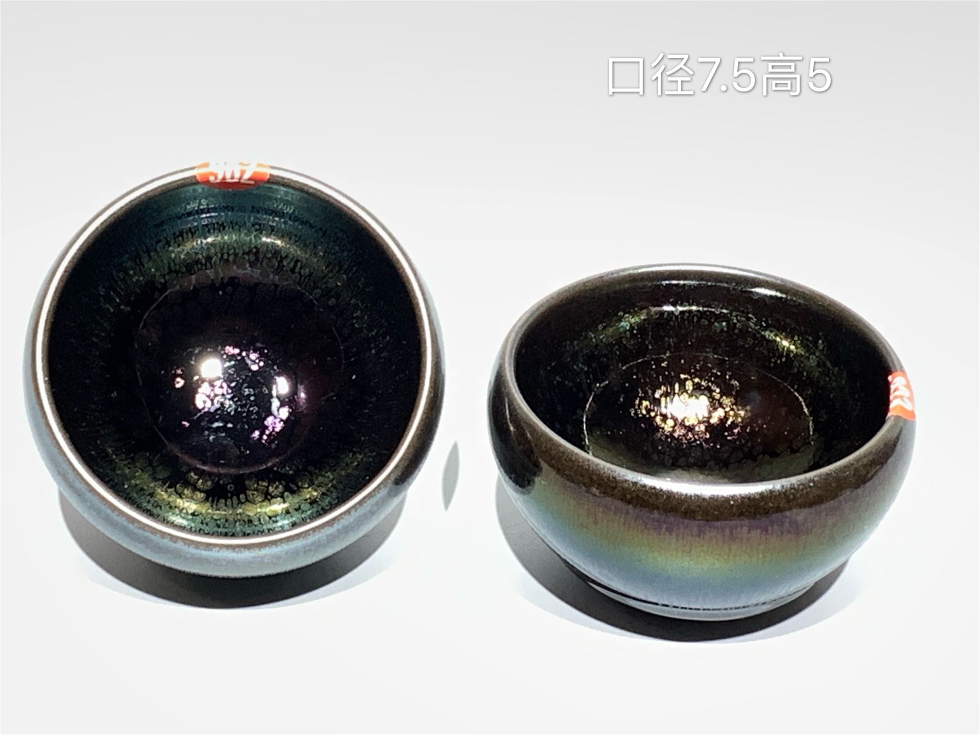 【品茶利器】当代手作-建窑耀变敛口盏一对