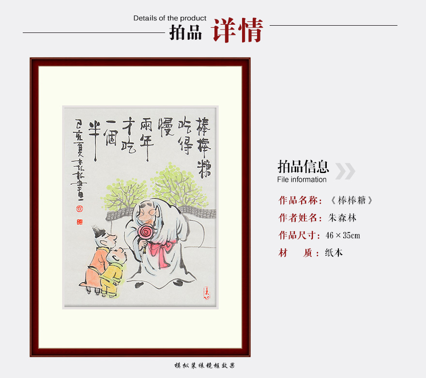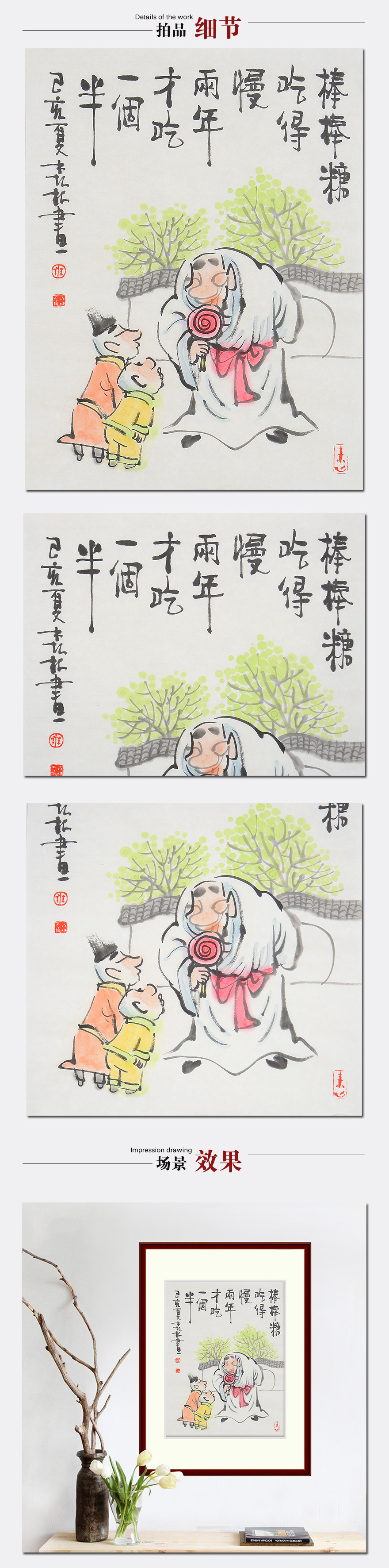 释 文: 棒棒糖吃得慢 两年才吃一个半 朱森林 中美协会员 天津美协理事 *漫画家 朱老师的画配上绝妙的诗文恰到好处,趣味无穷 值得细细品味。