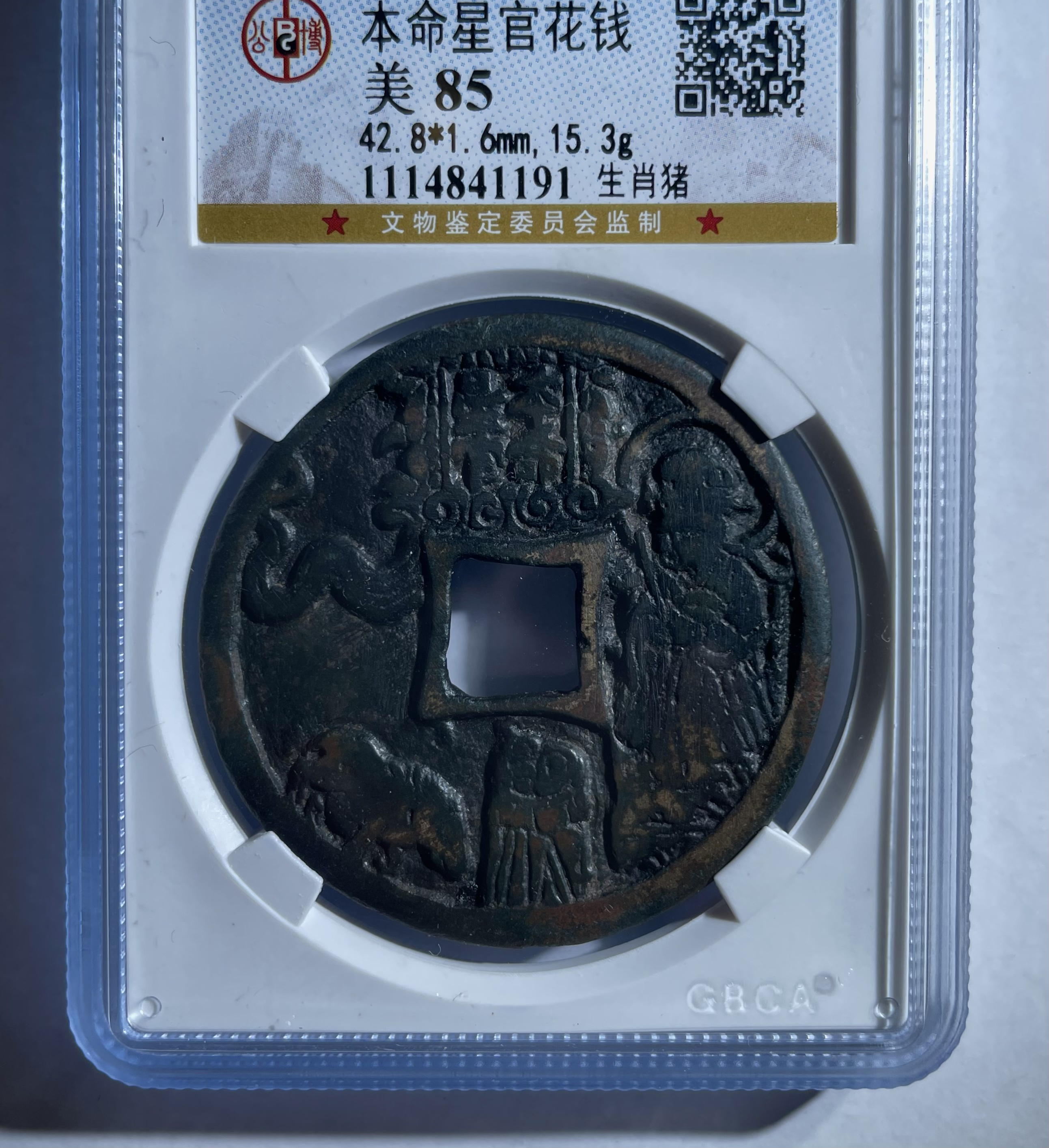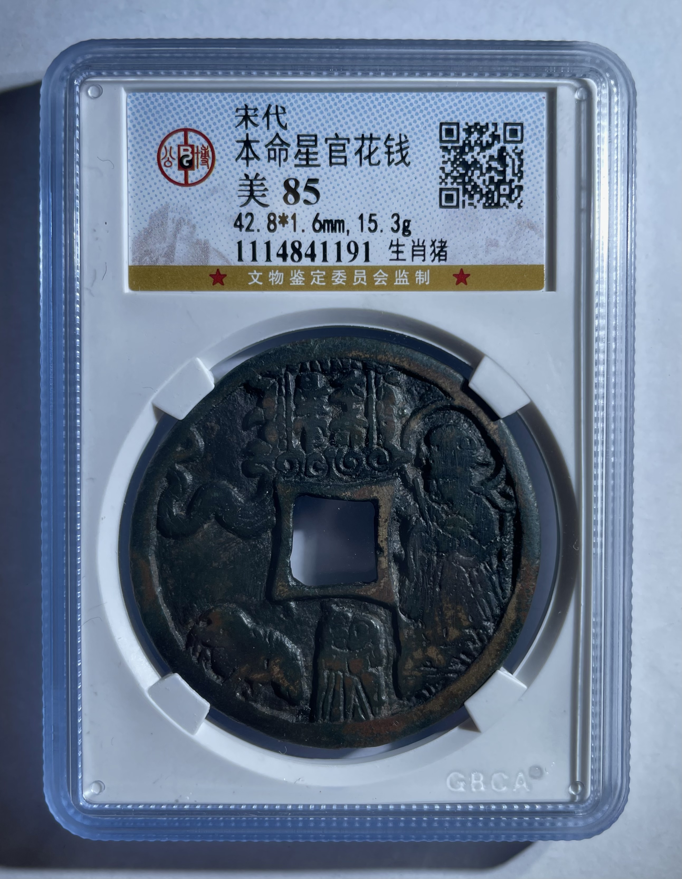 备注:此枚花钱已评级入盒,包浆温润,磨损自然,详细品相、评分、内容介绍如图所示,承宋之气,值得收藏;